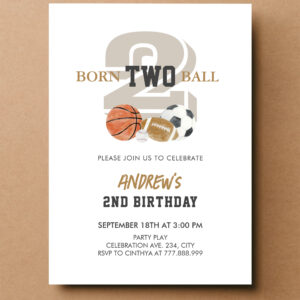Born Two Ball Birthday Boy 2nd Birthday Invitation