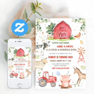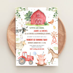 Boy Farm Animals Boy Barnyard Birthday Party Invitation - Related products