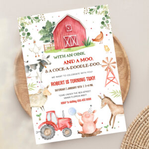 Boy Farm Animals Boy Barnyard Birthday Party Invitation