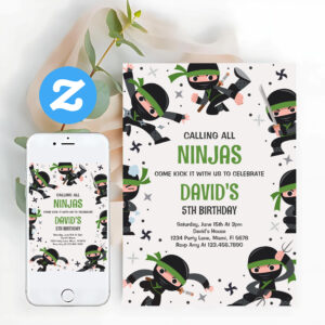 Boy Ninja Warrior Green Martial Art Birthday Party Invitation - Related products