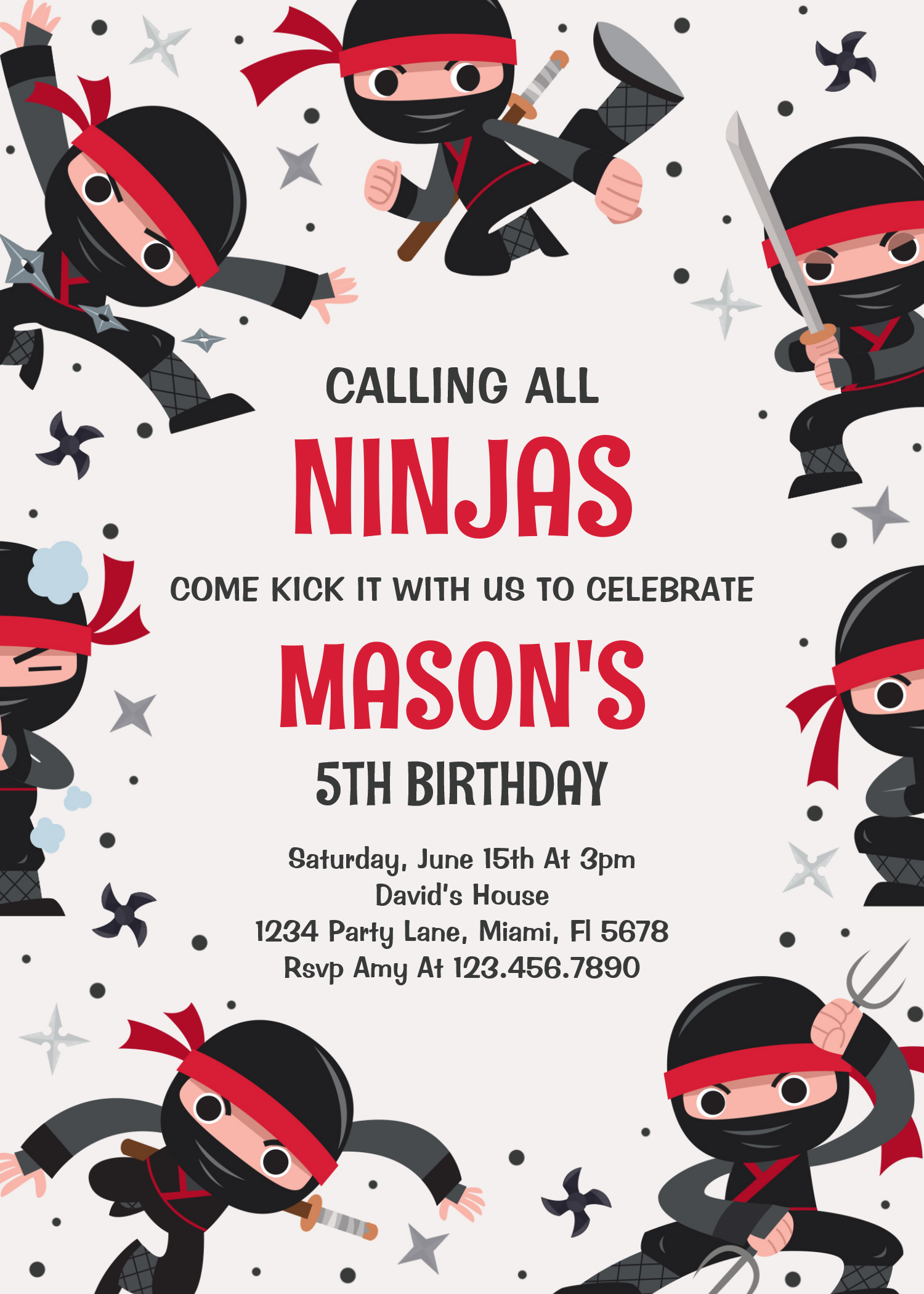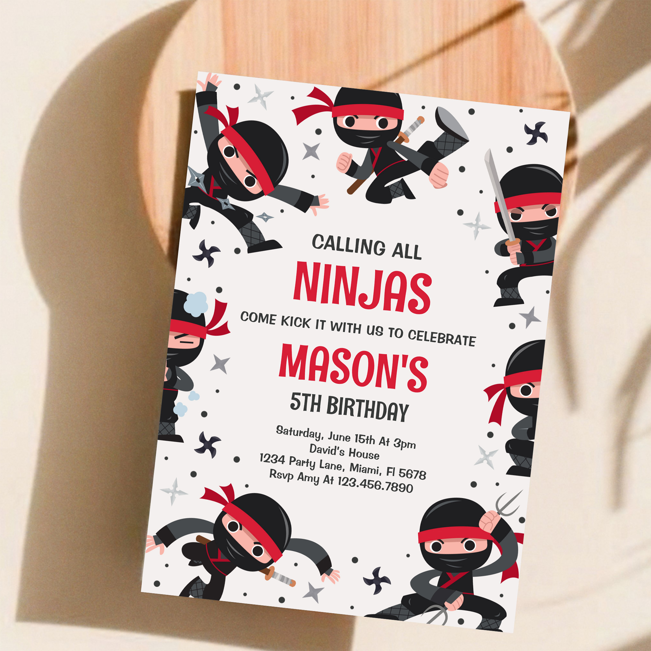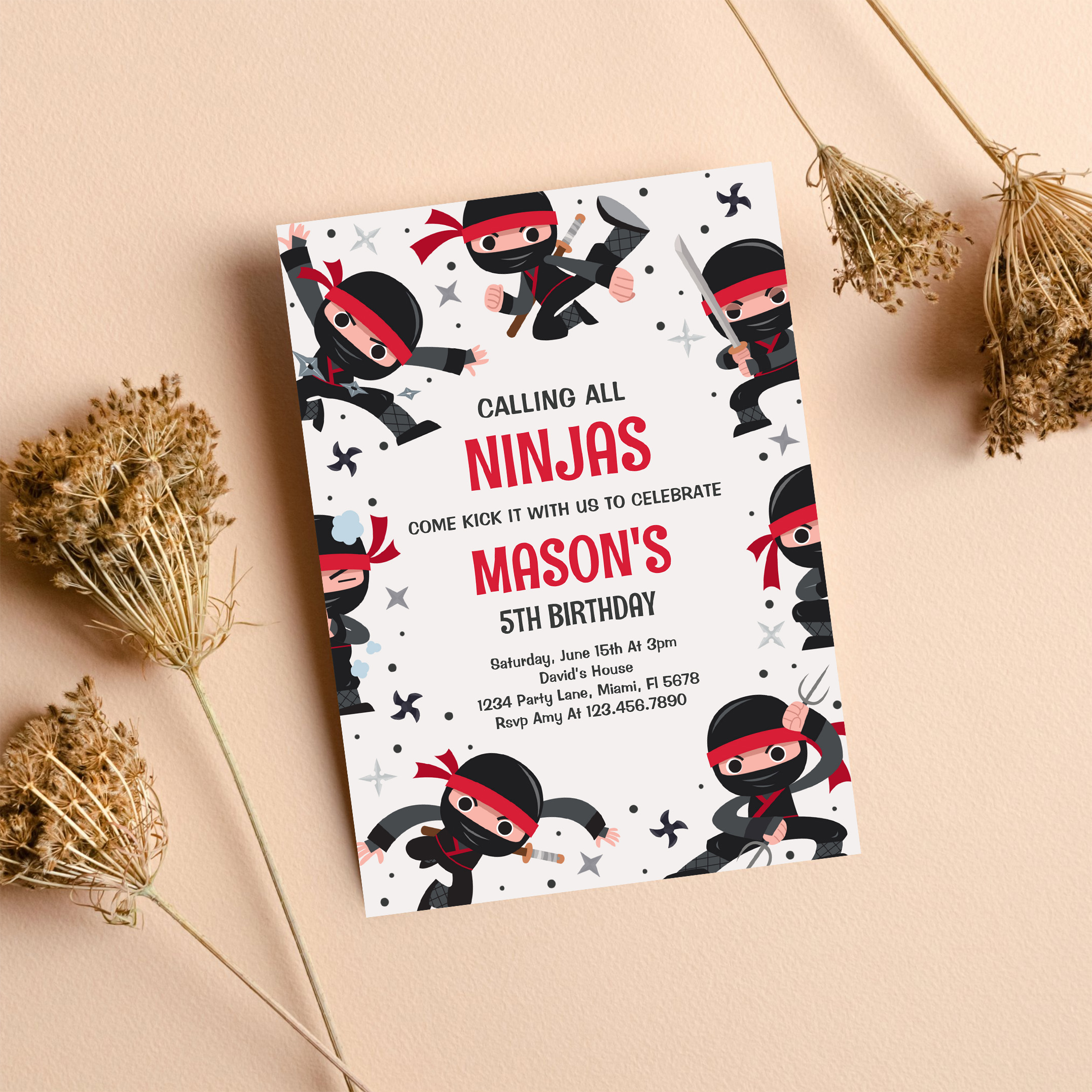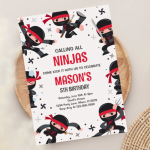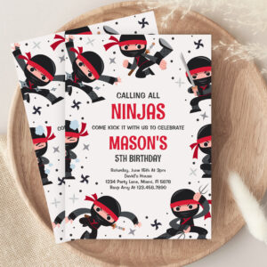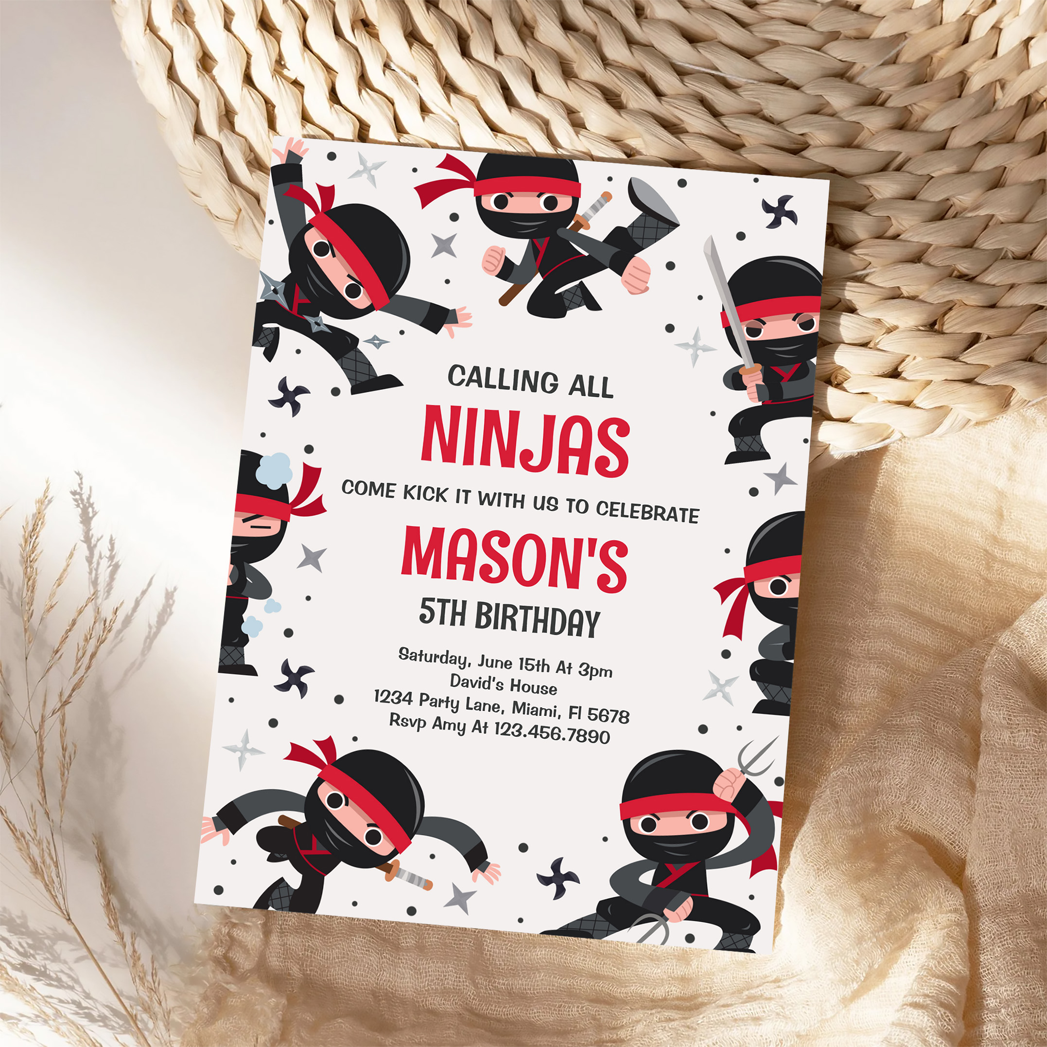Boy Ninja Warrior Red Martial Art Birthday Party Invitation