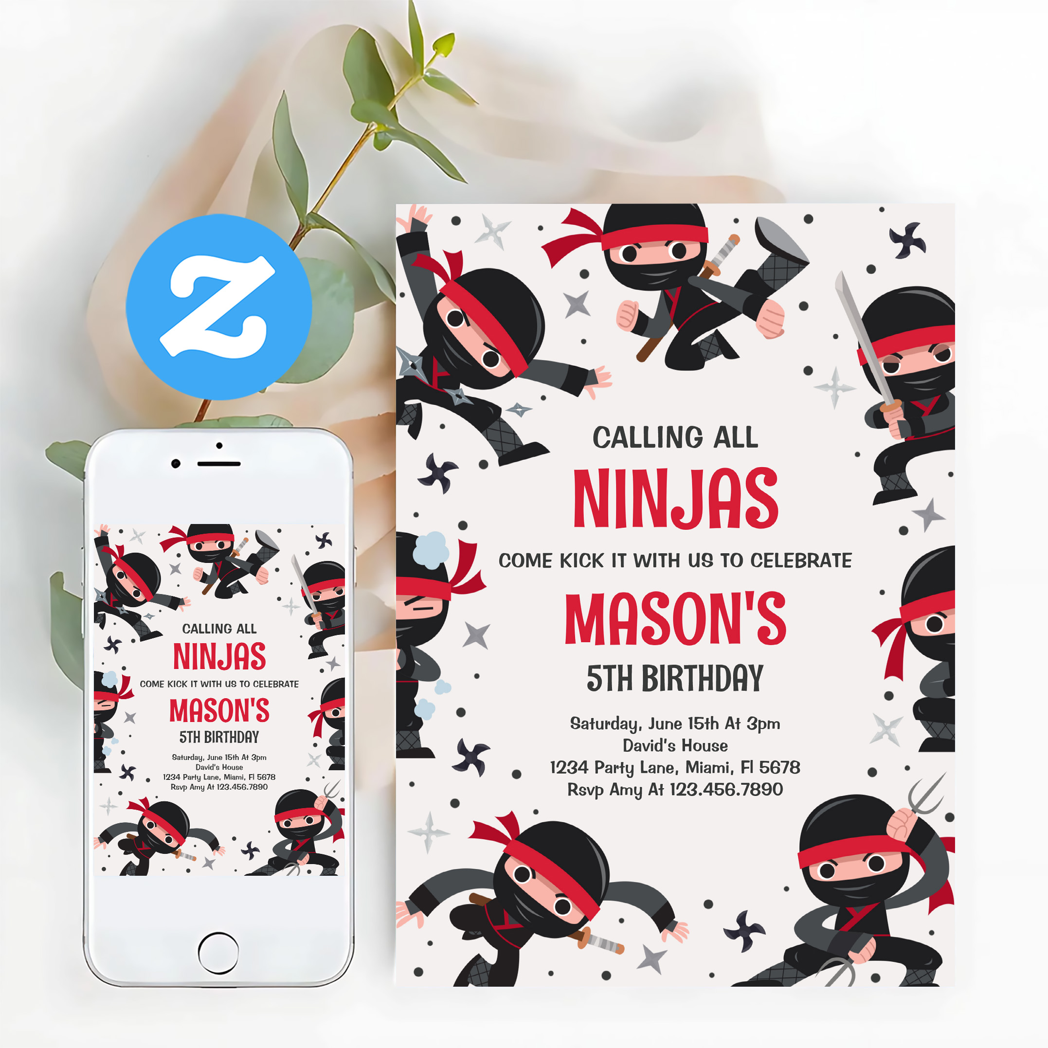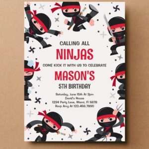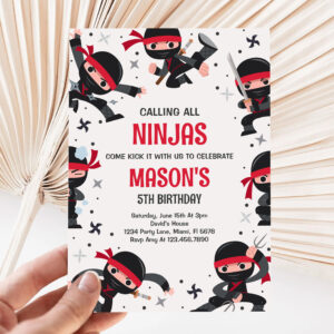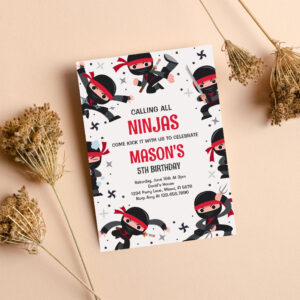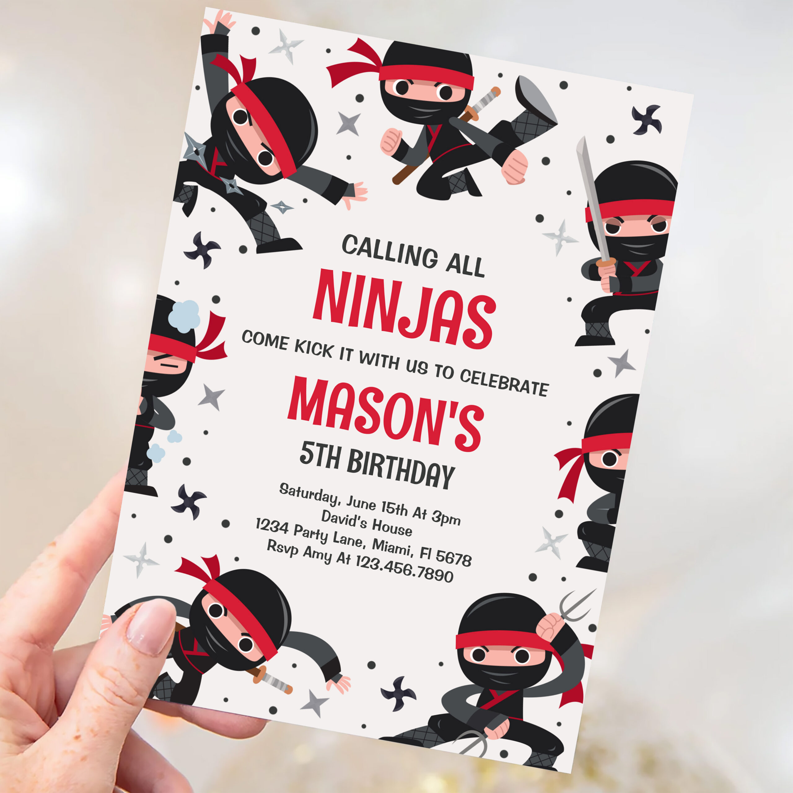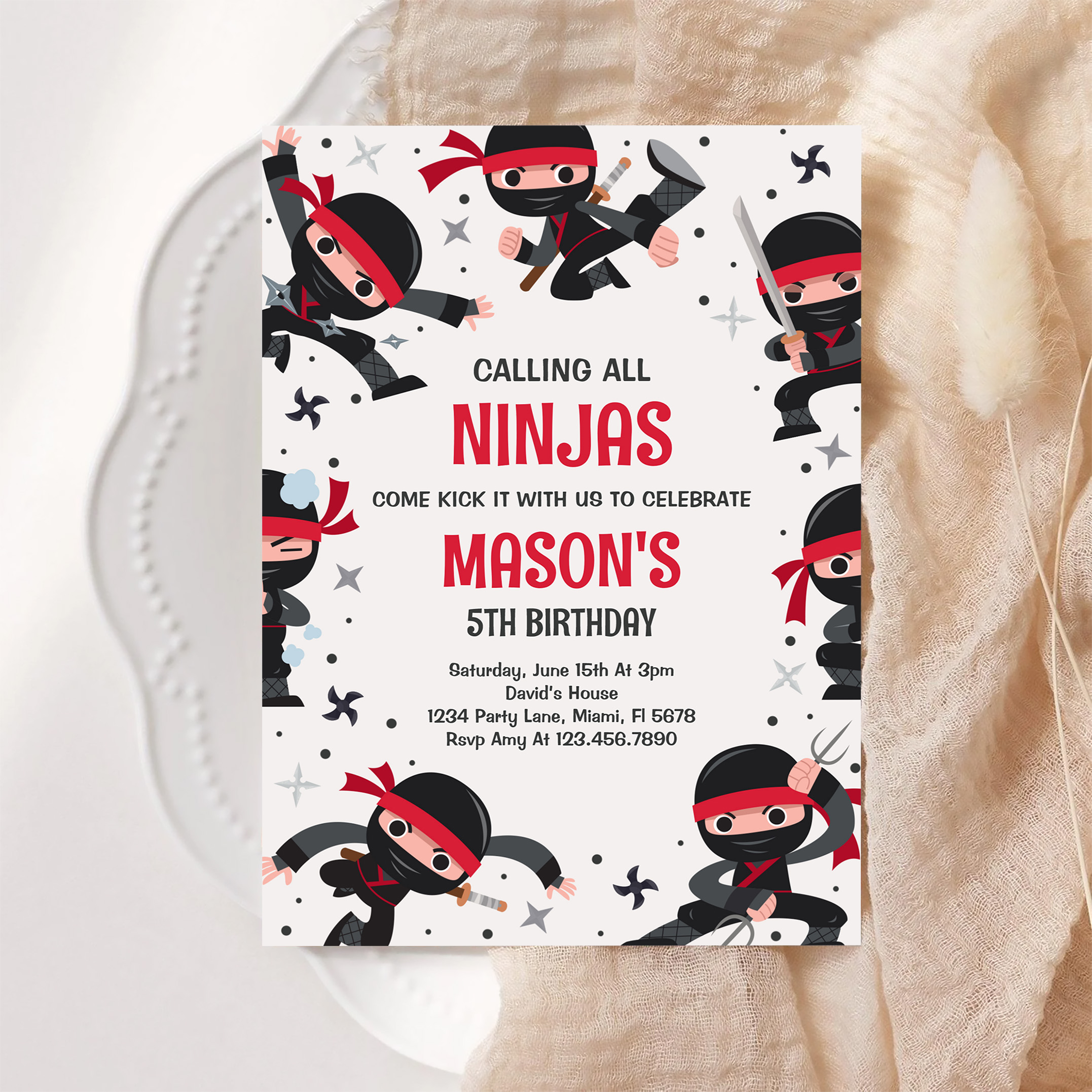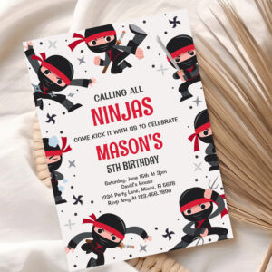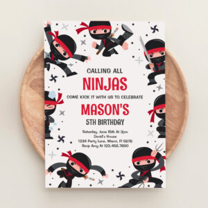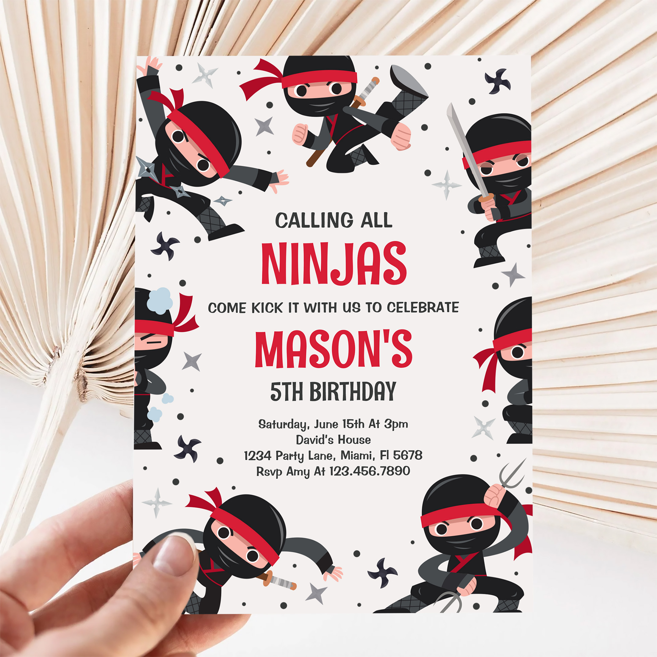 Boy Ninja Warrior Red Martial Art Birthday Party Invitation