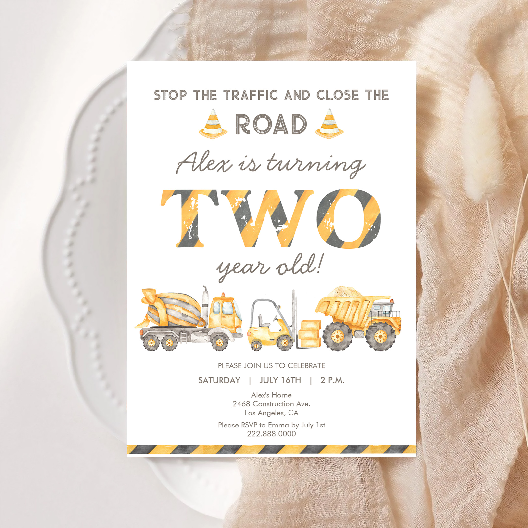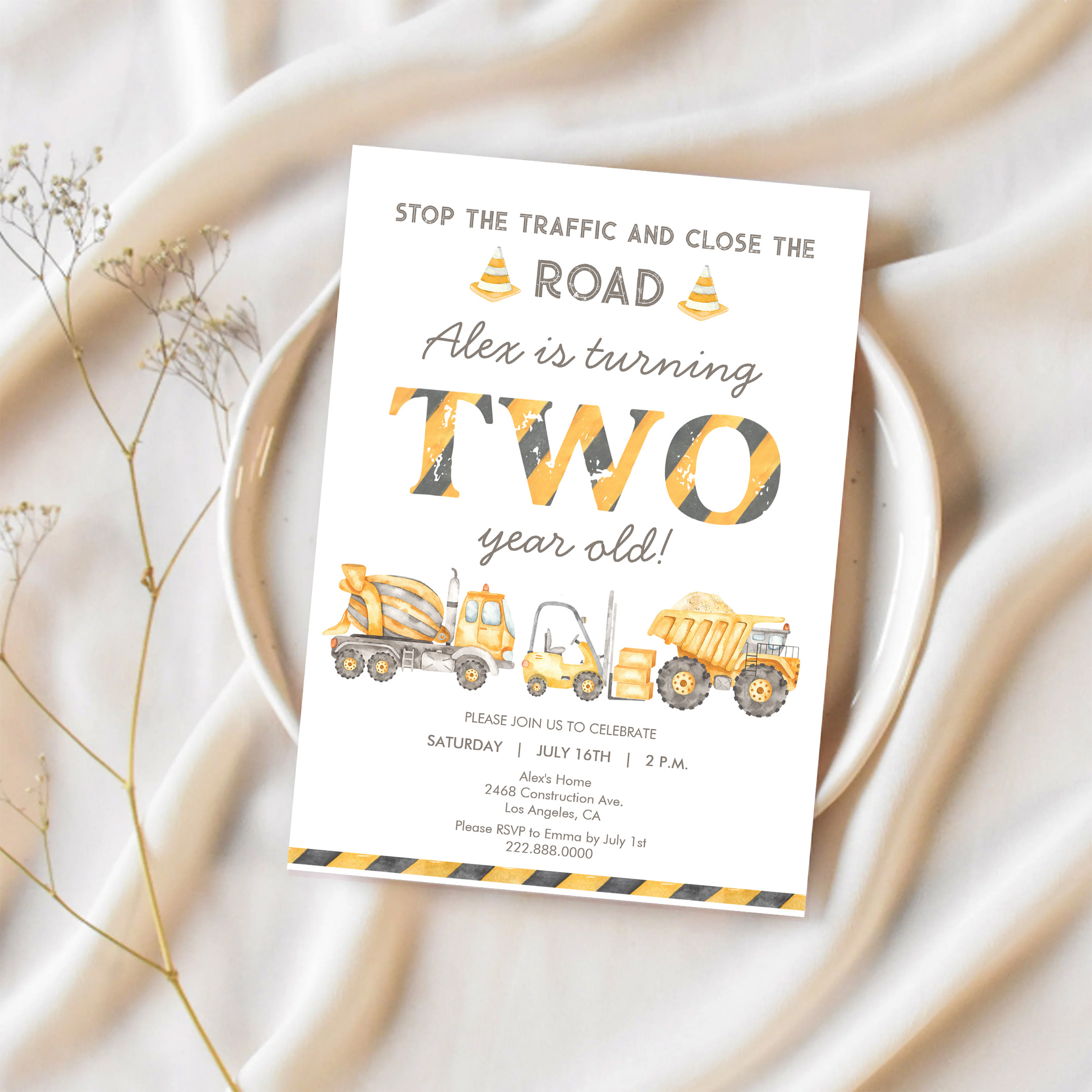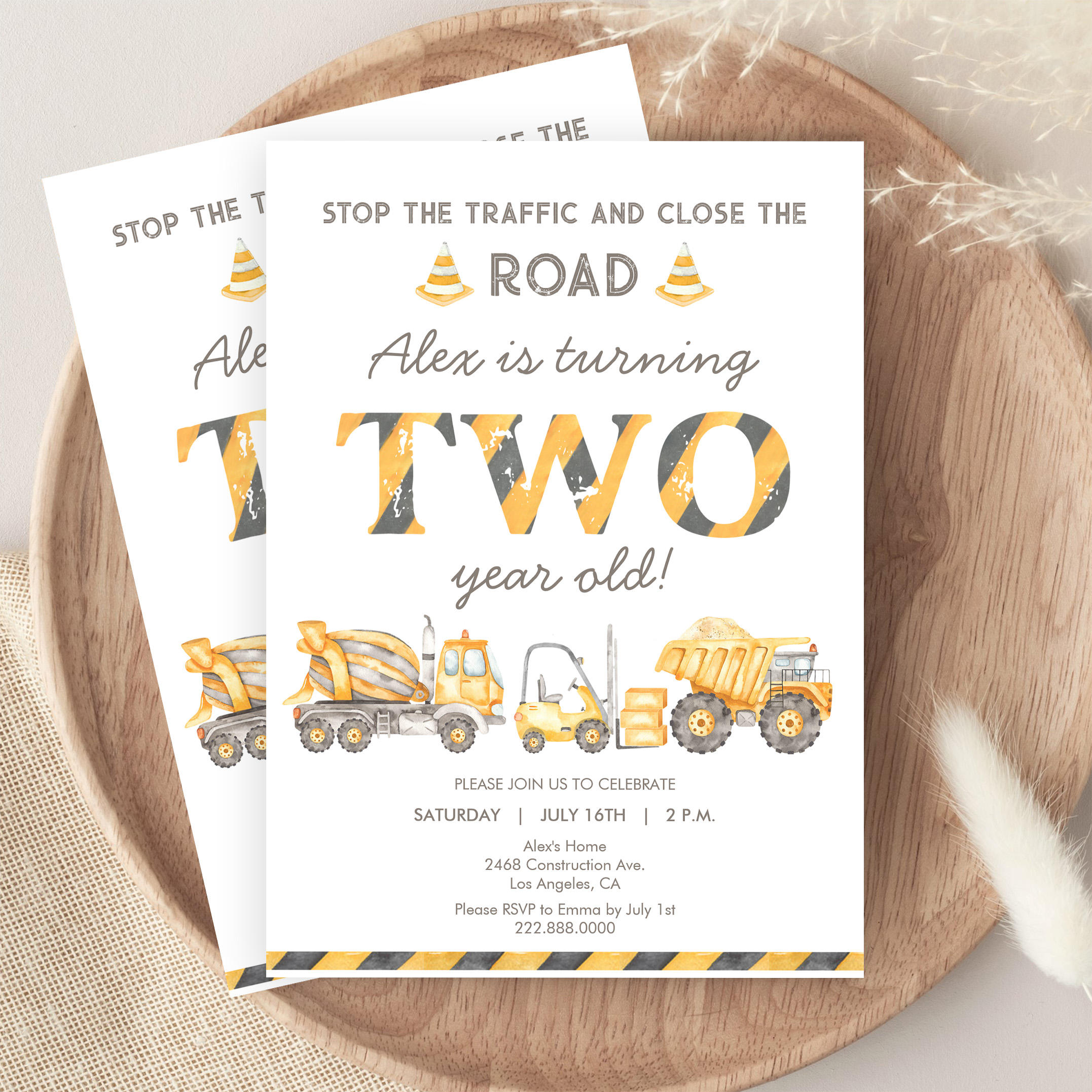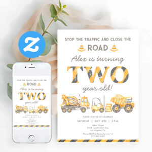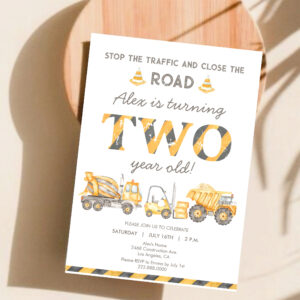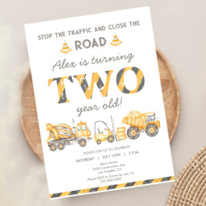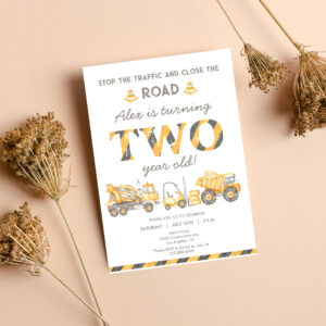 Construction Dump Truck 2nd Boys First Birthday Invitation