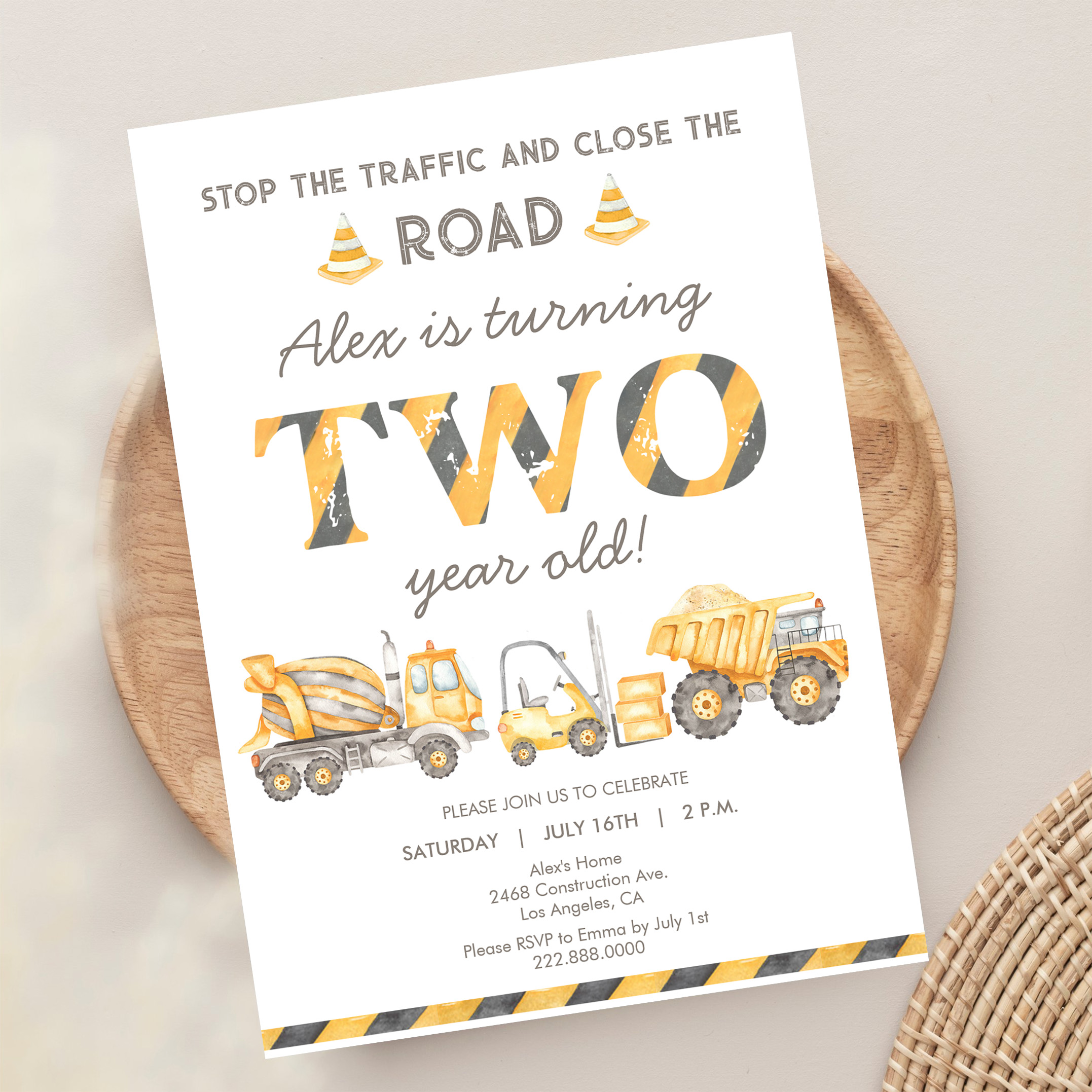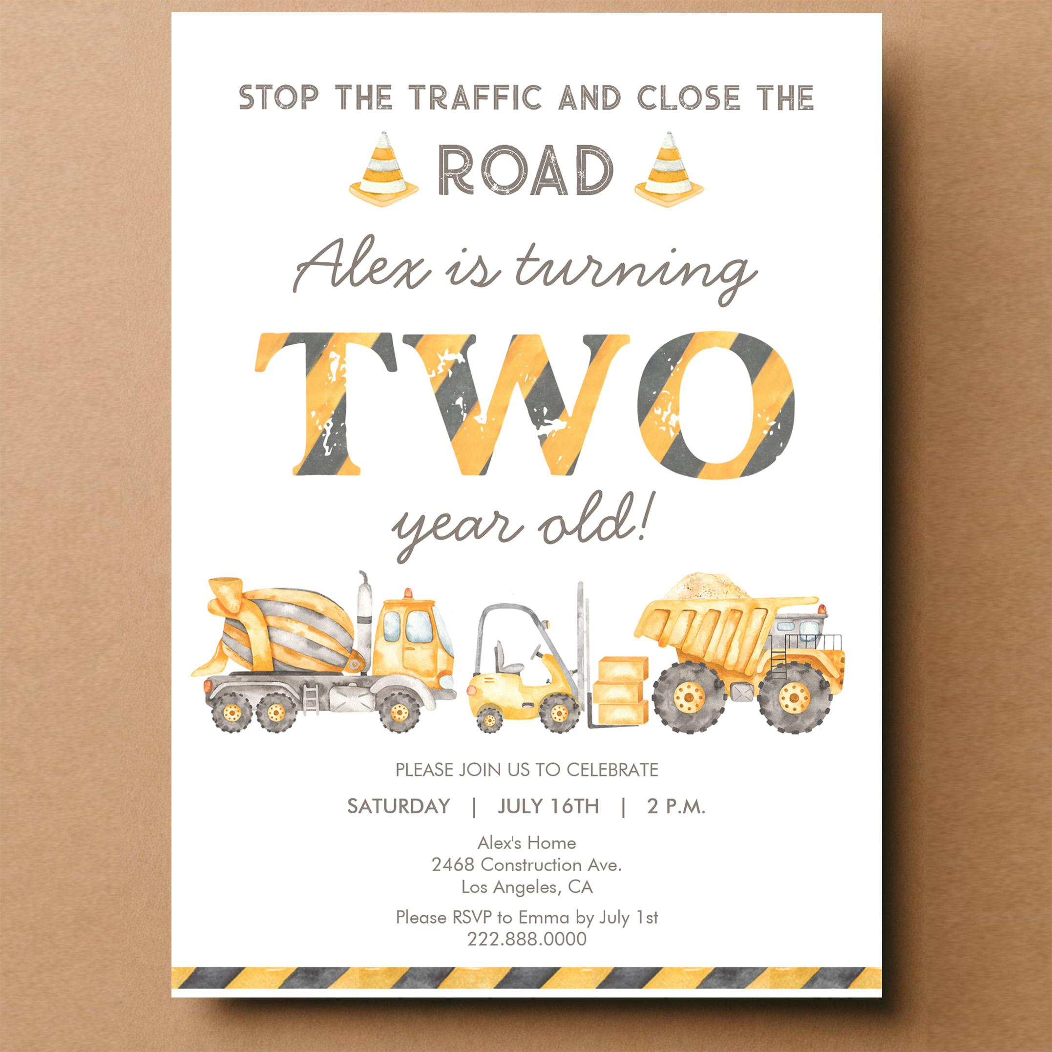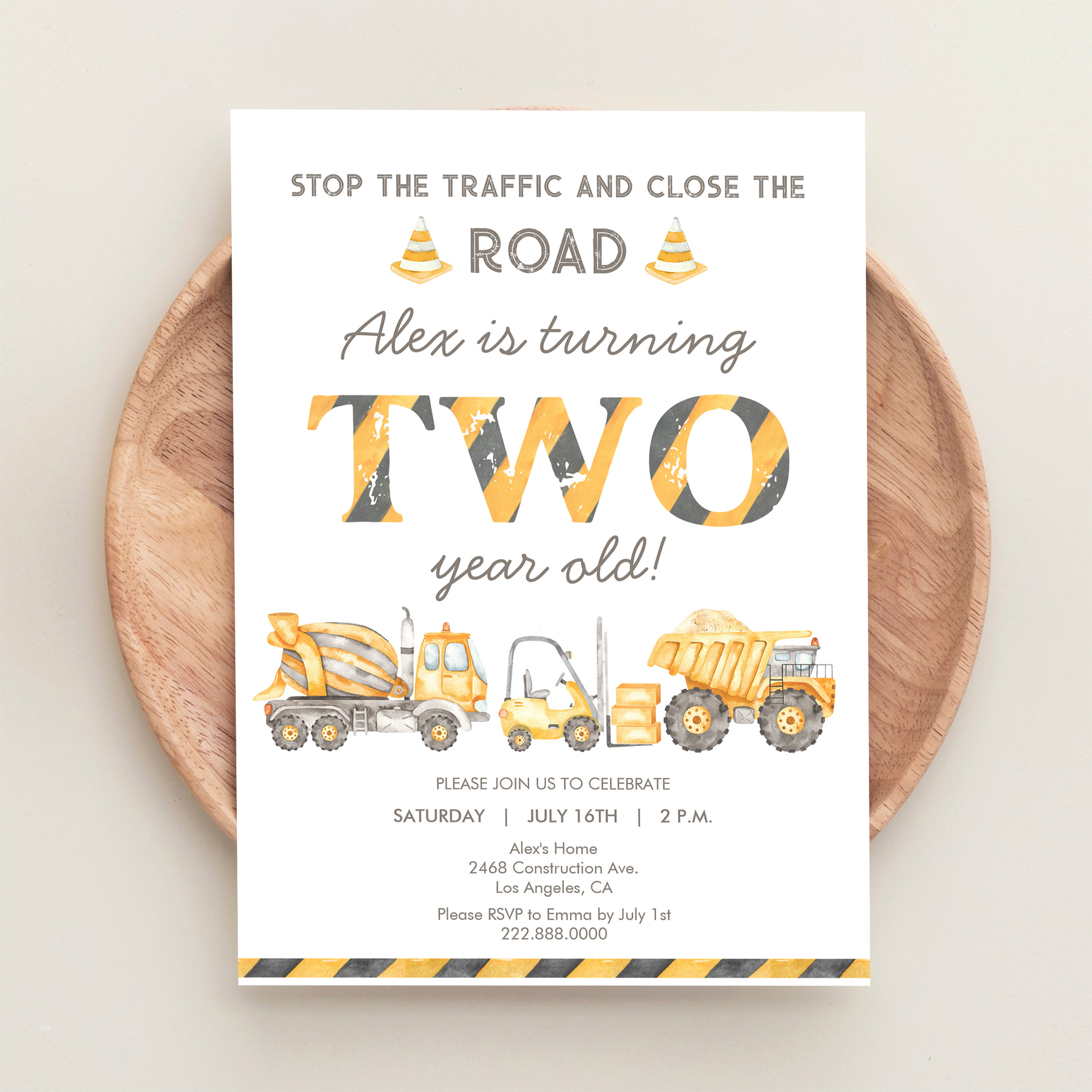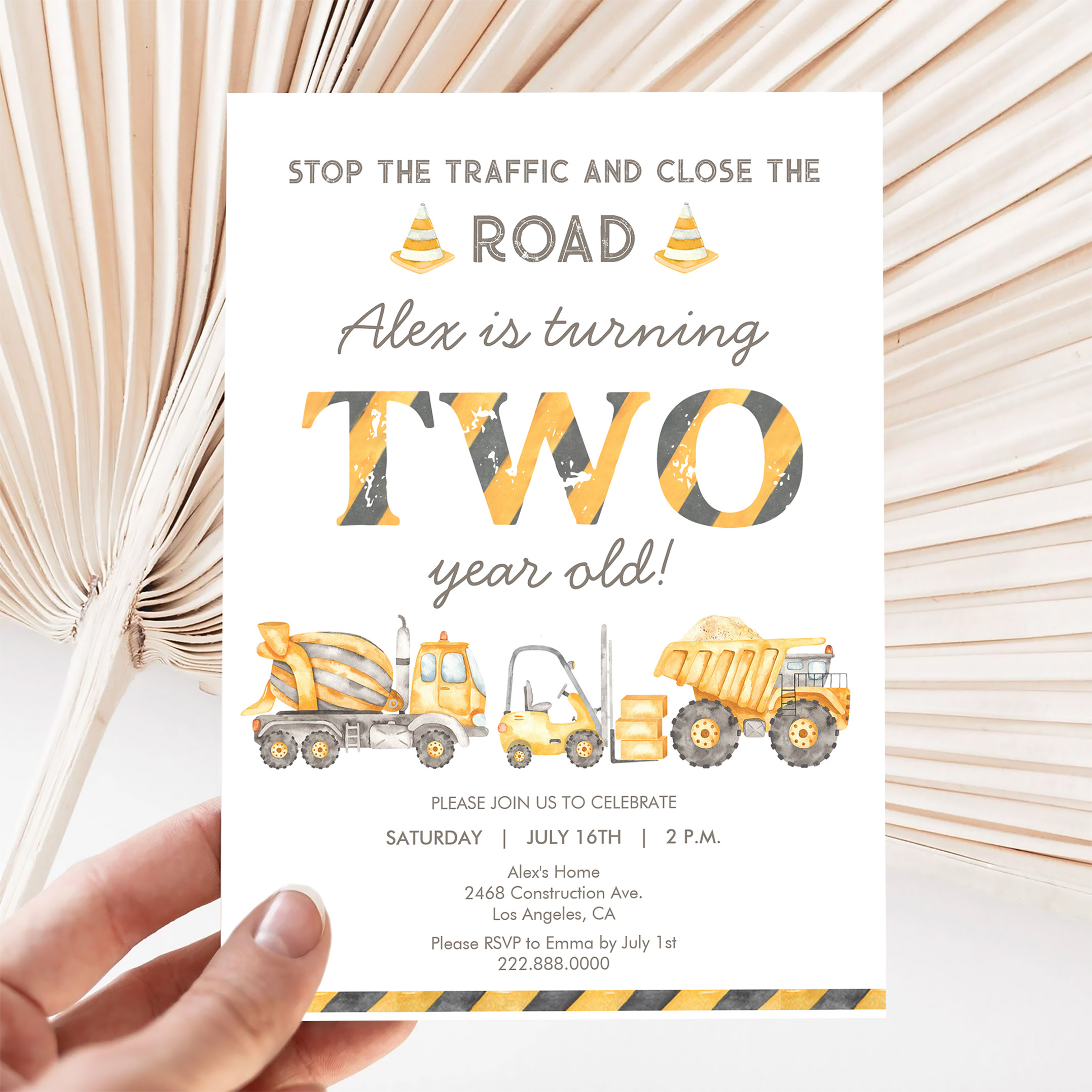 Construction Dump Truck 2nd Boys First Birthday Invitation