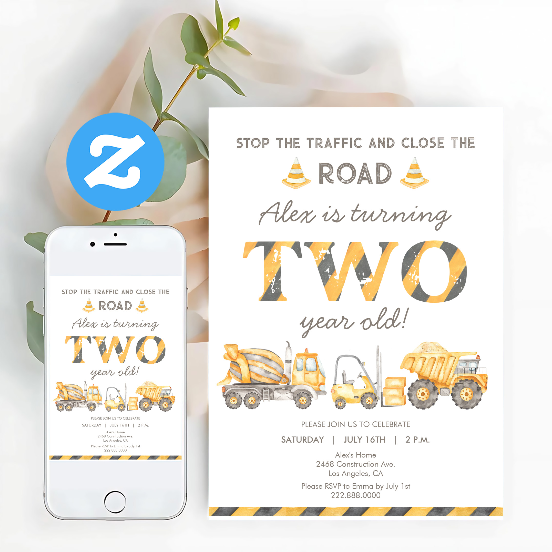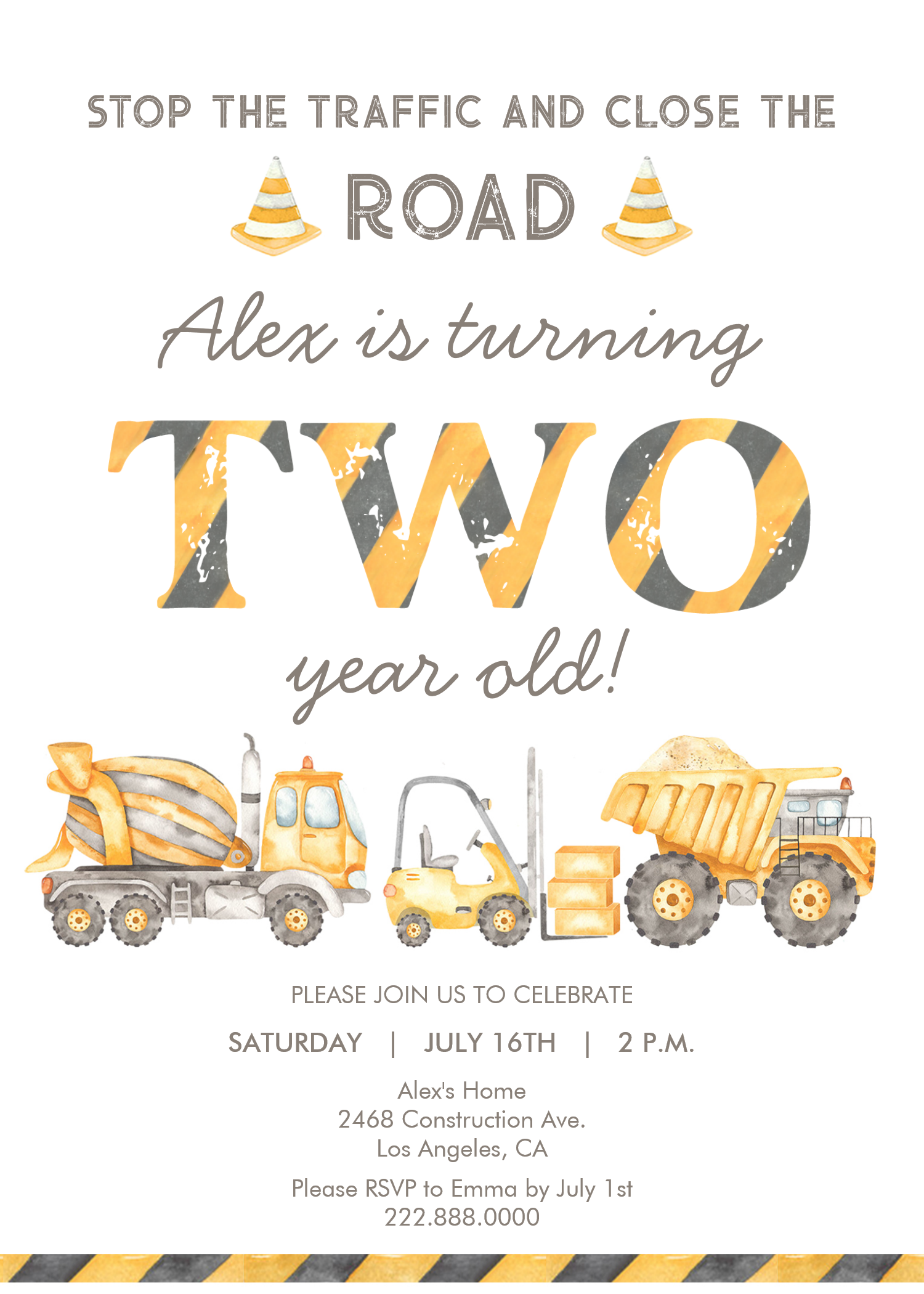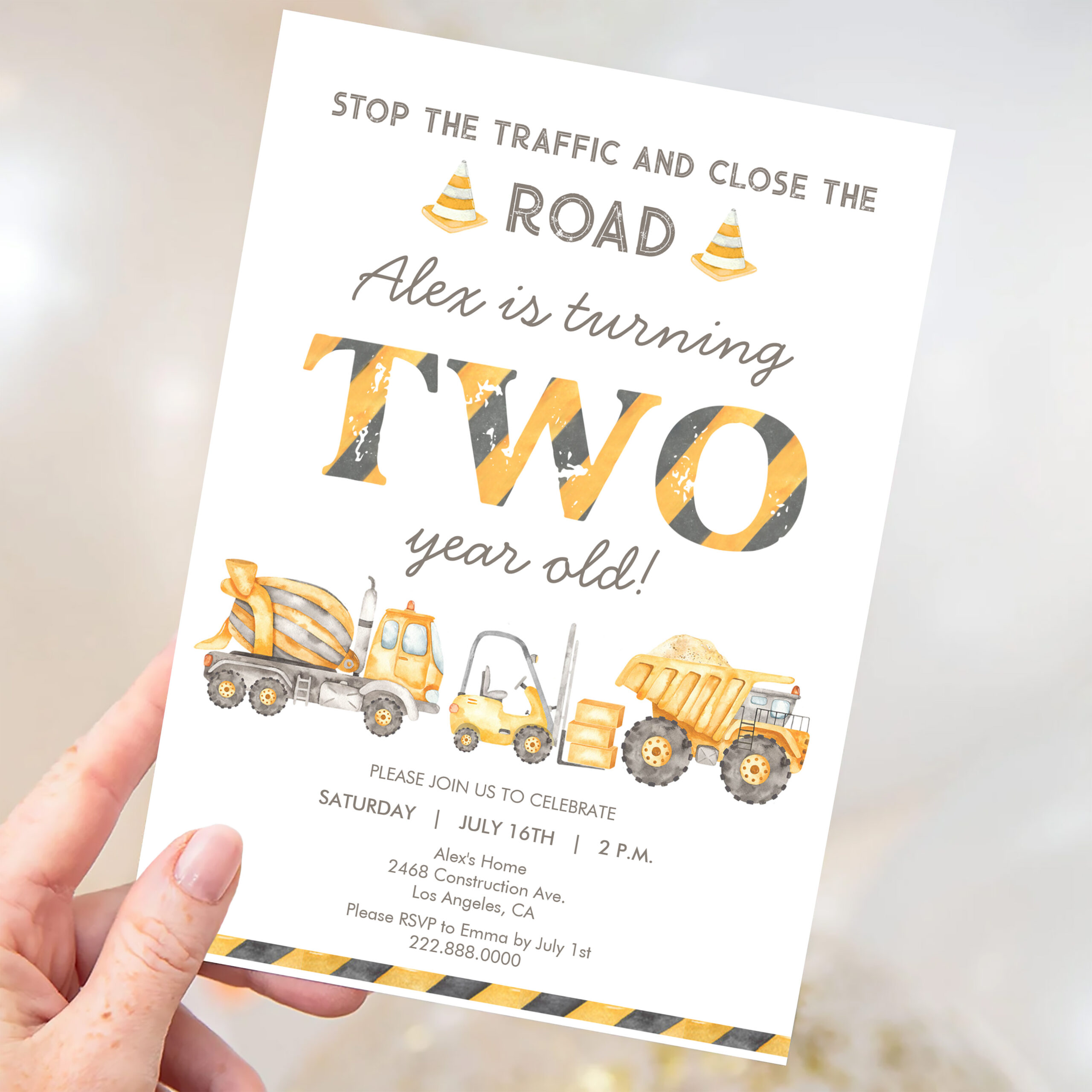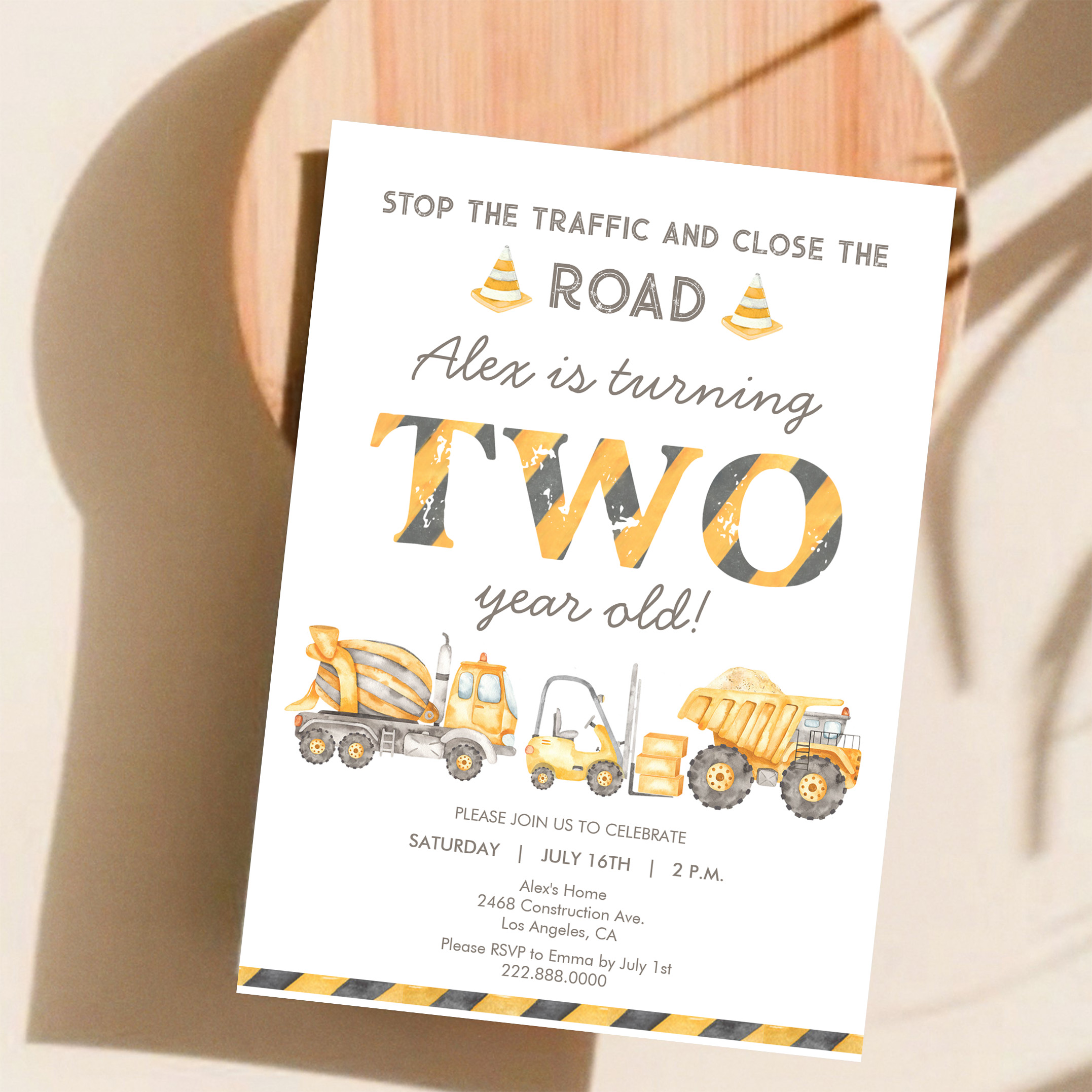 Construction Dump Truck 2nd Boys First Birthday Invitation