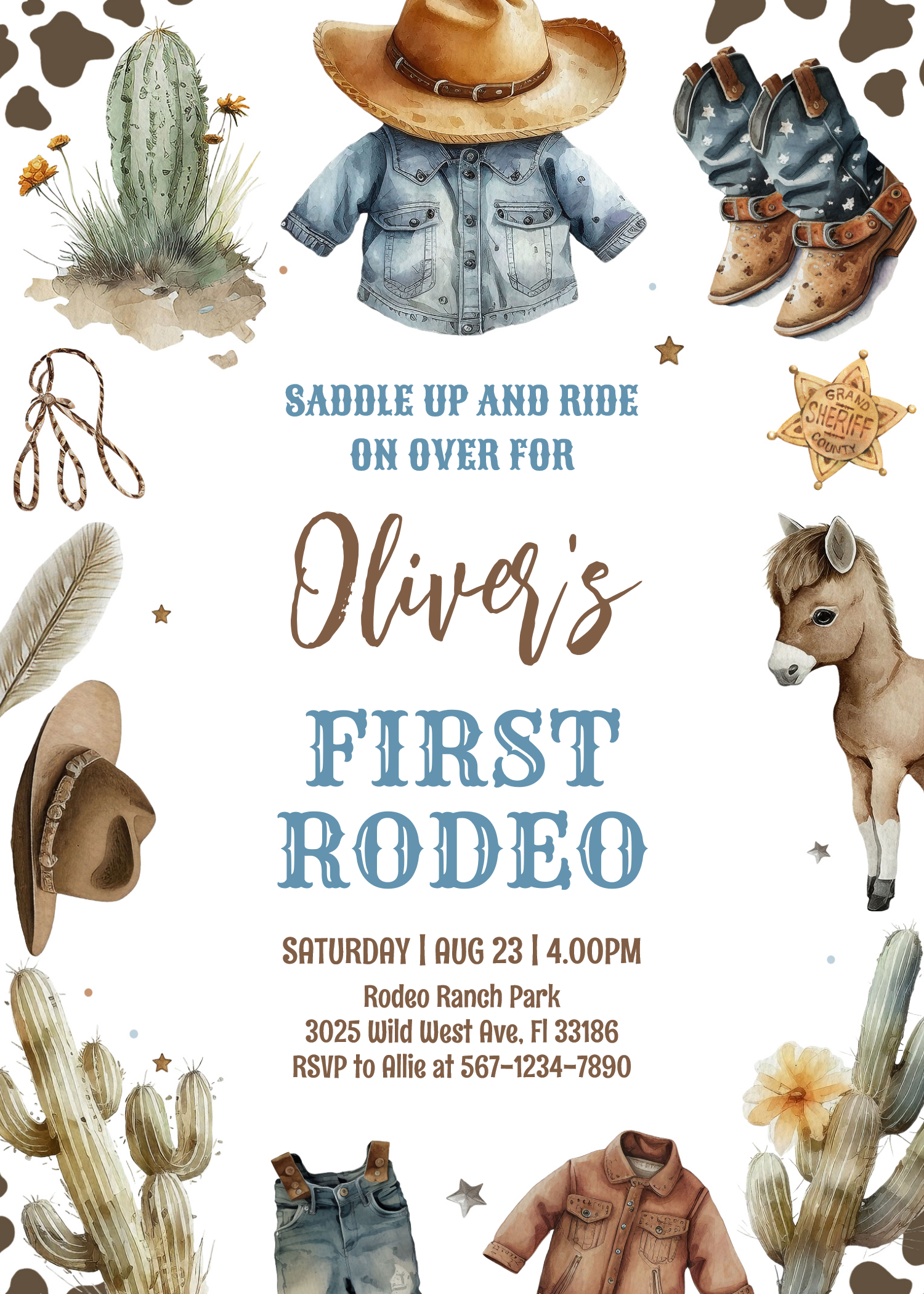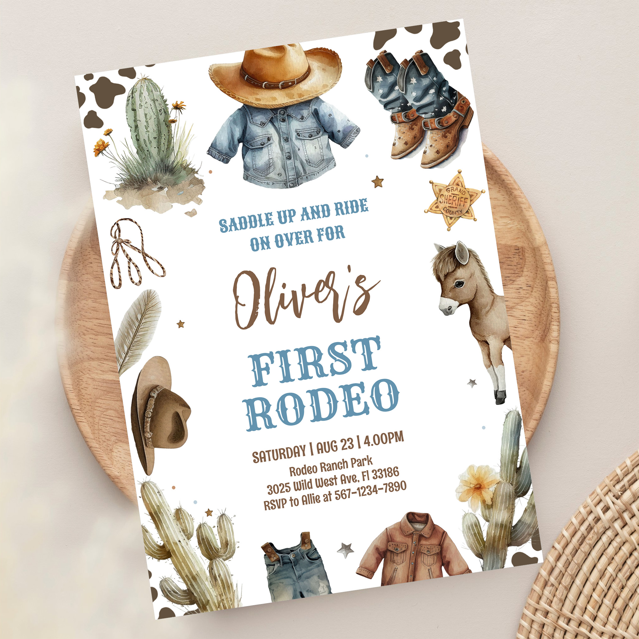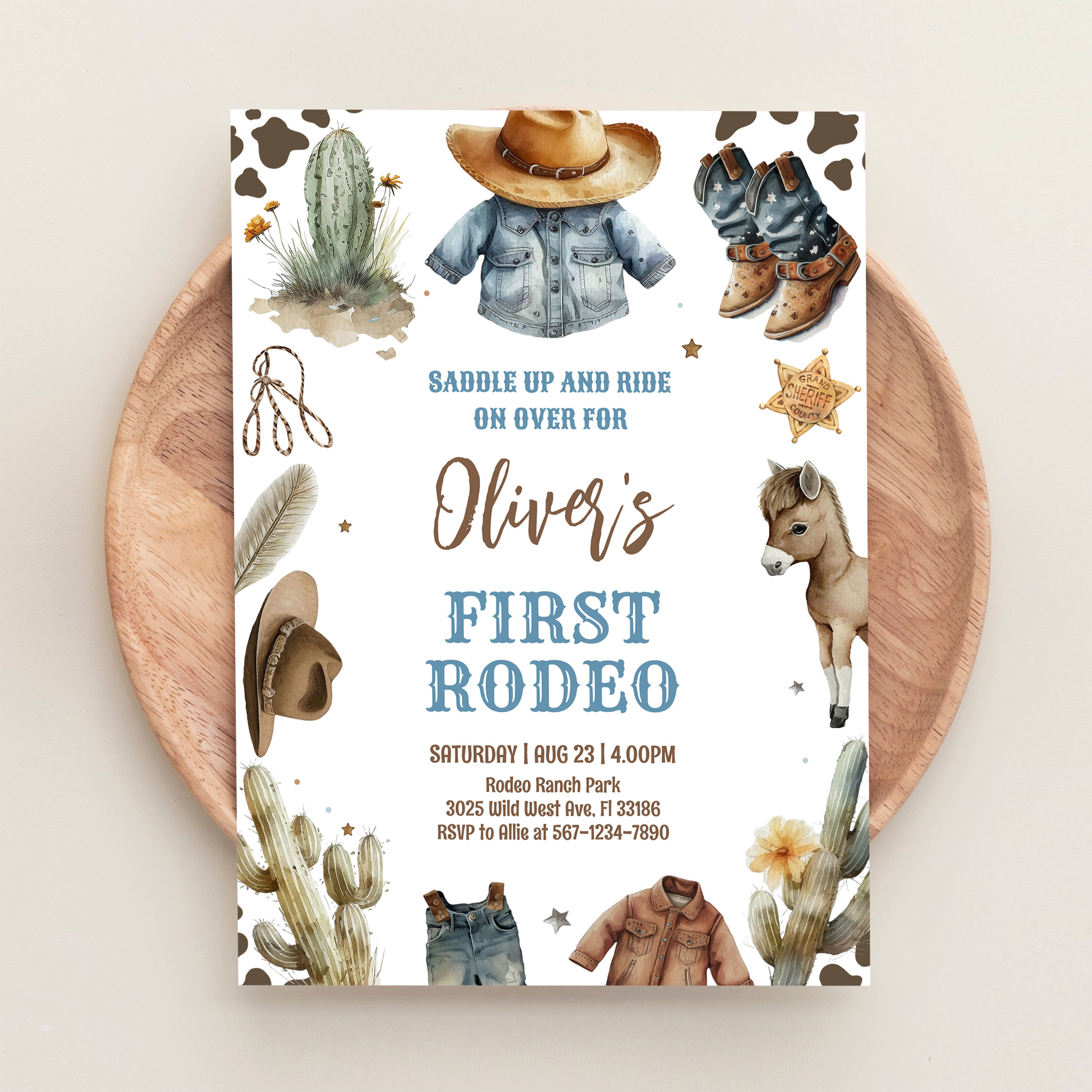 Cowboy Western Ranch Wild West 1st Rodeo Birthday Invitation