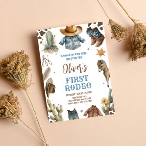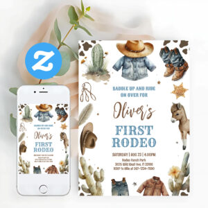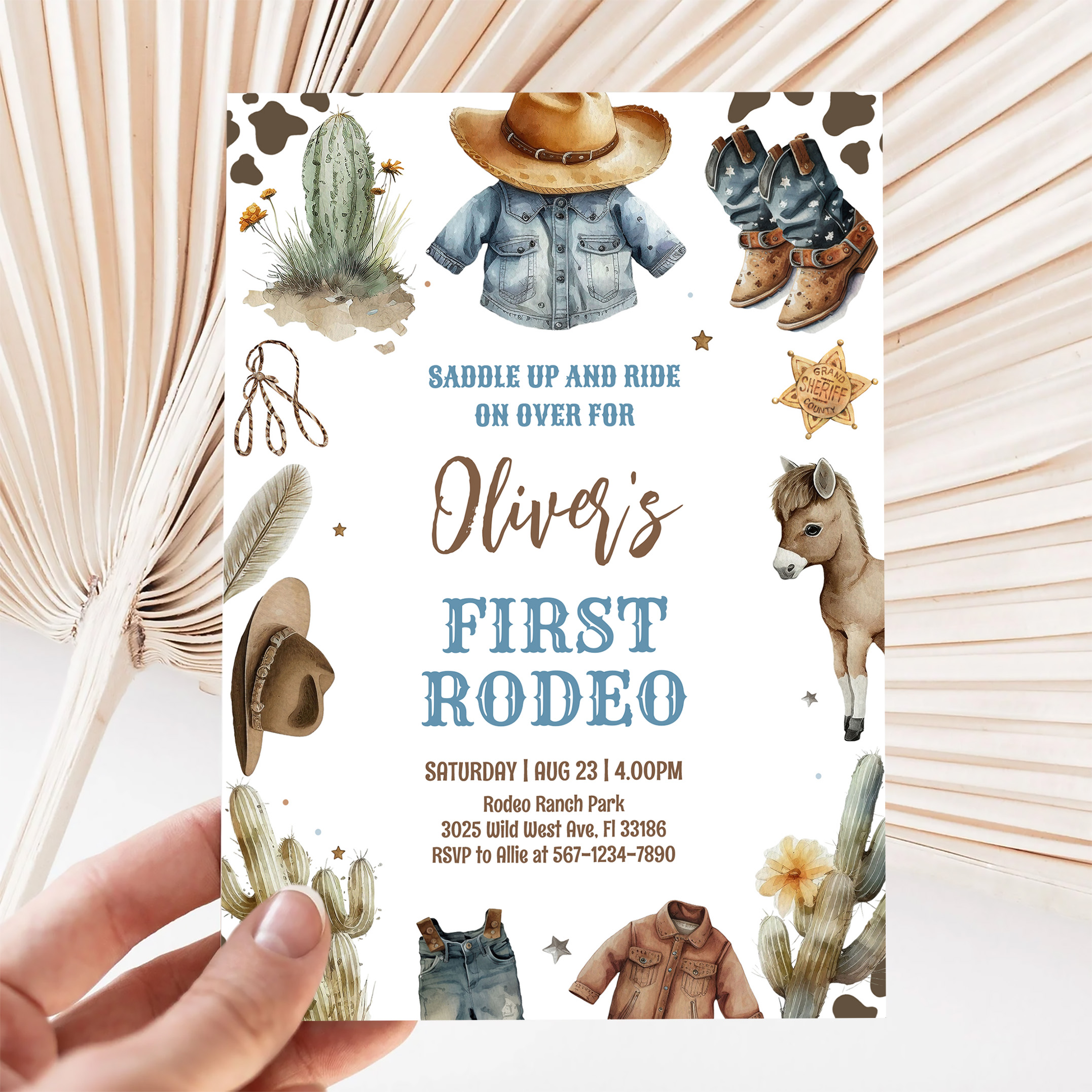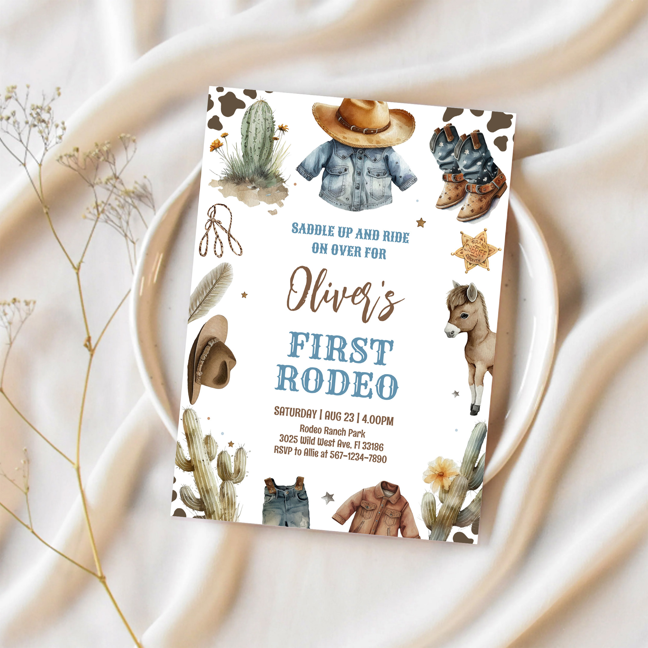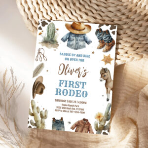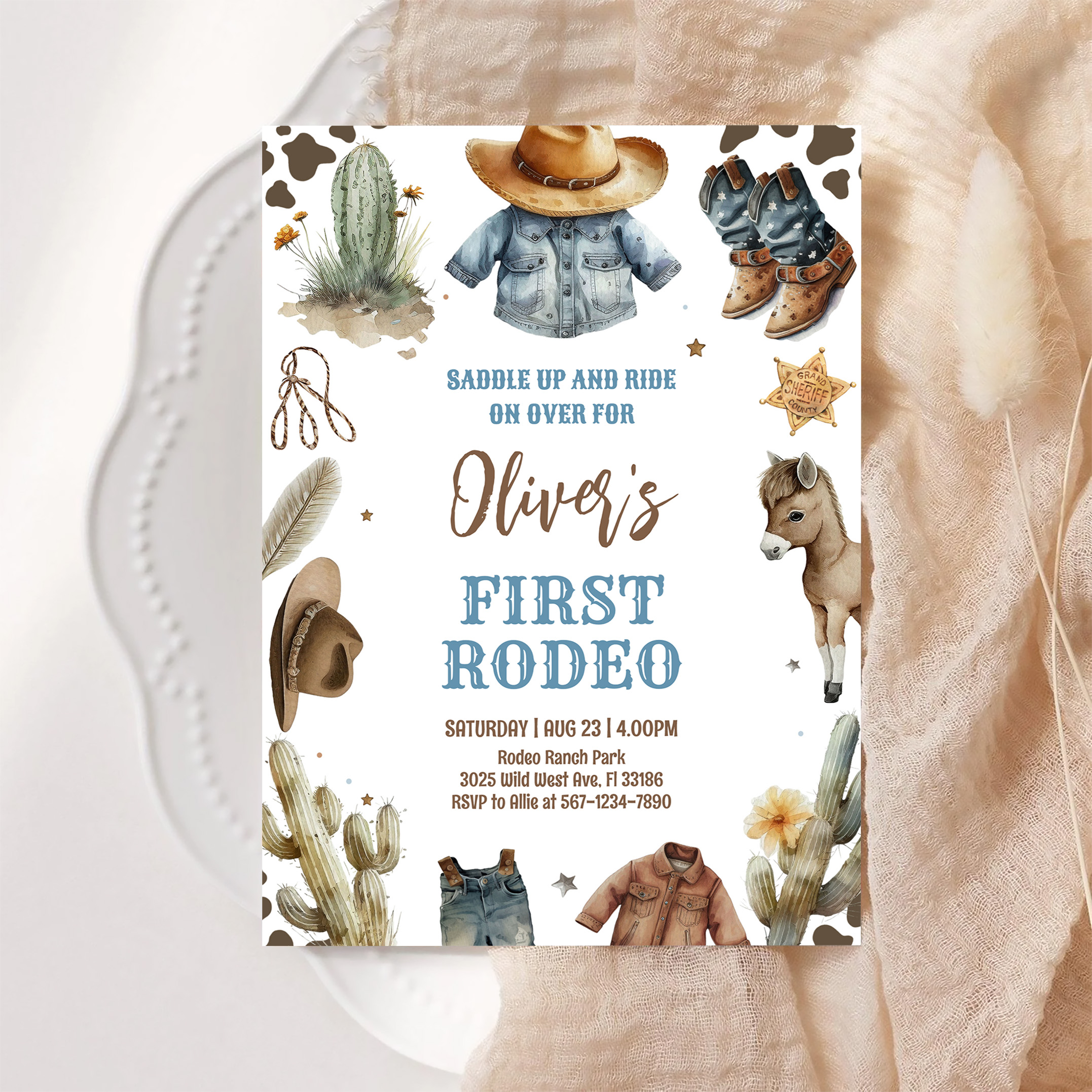 Cowboy Western Ranch Wild West 1st Rodeo Birthday Invitation