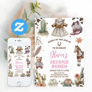 Cowgirl Second Rodeo Pink Country Western Birthday Invitation - Related products
