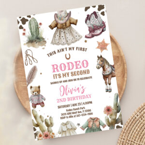 Cowgirl Second Rodeo Pink Country Western Birthday Invitation