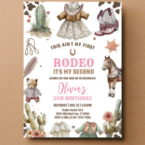 Cowgirl Second Rodeo Pink Country Western Birthday Invitation - Related products