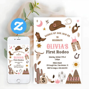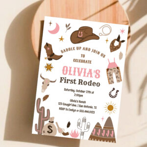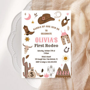 Cowgirl Wild West Southwestern 1st Rodeo Birthday Invitation - Related products