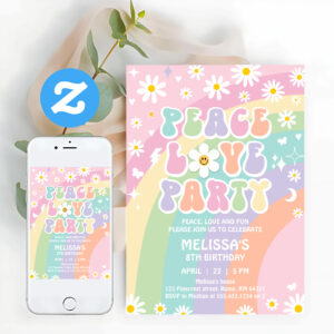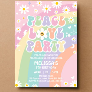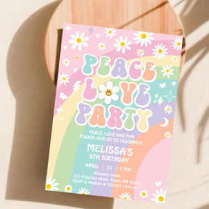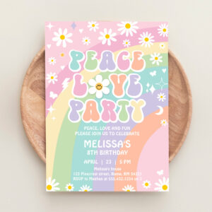 Daisy Peace Love Party Groovy Hippie 70S Birthday Invitation - Related products