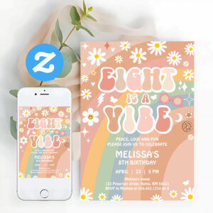 Eight Is A Vibe Groovy Retro 70S 8th Birthday Invitation - Related products