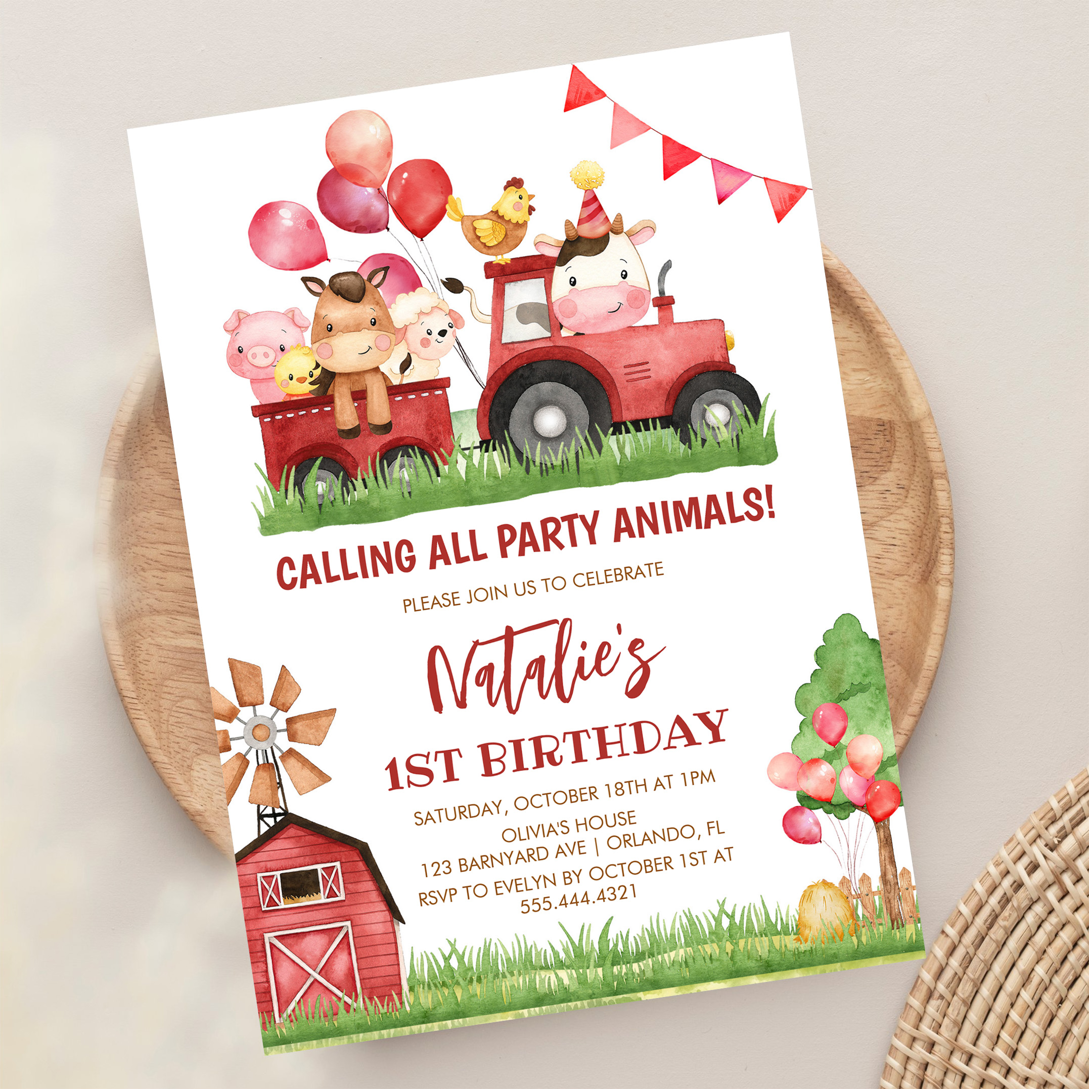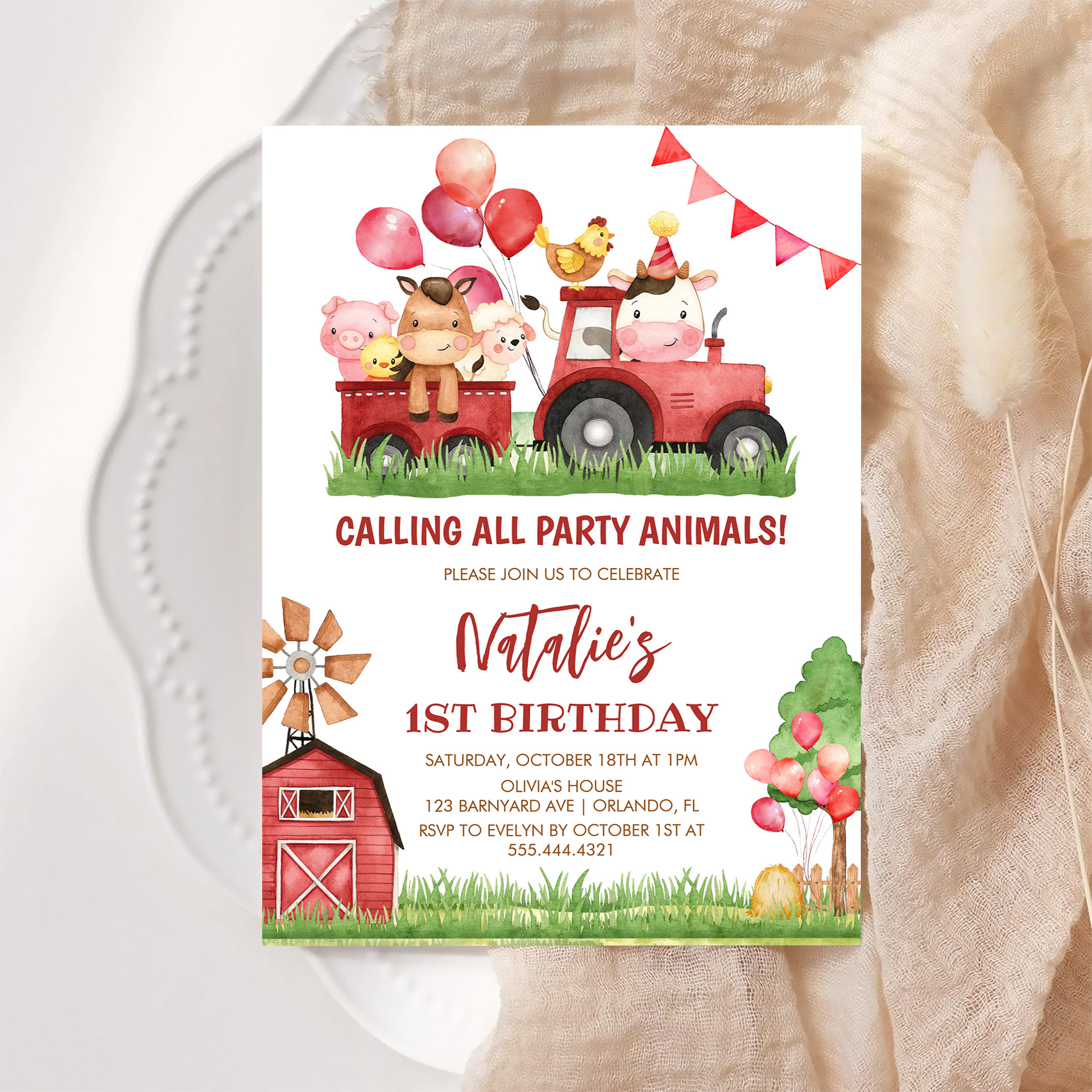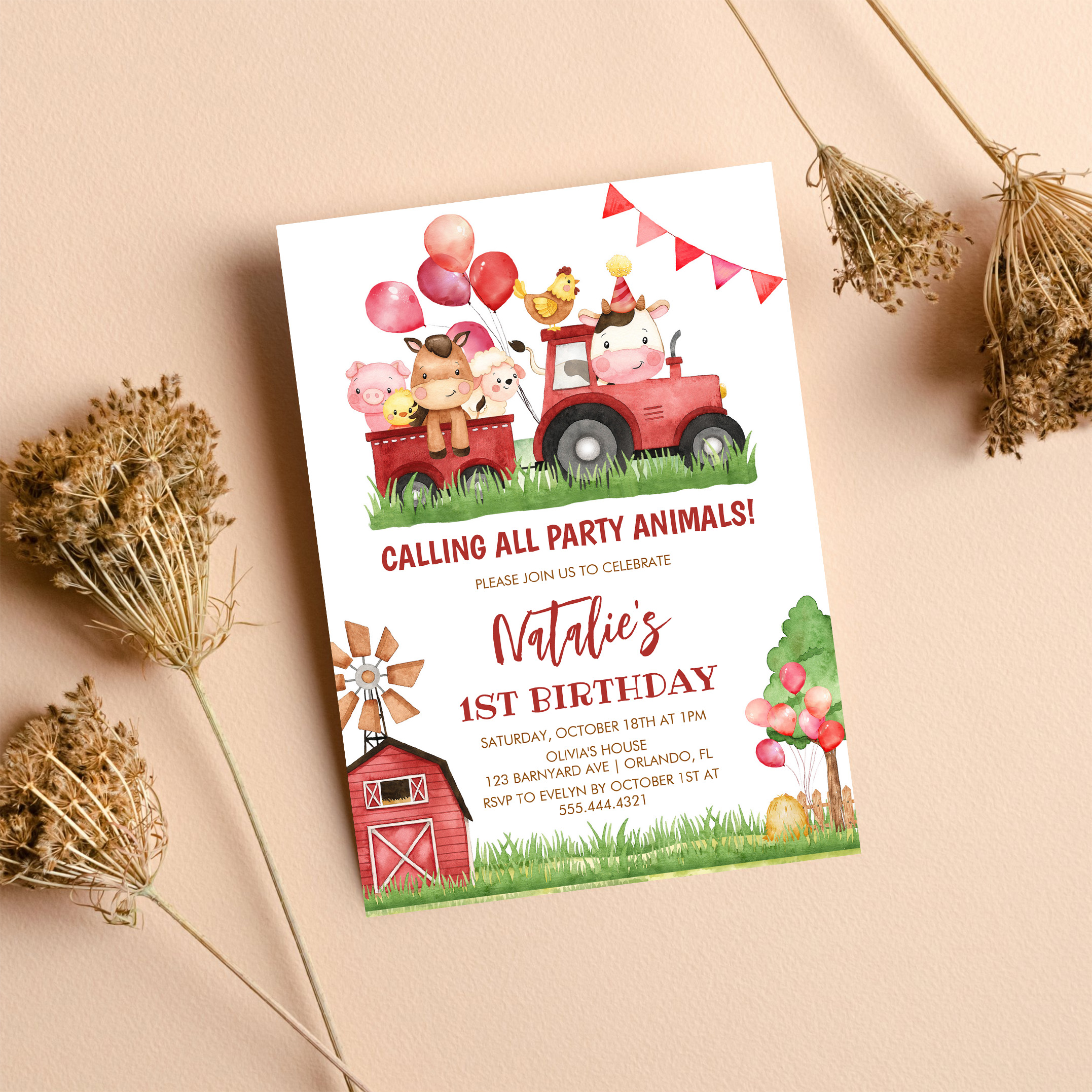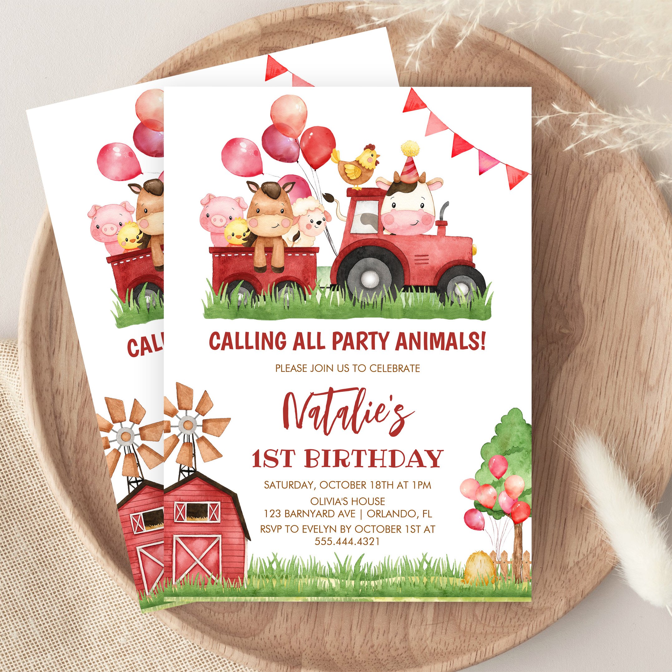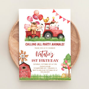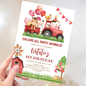 Farm Animals Barnyard Ranch Girls 1st Birthday Invitation - Related products