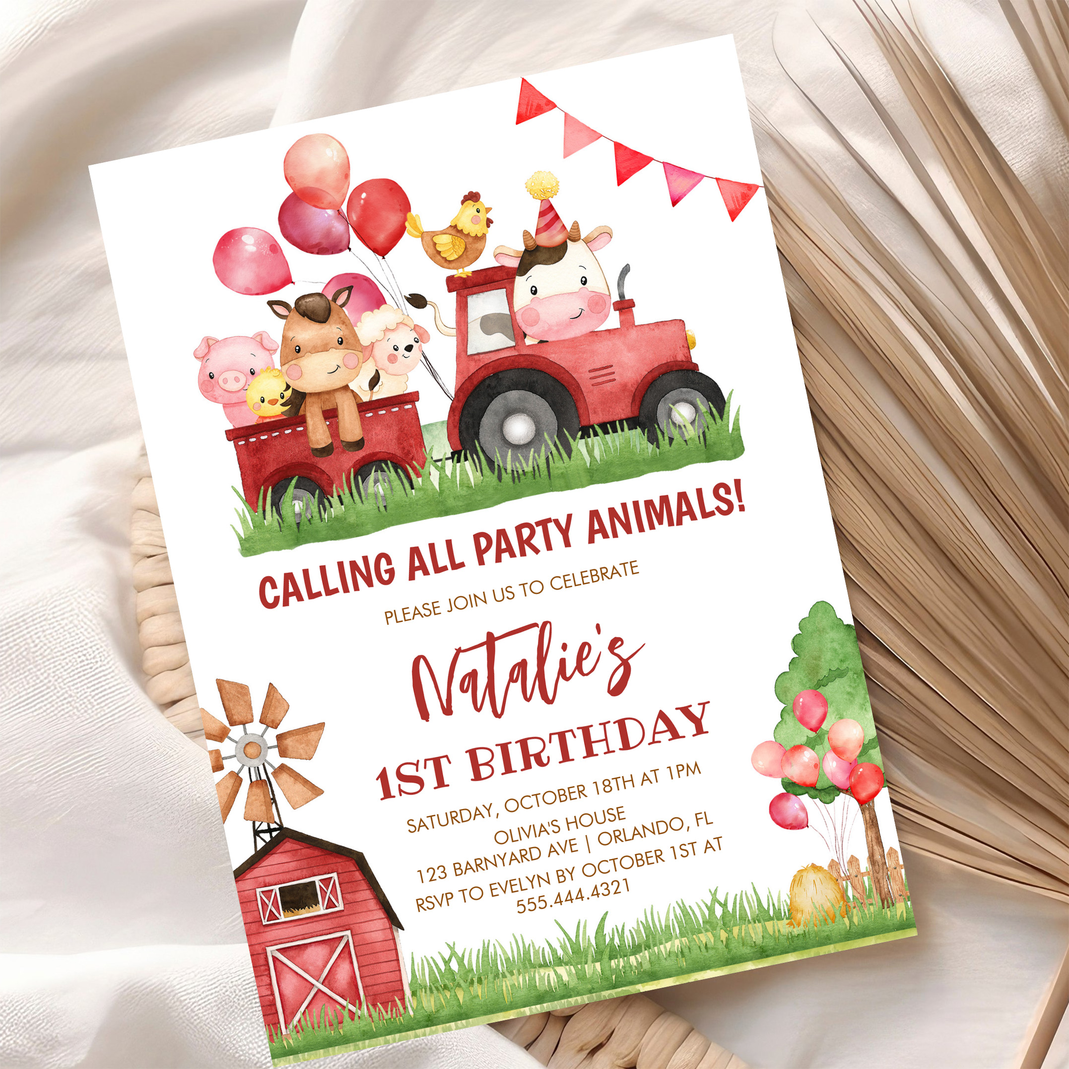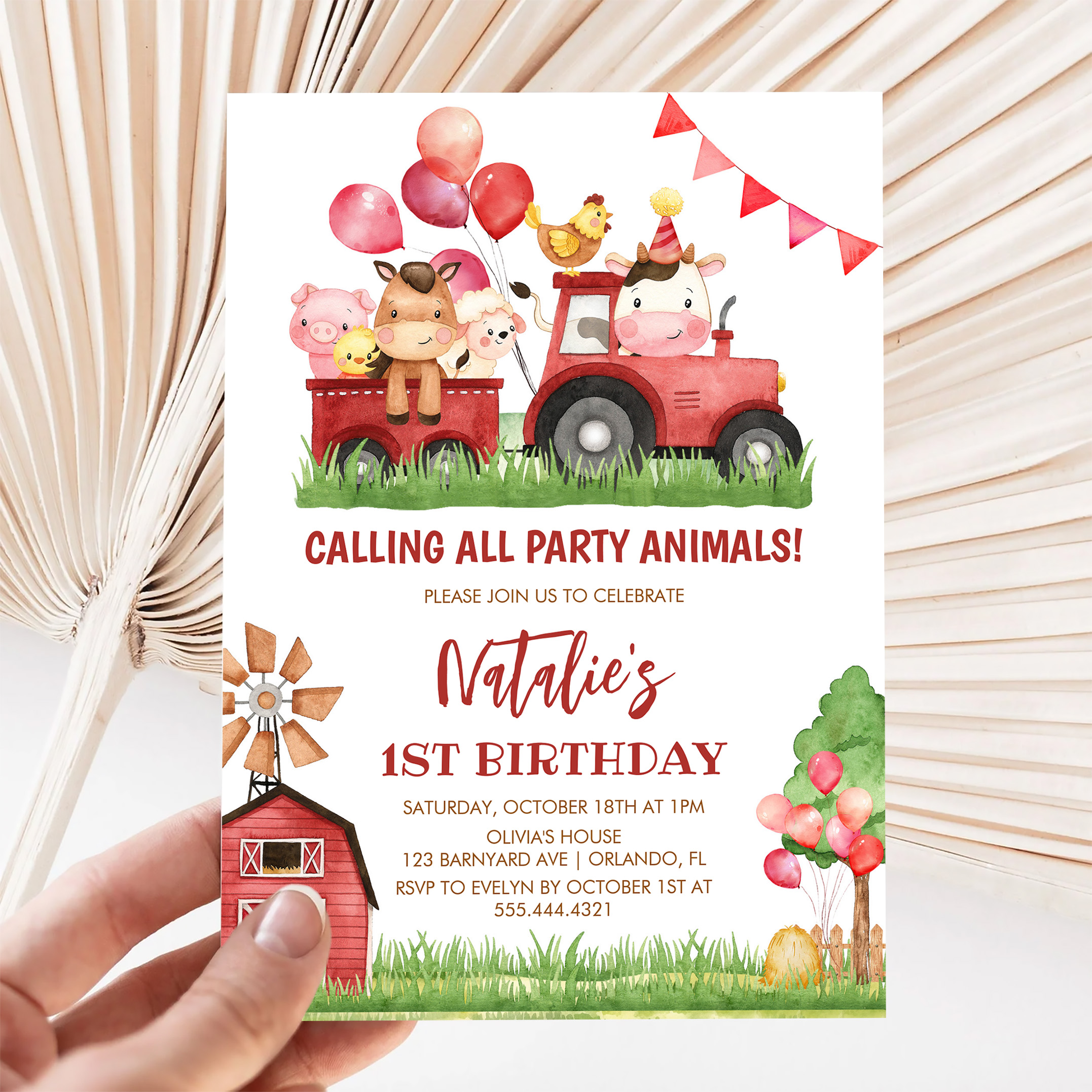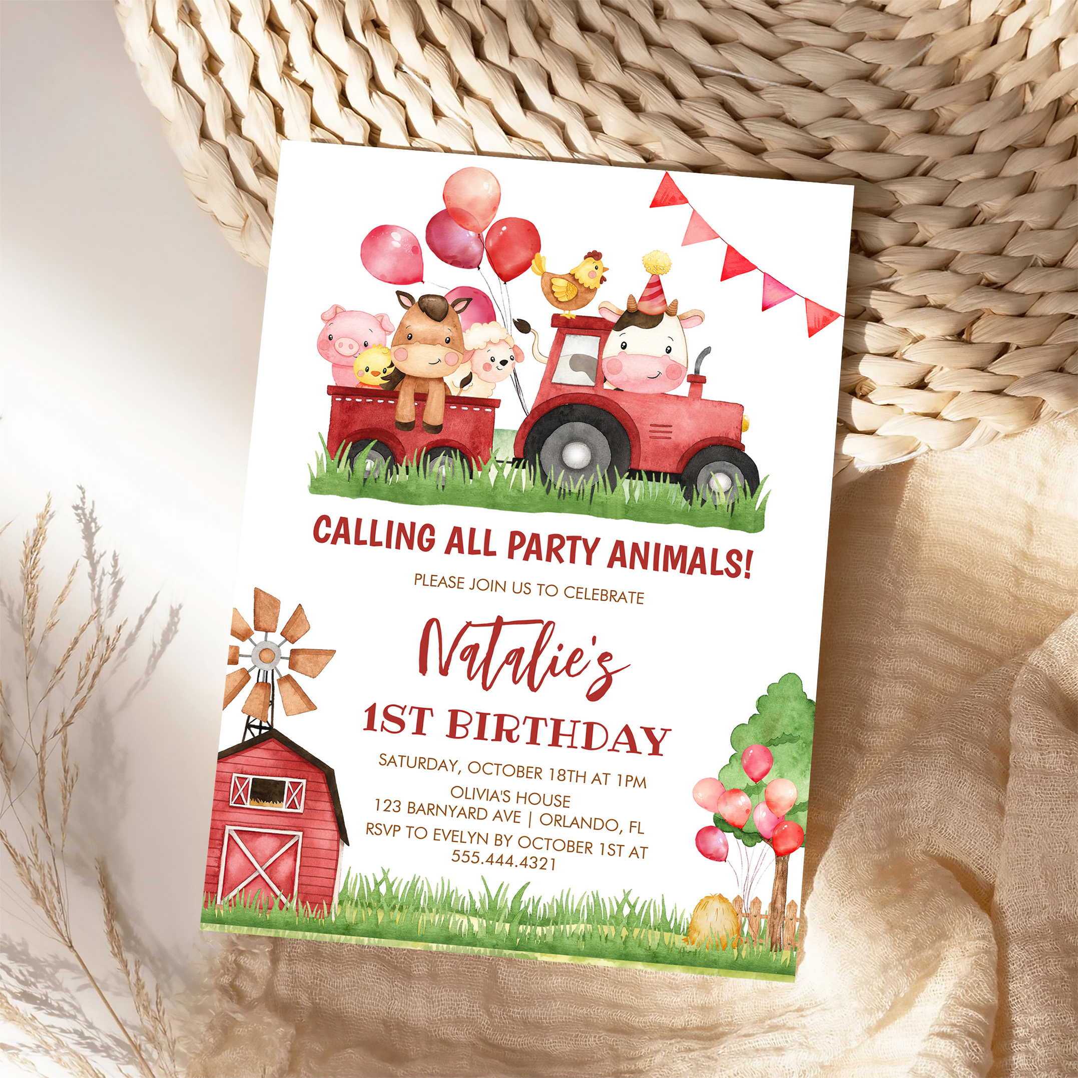 Farm Animals Barnyard Ranch Girls 1st Birthday Invitation - Related products