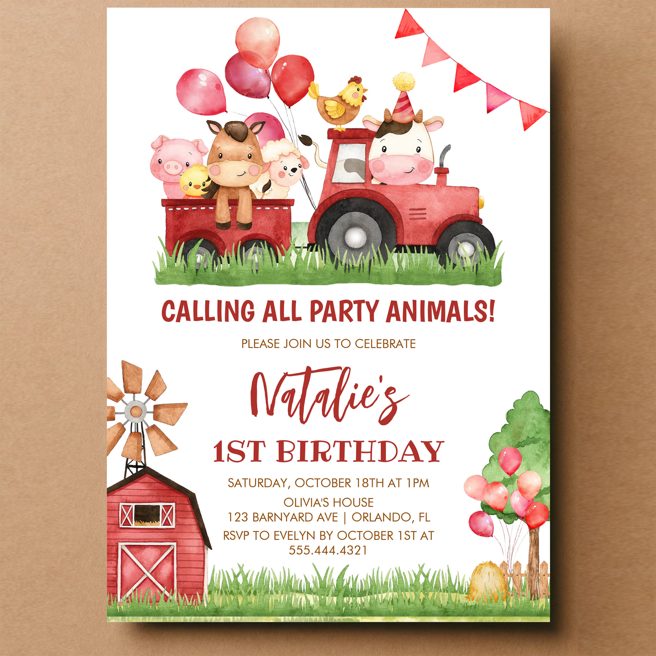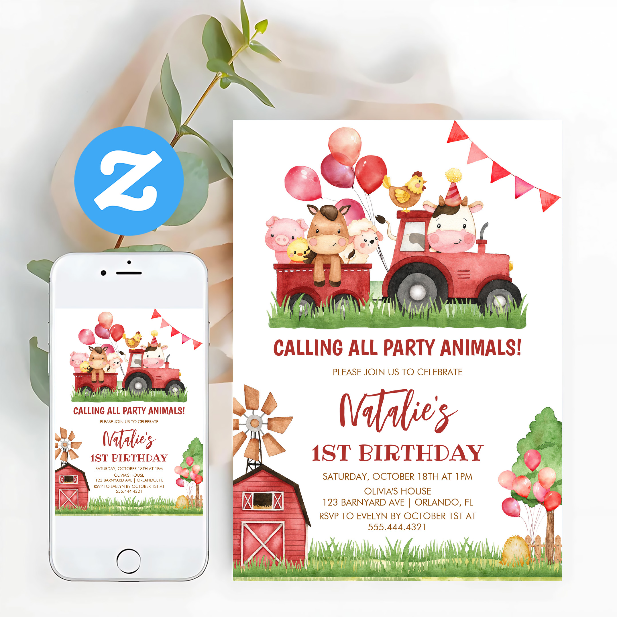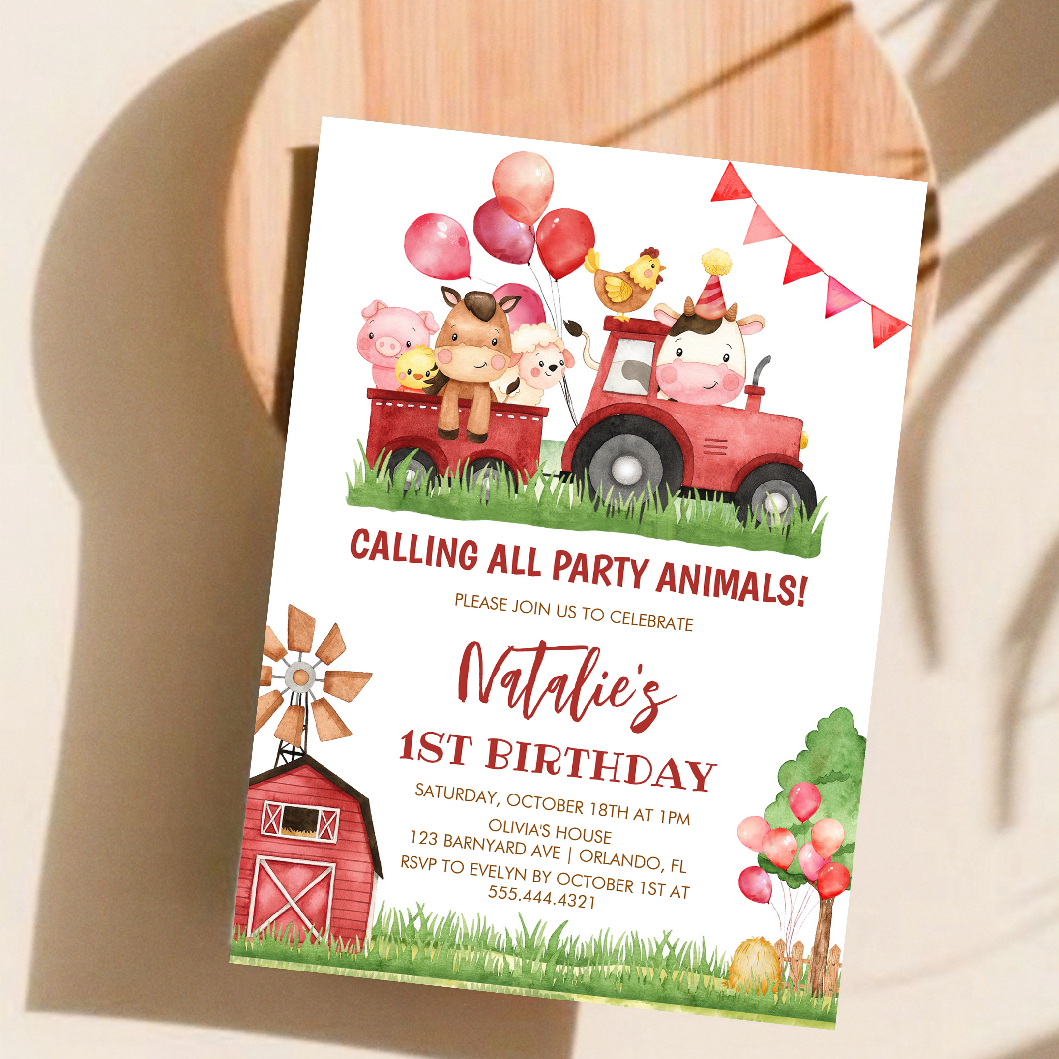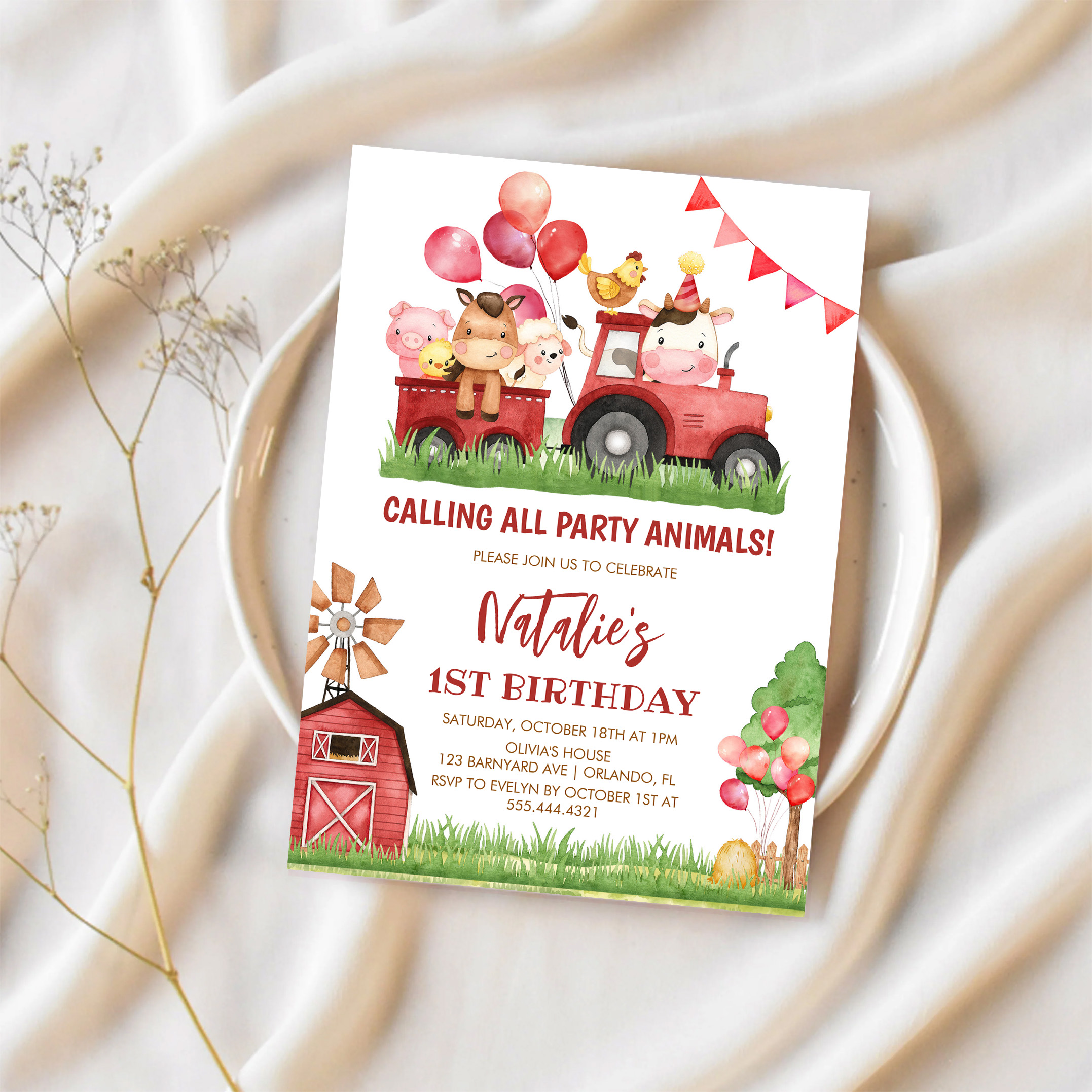 Farm Animals Barnyard Ranch Girls 1st Birthday Invitation - Related products