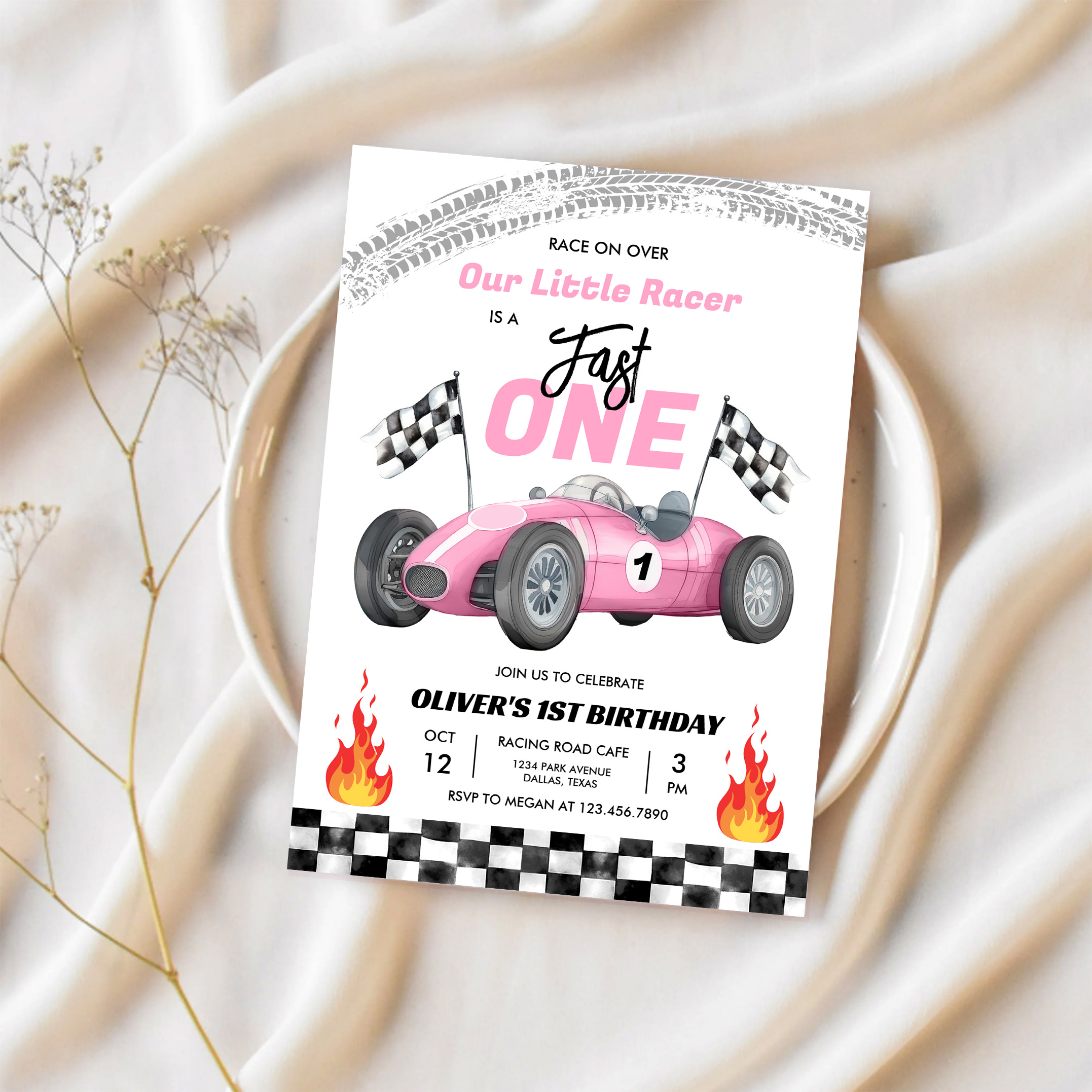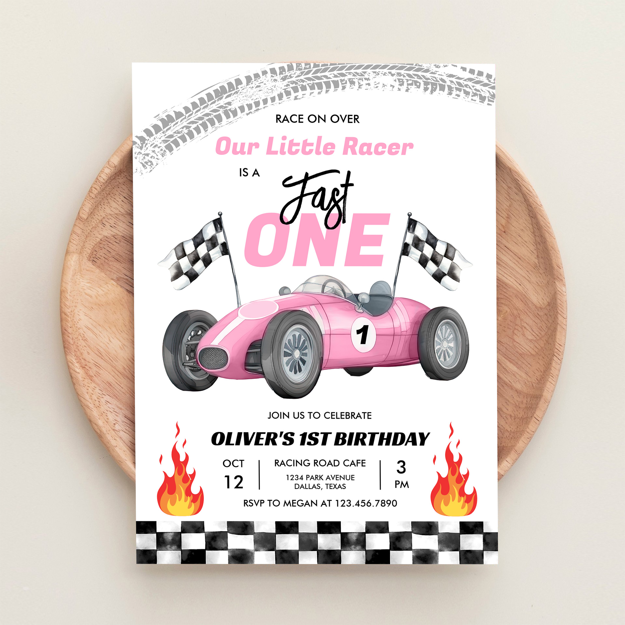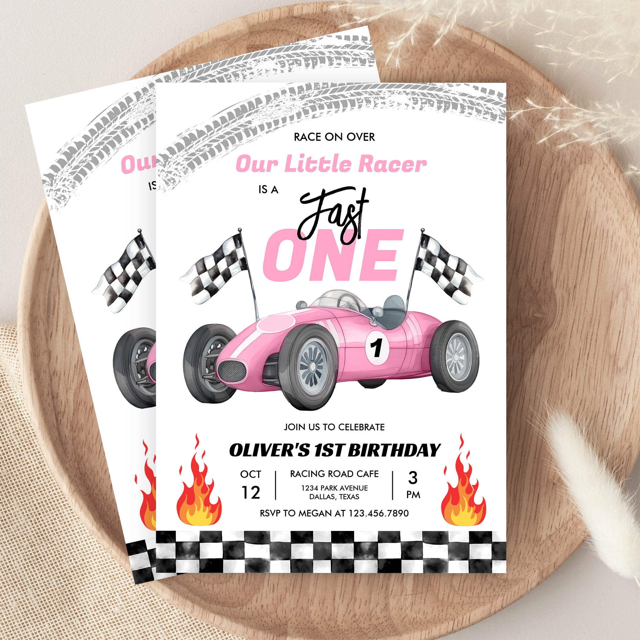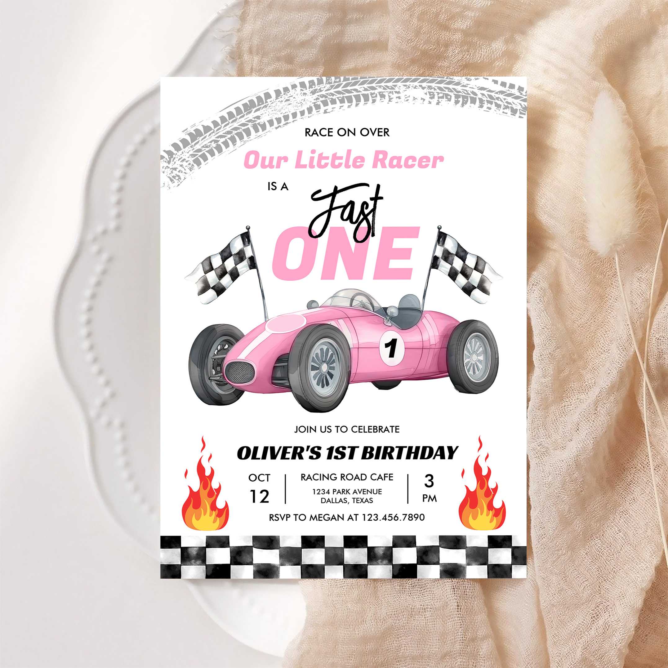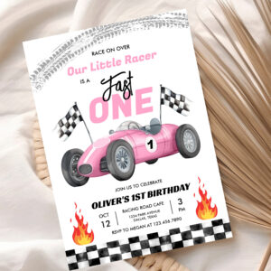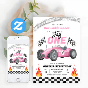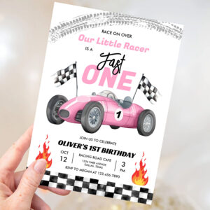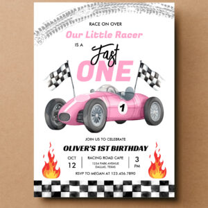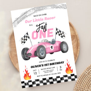 Fast One Pink Race Car 1st Birthday Racing Girl Invitation - Related products