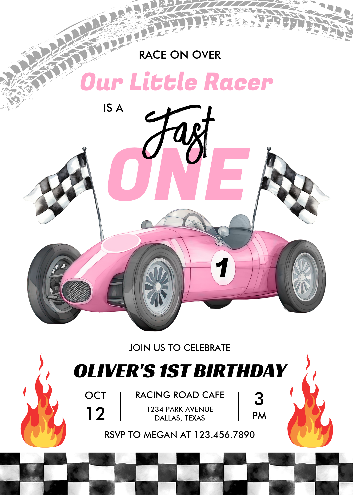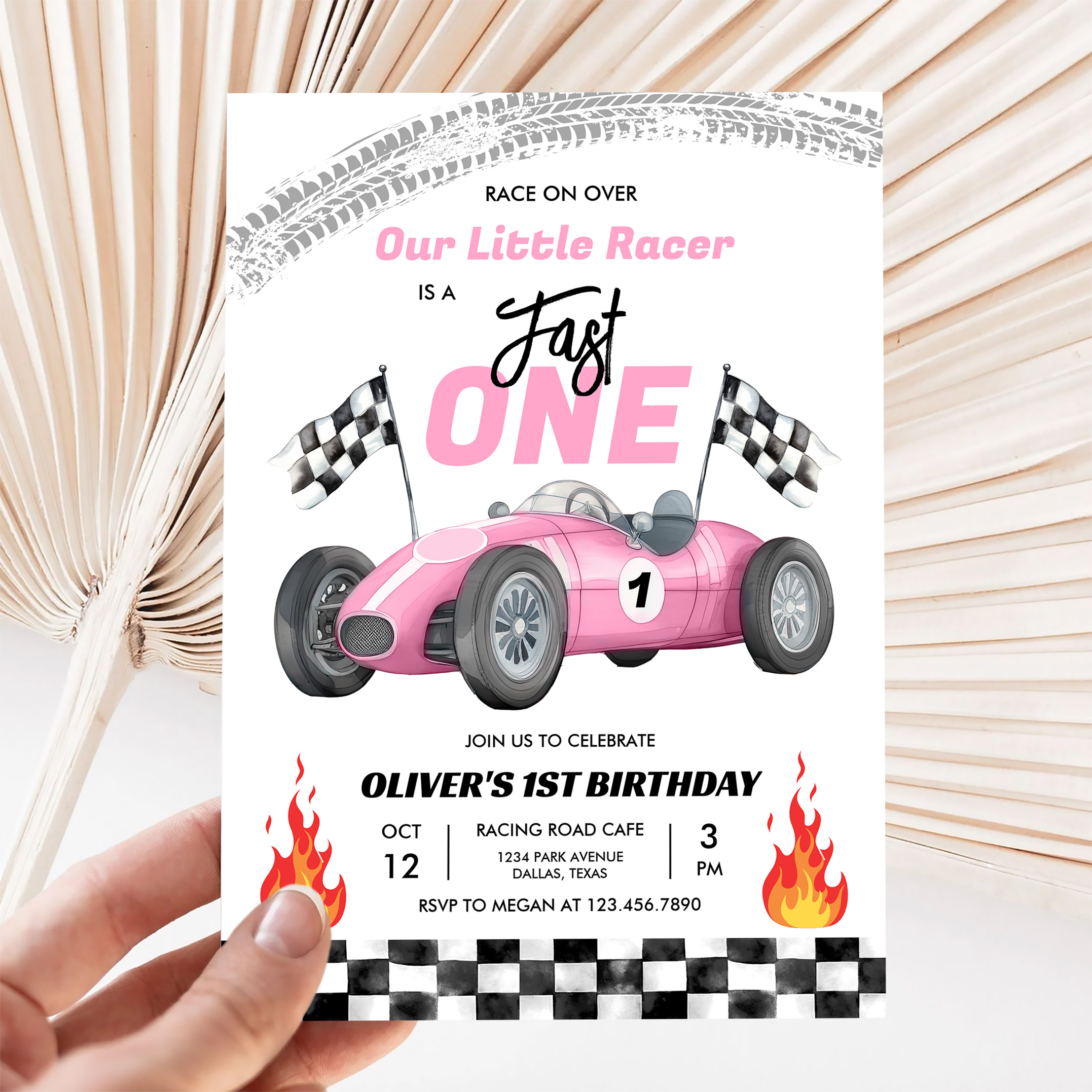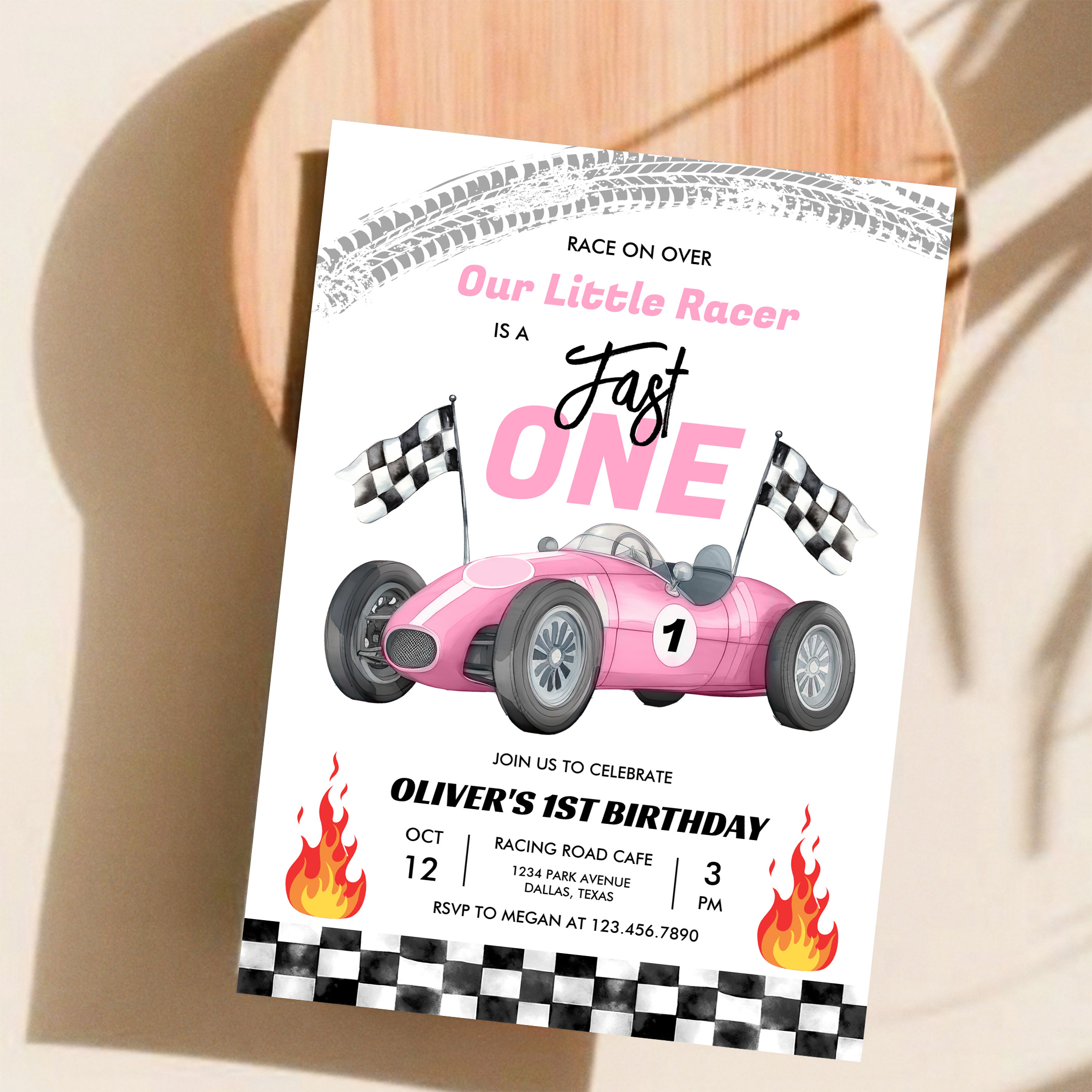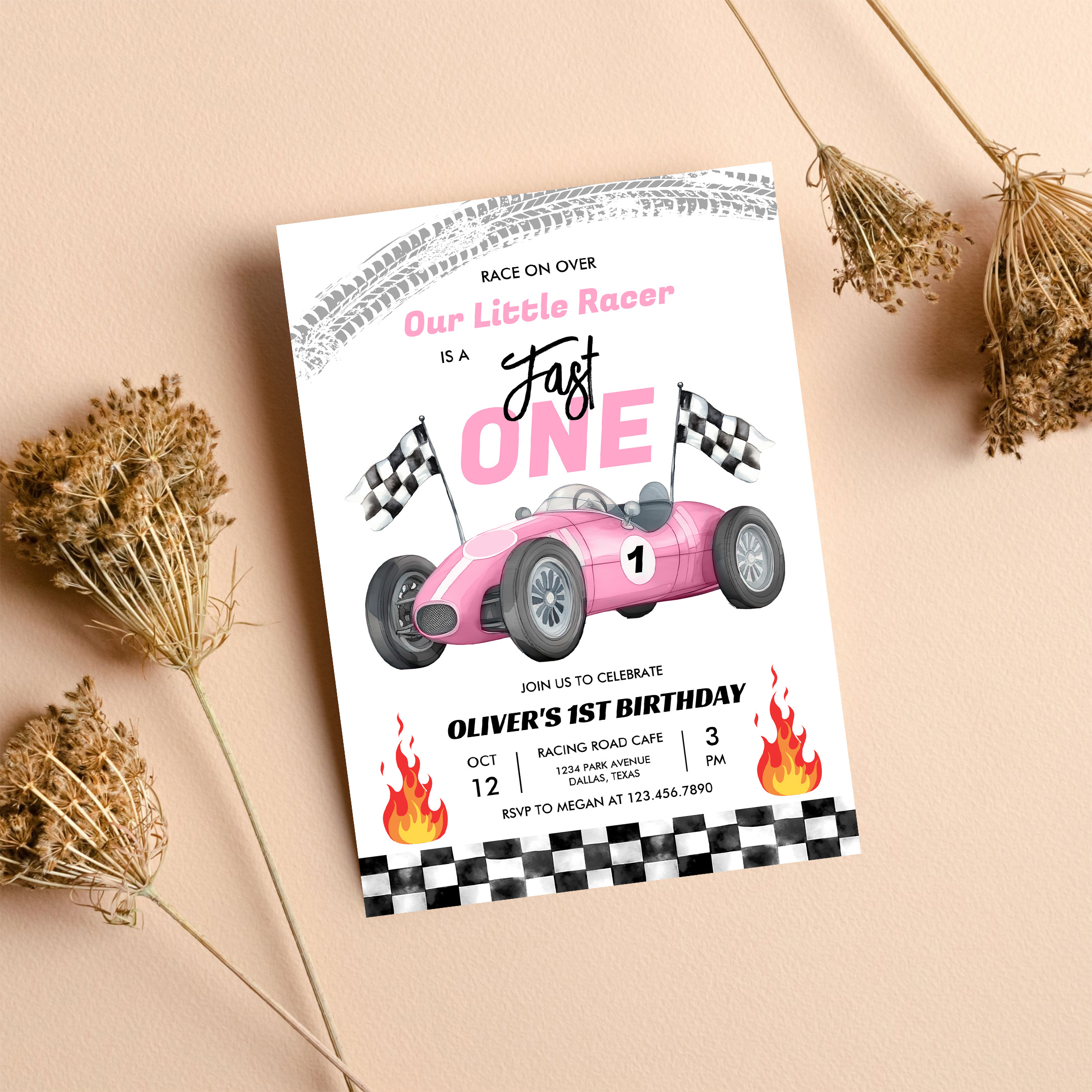 Fast One Pink Race Car 1st Birthday Racing Girl Invitation - Related products