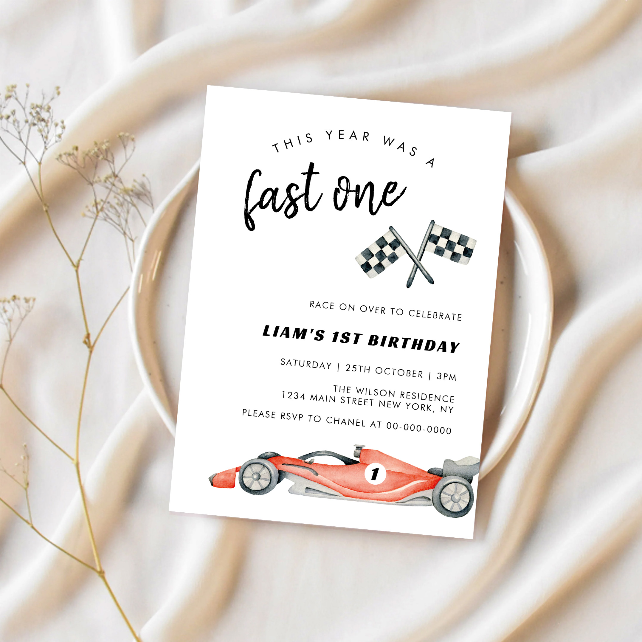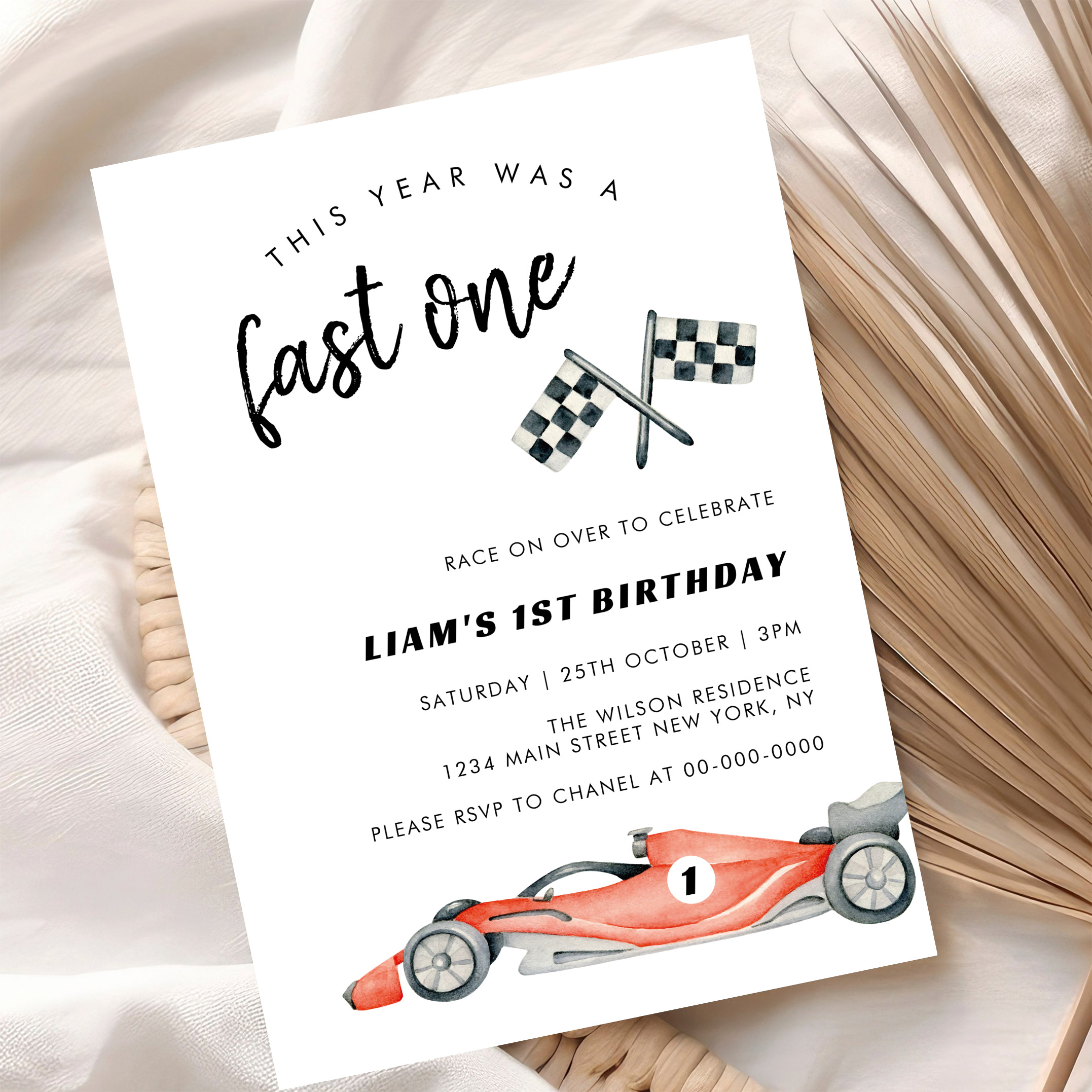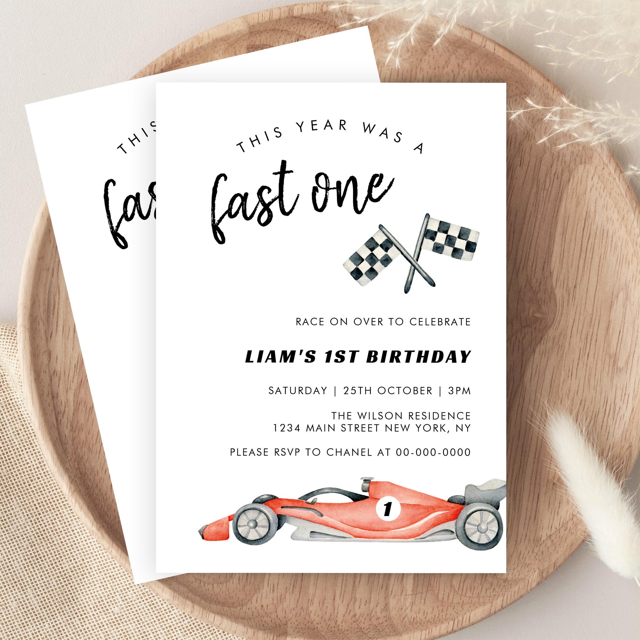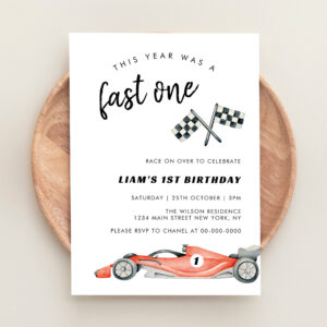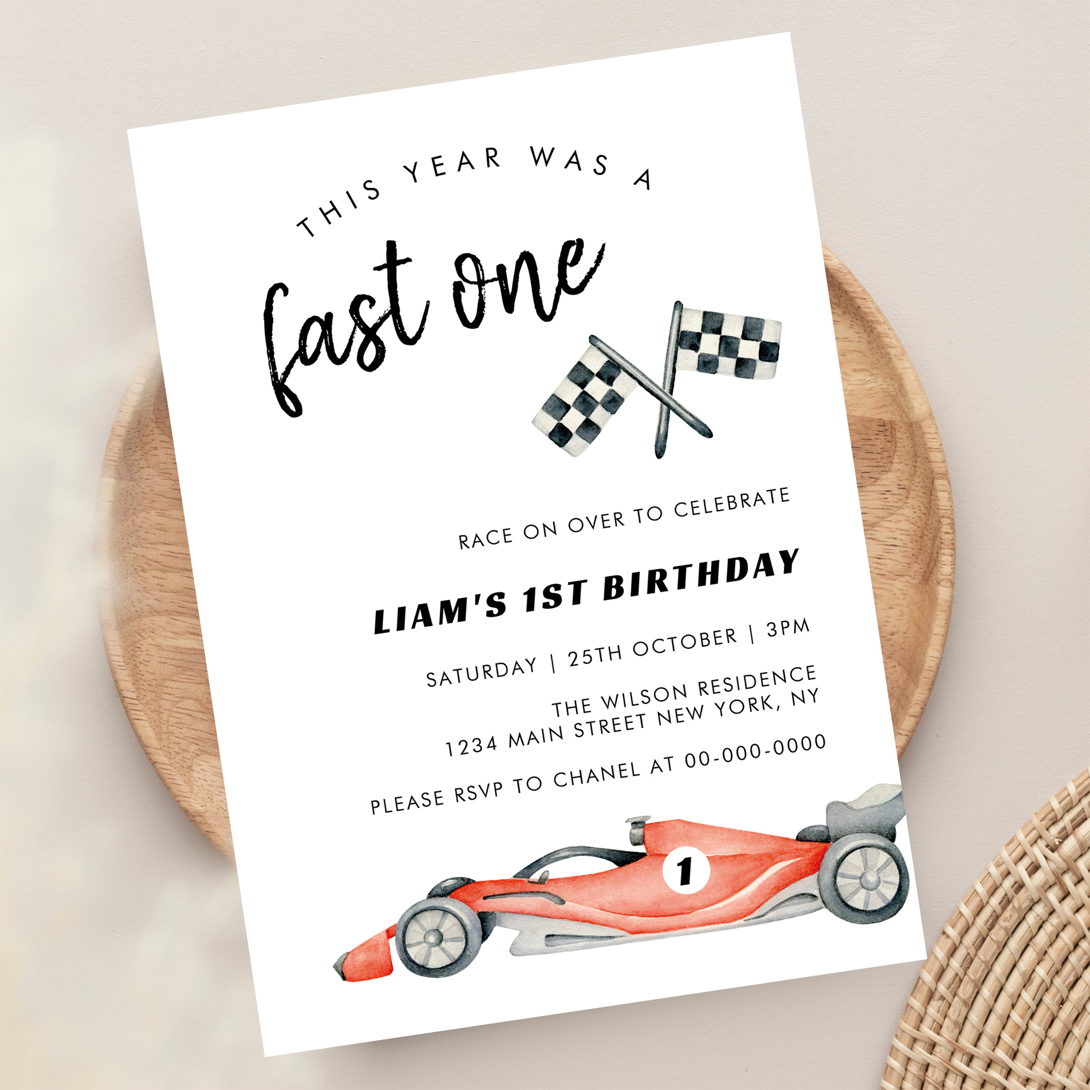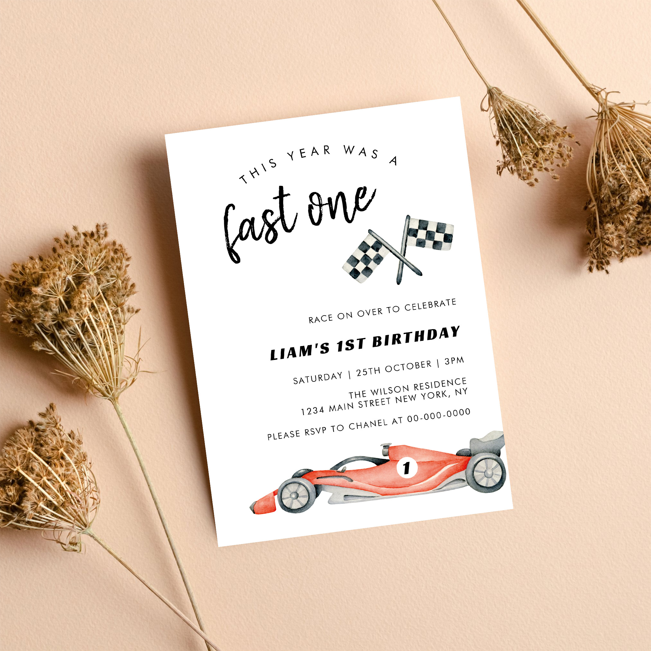 Fast One Race Car 1st First Birthday Invitation - Related products