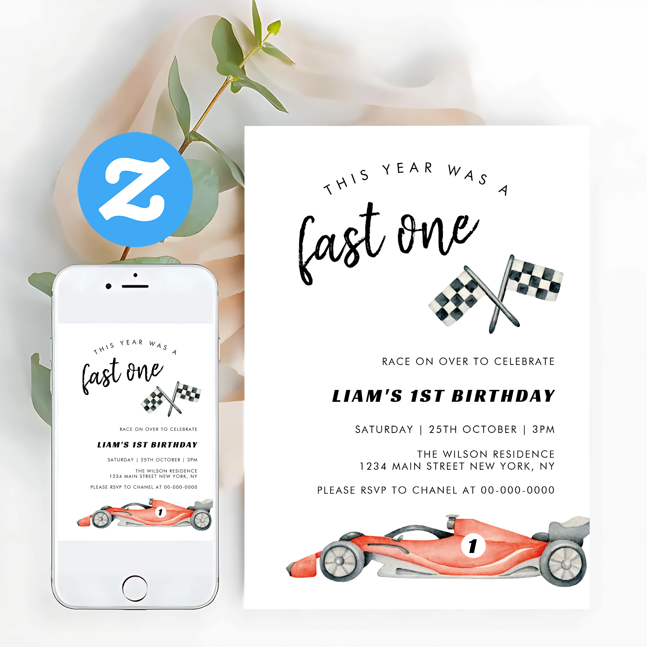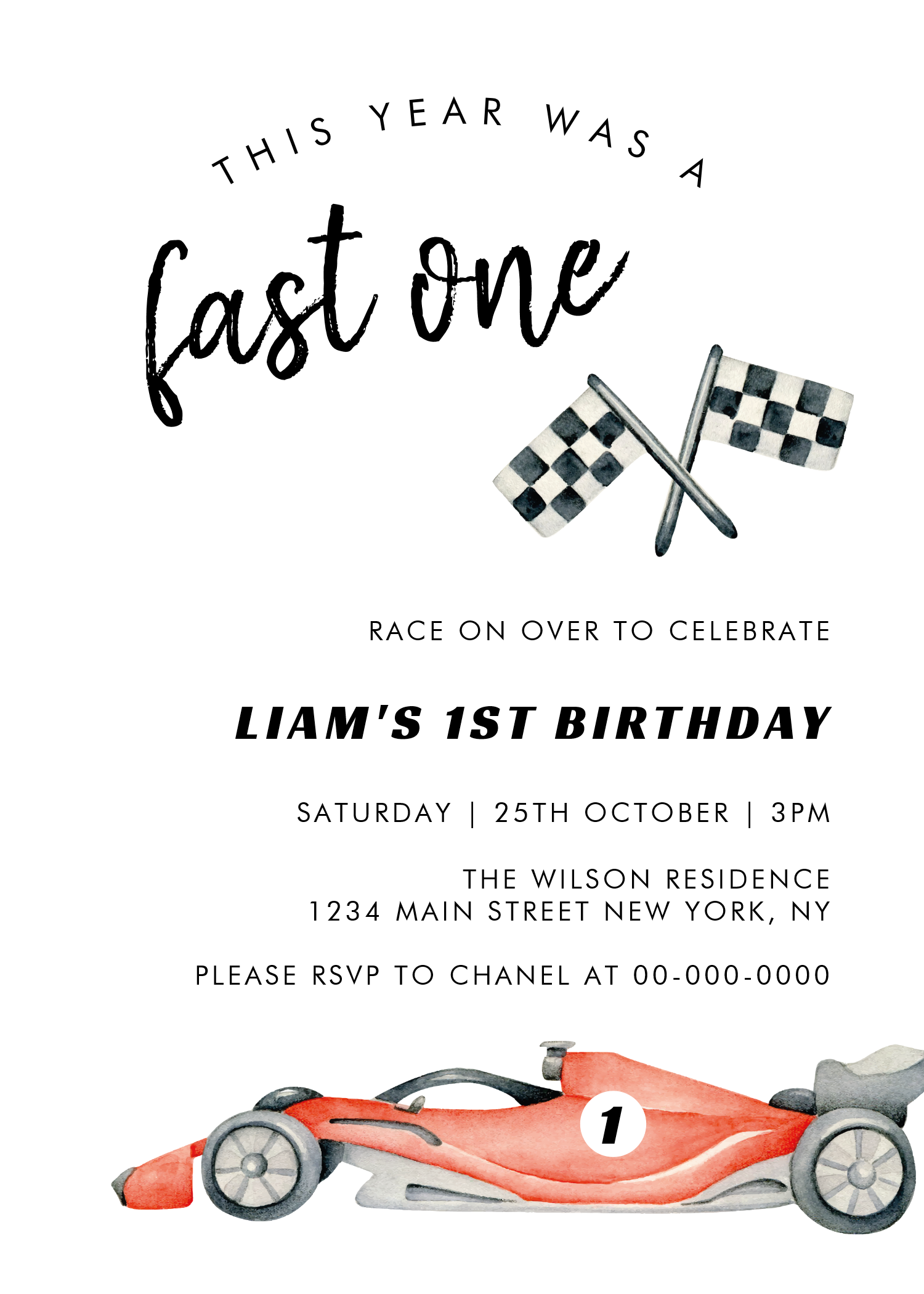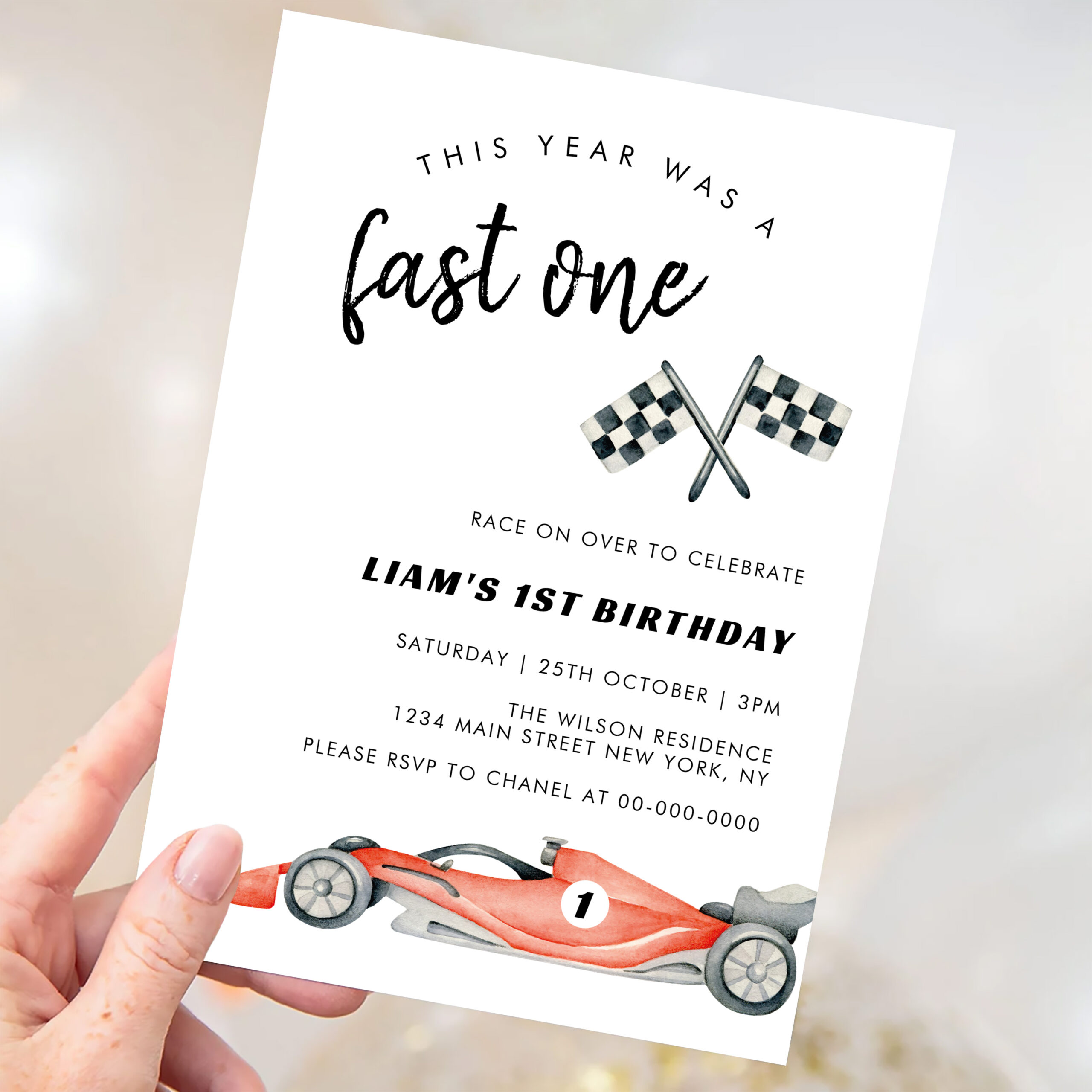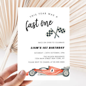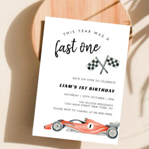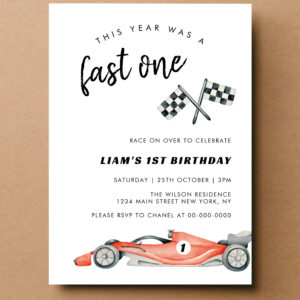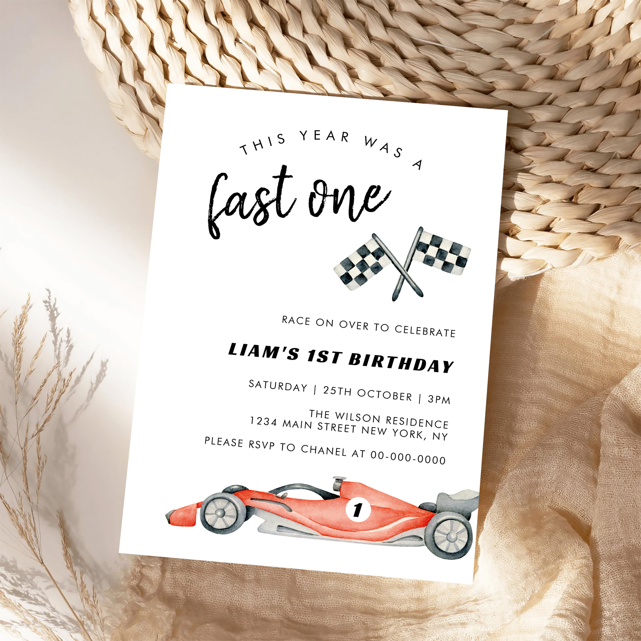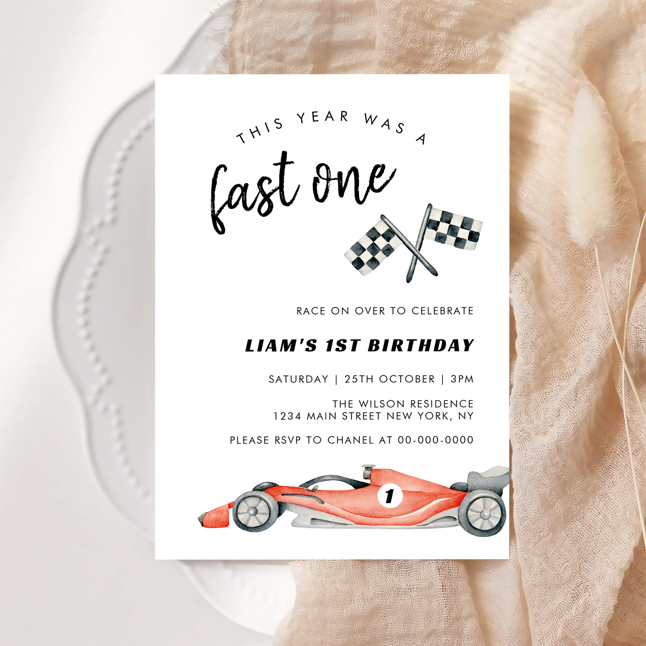 Fast One Race Car 1st First Birthday Invitation - Related products