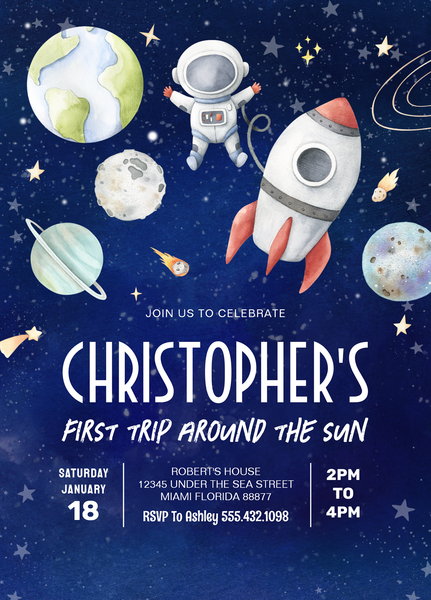 First Trip Around The Sun Outer Space Birthday Invitation