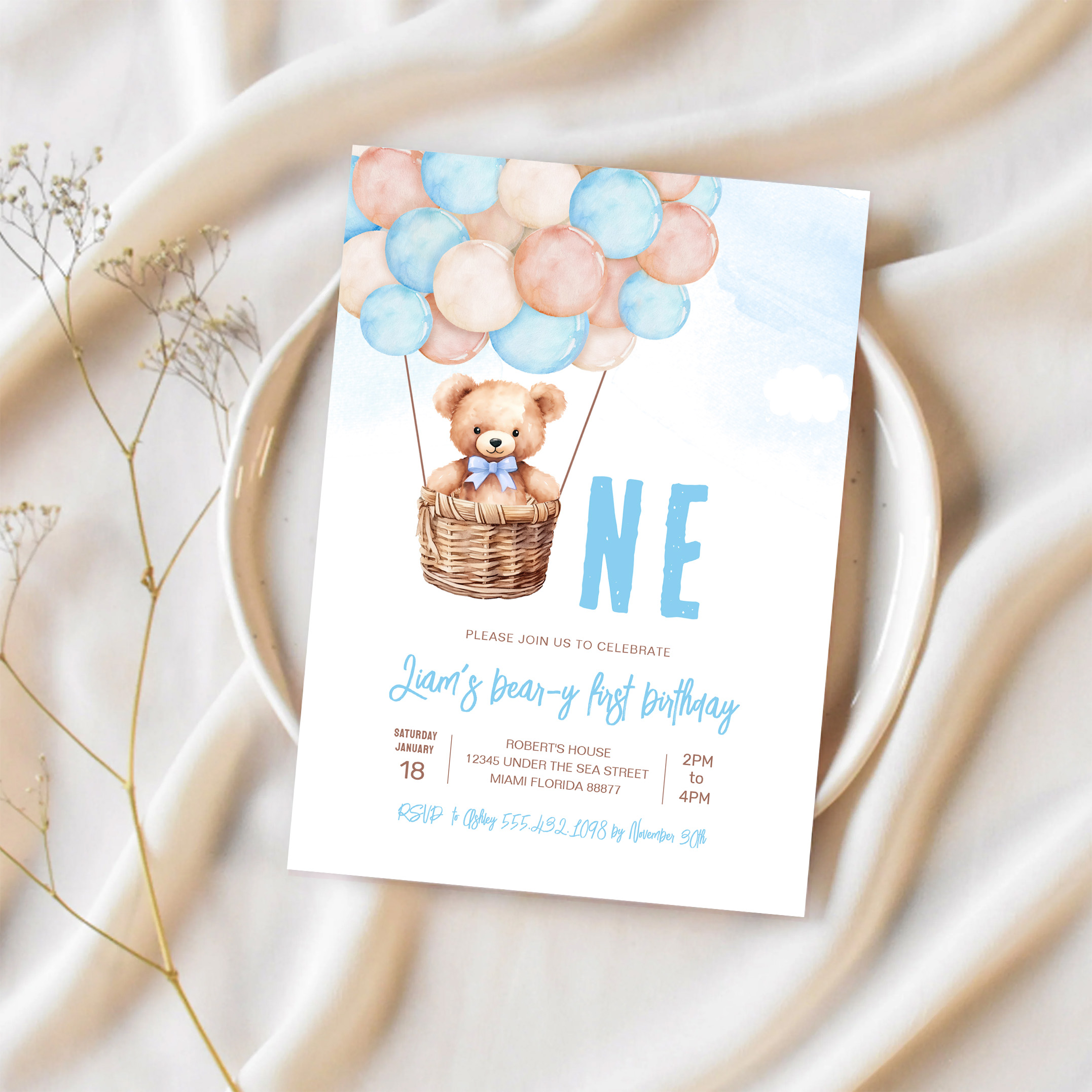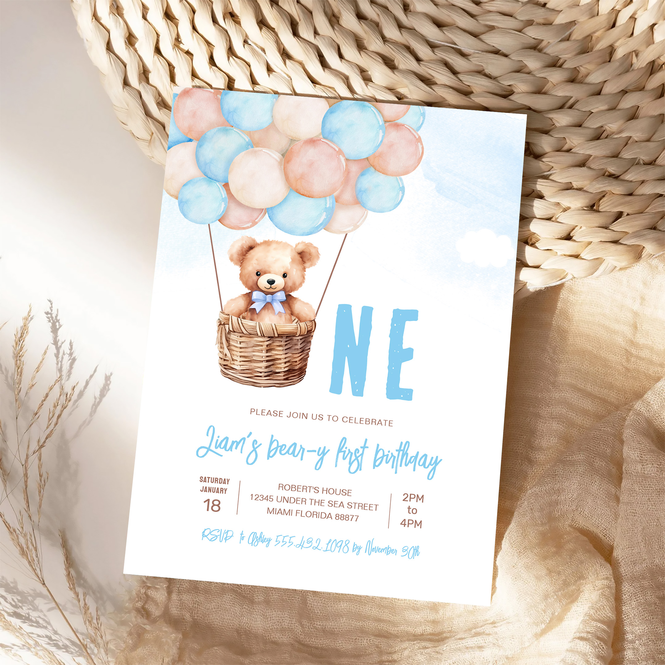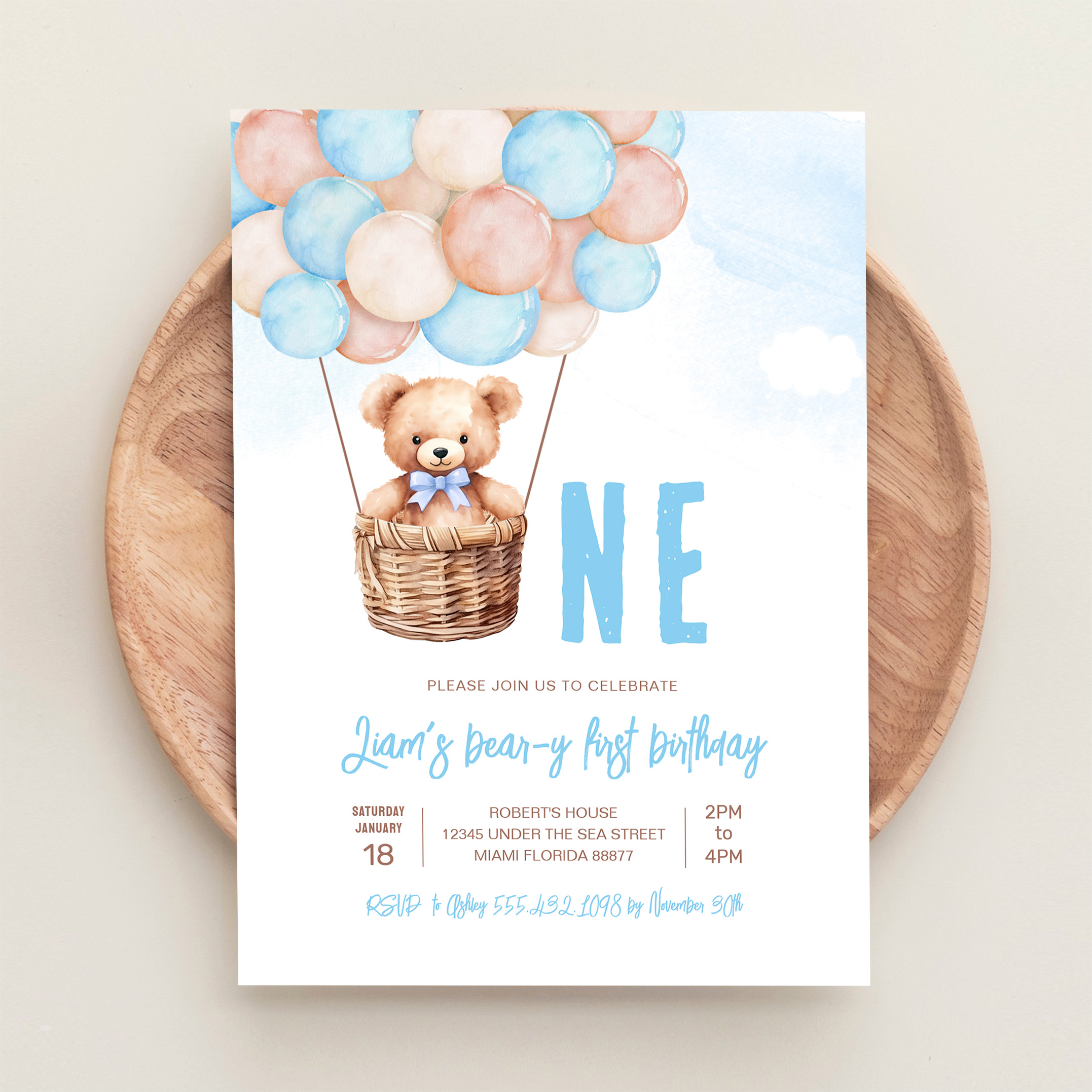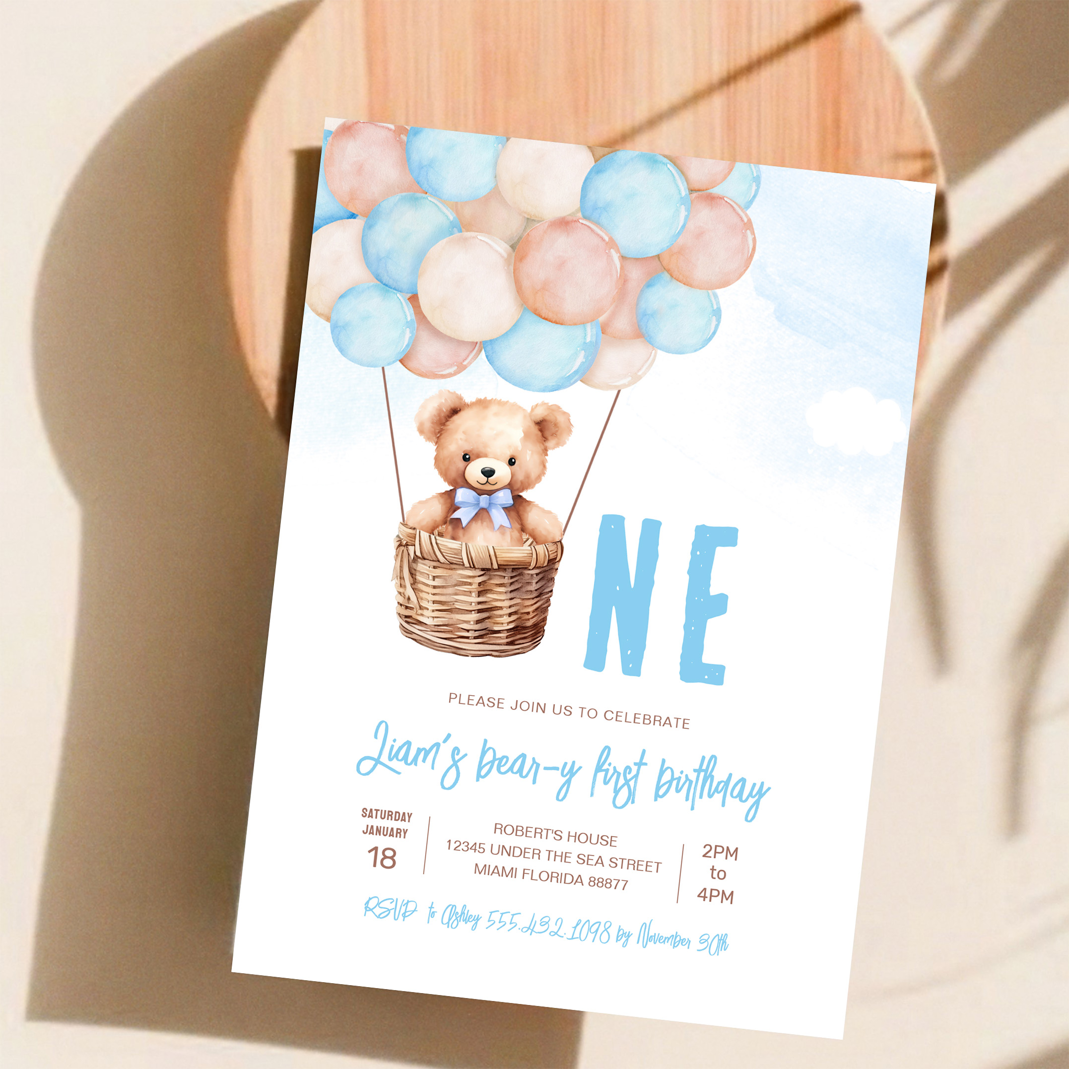 First Teddy Bear Boy Boho 1st Birthday Invitation