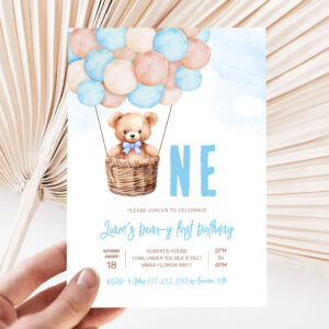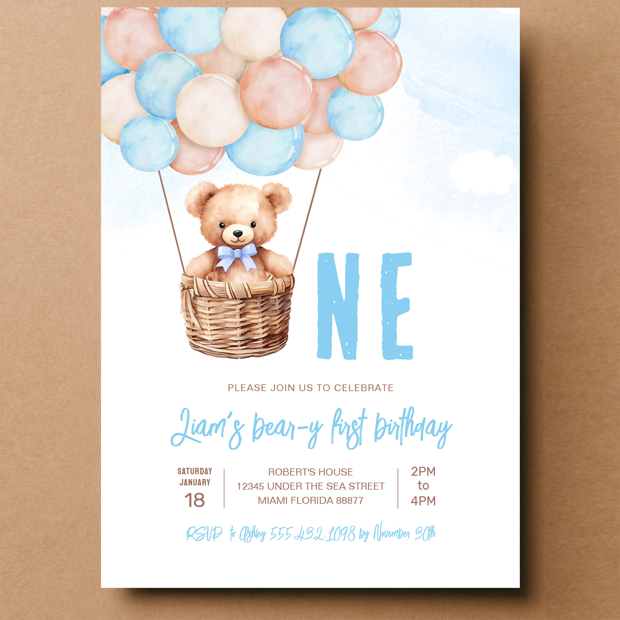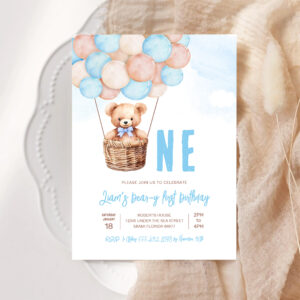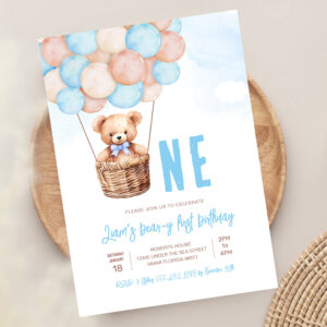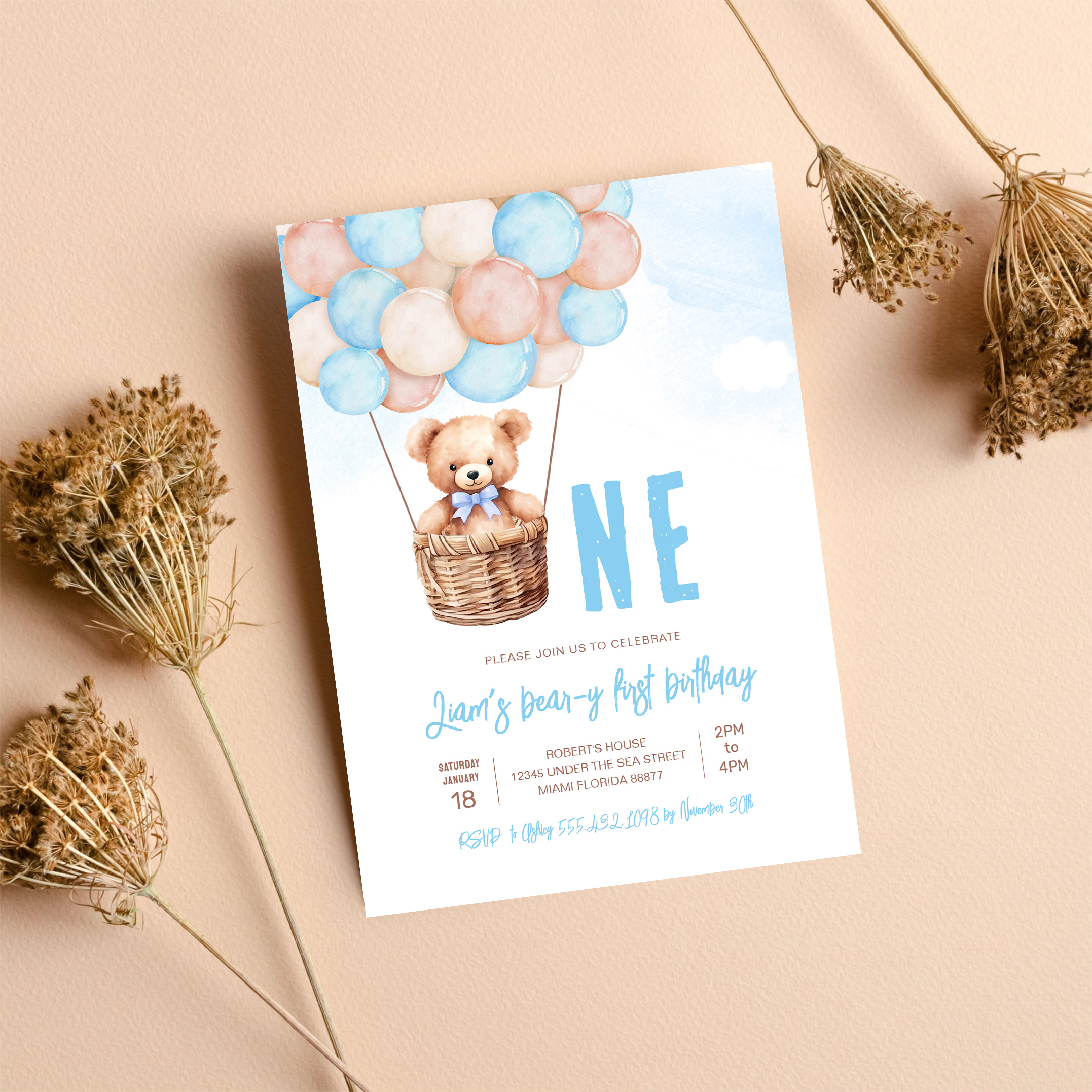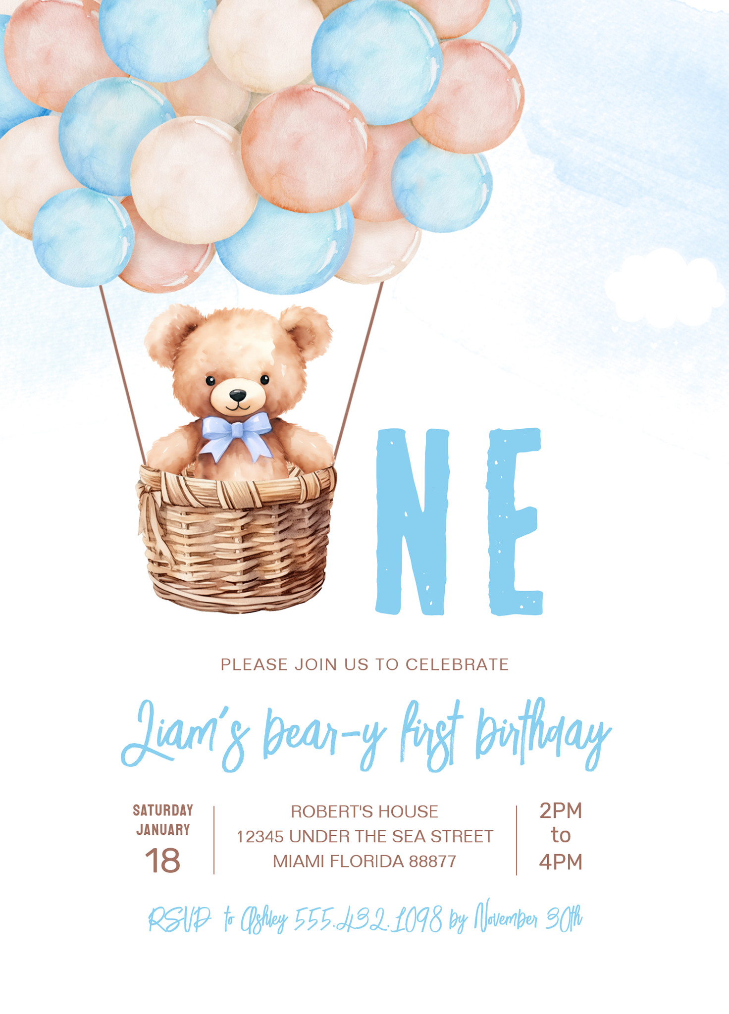 First Teddy Bear Boy Boho 1st Birthday Invitation