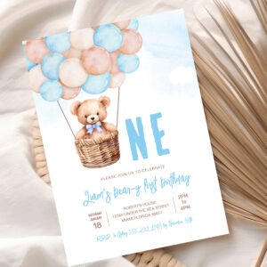 First Teddy Bear Boy Boho 1st Birthday Invitation - Related products