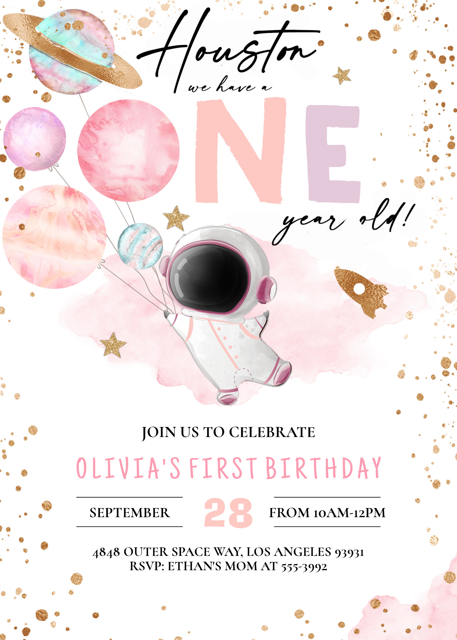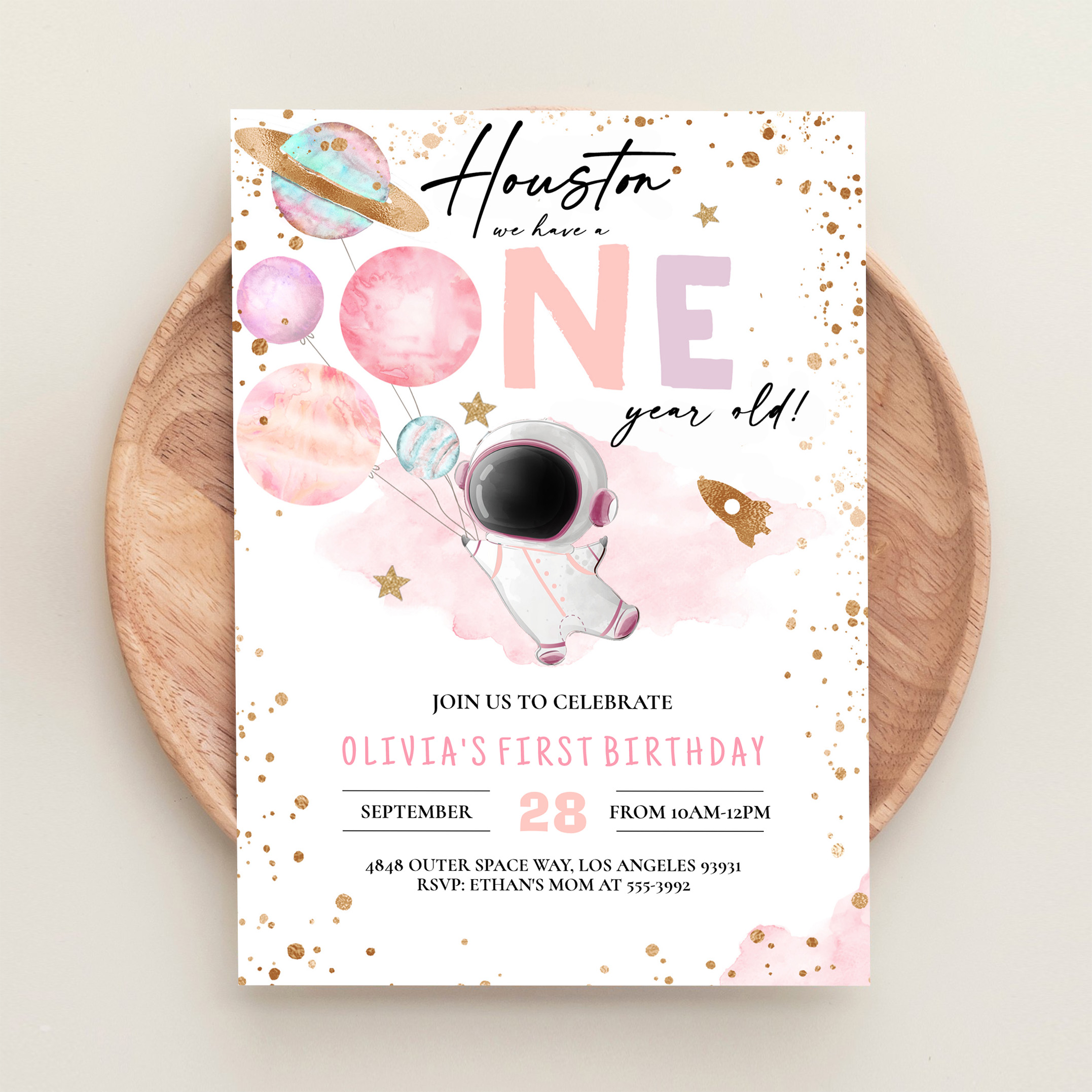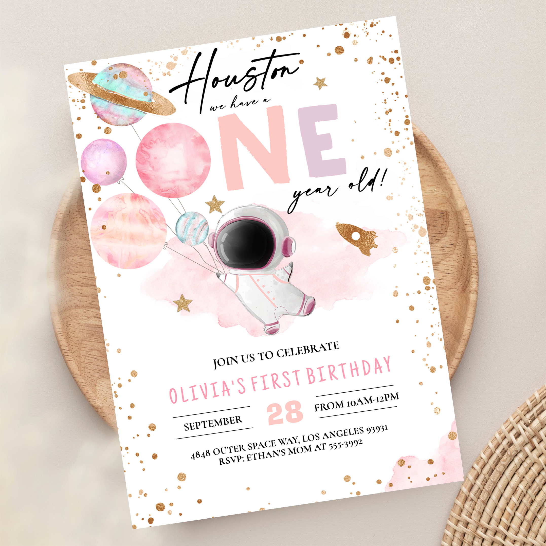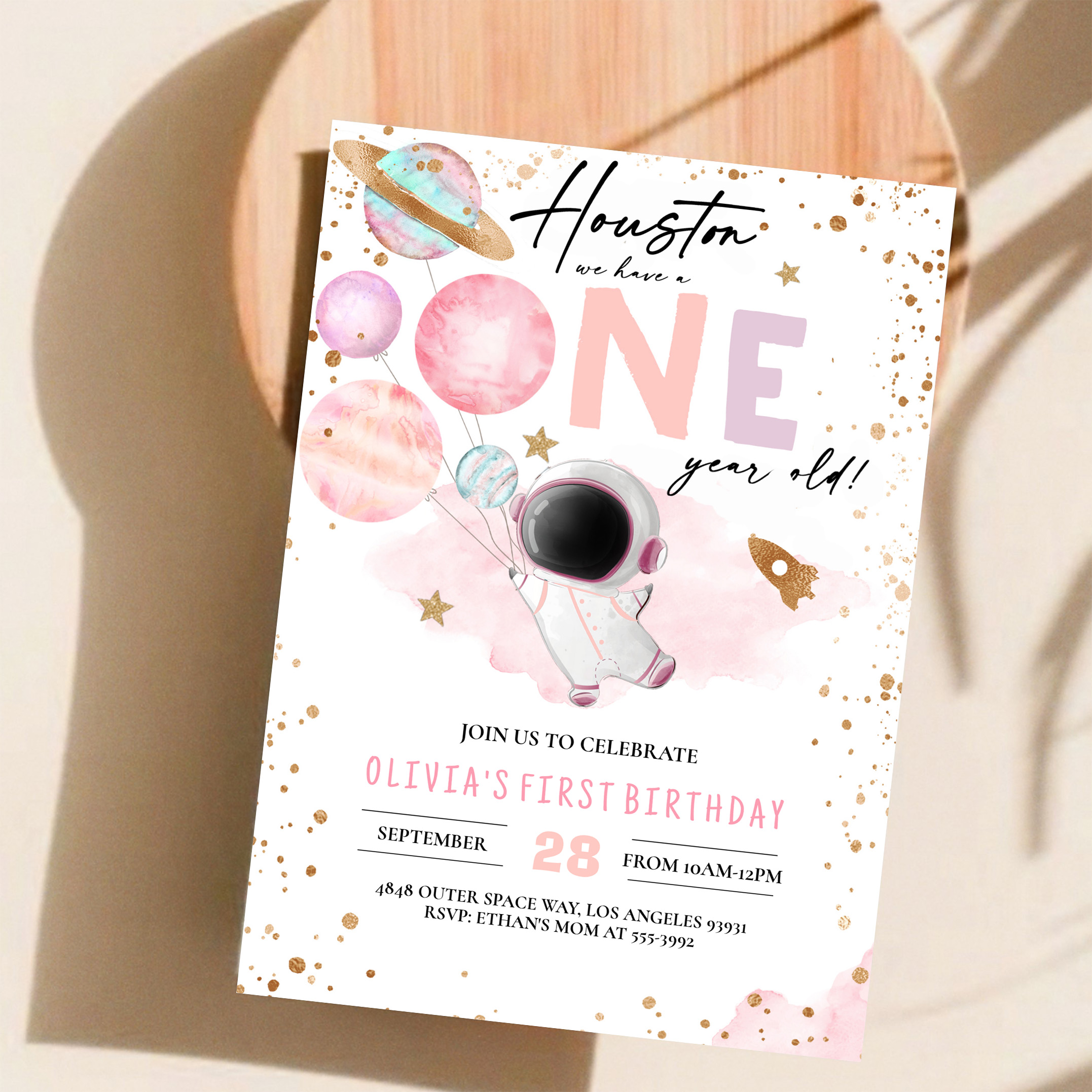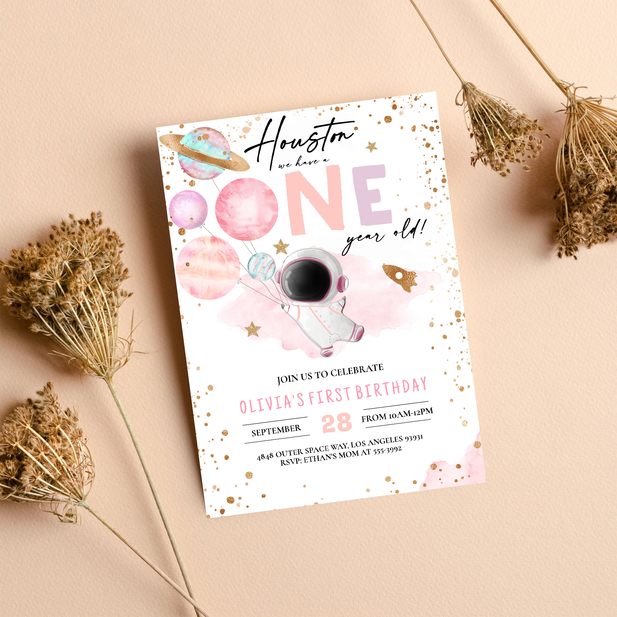 First Trip Around The Sun Girl Space Birthday Invitation - Related products