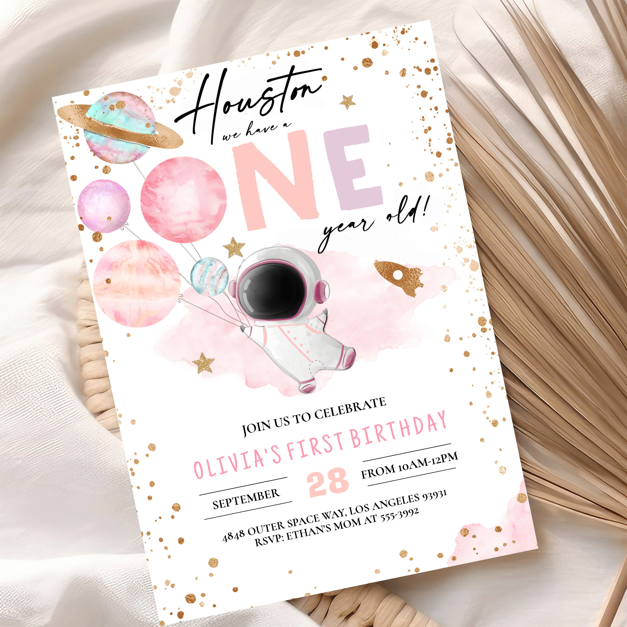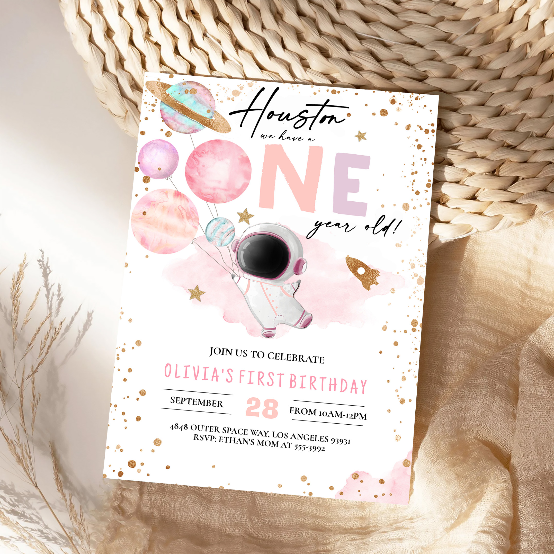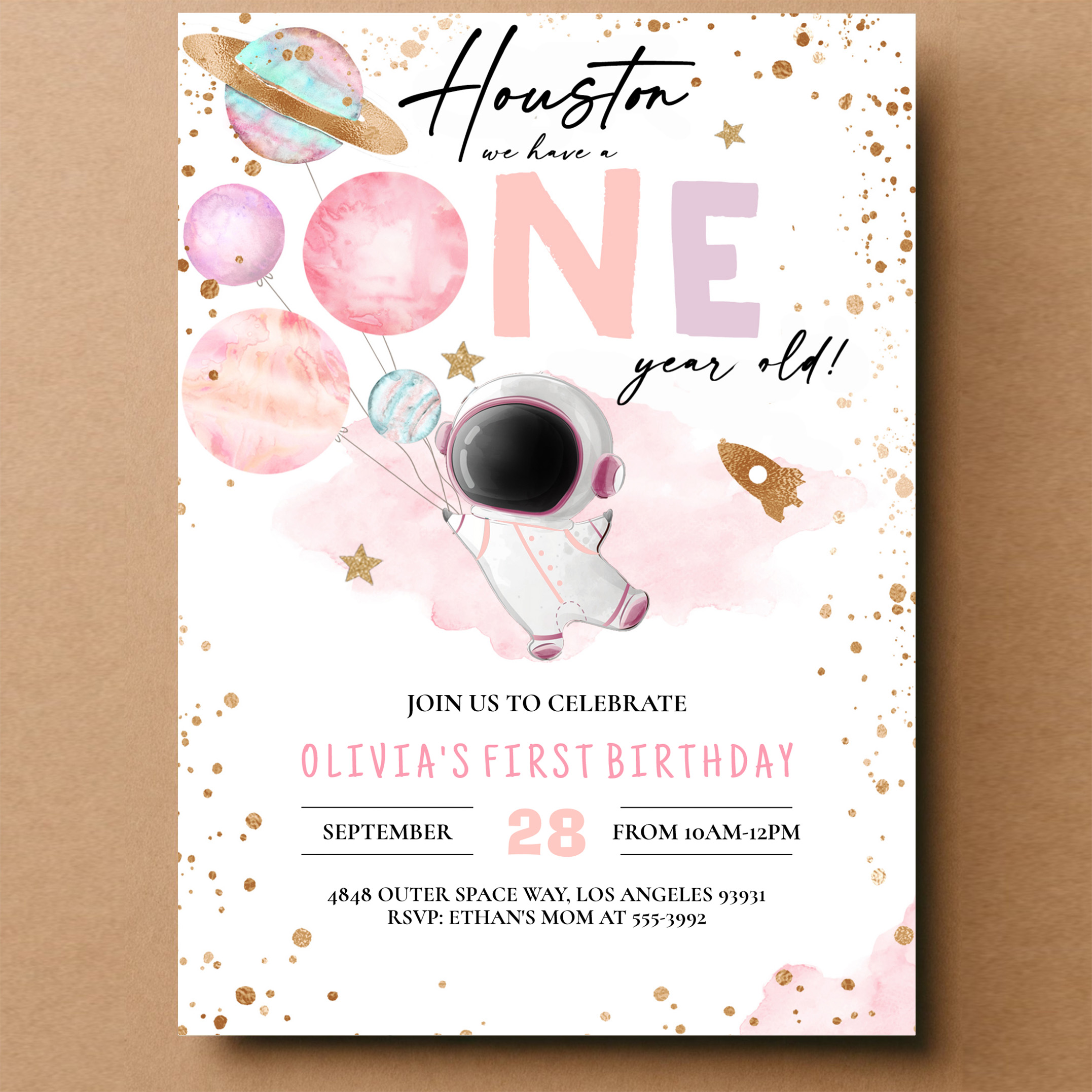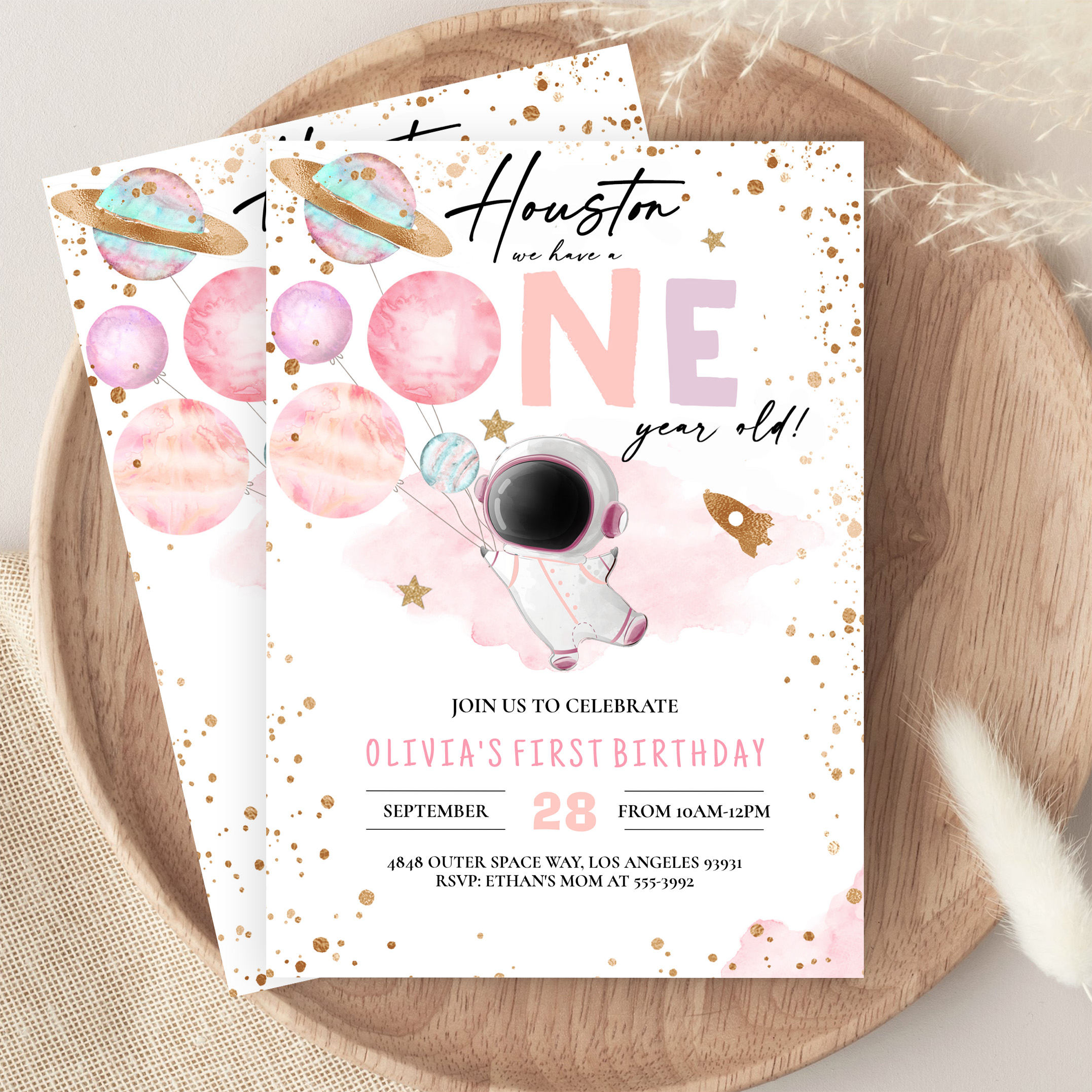 First Trip Around The Sun Girl Space Birthday Invitation - Related products