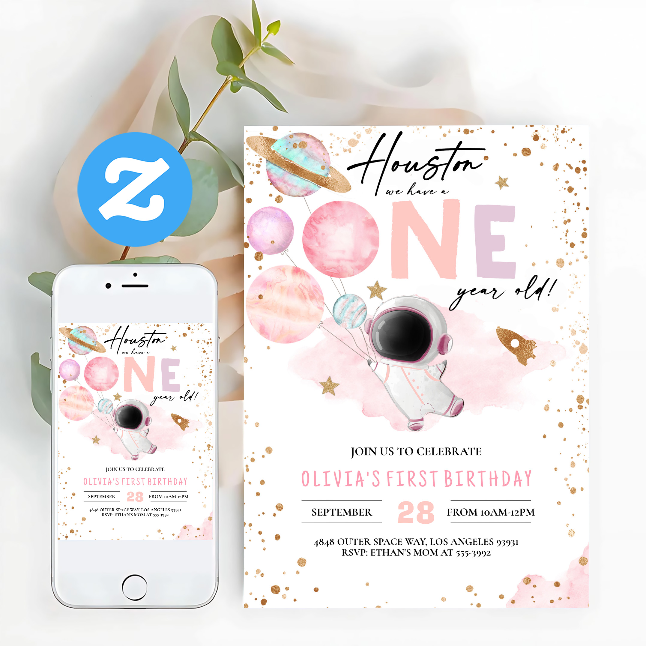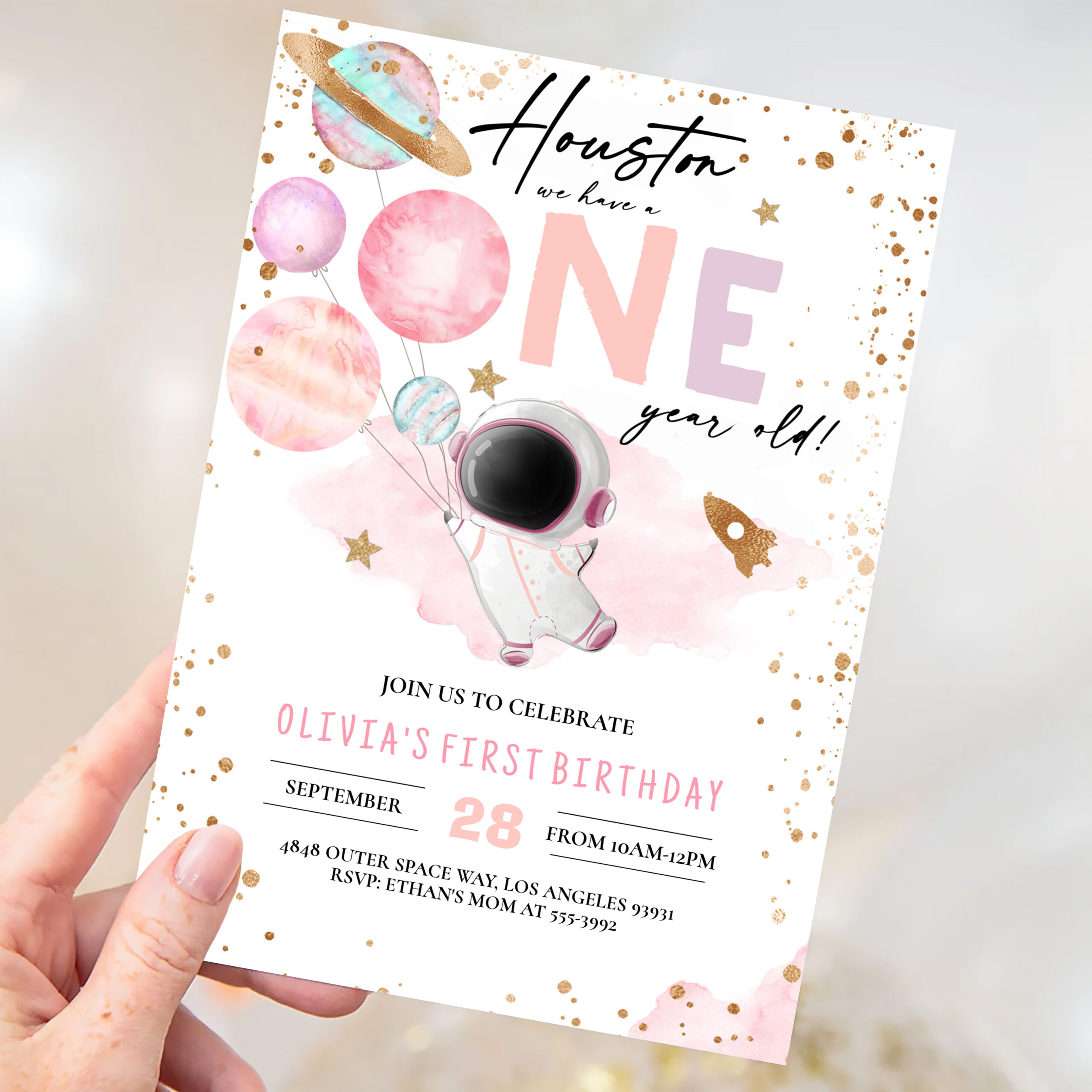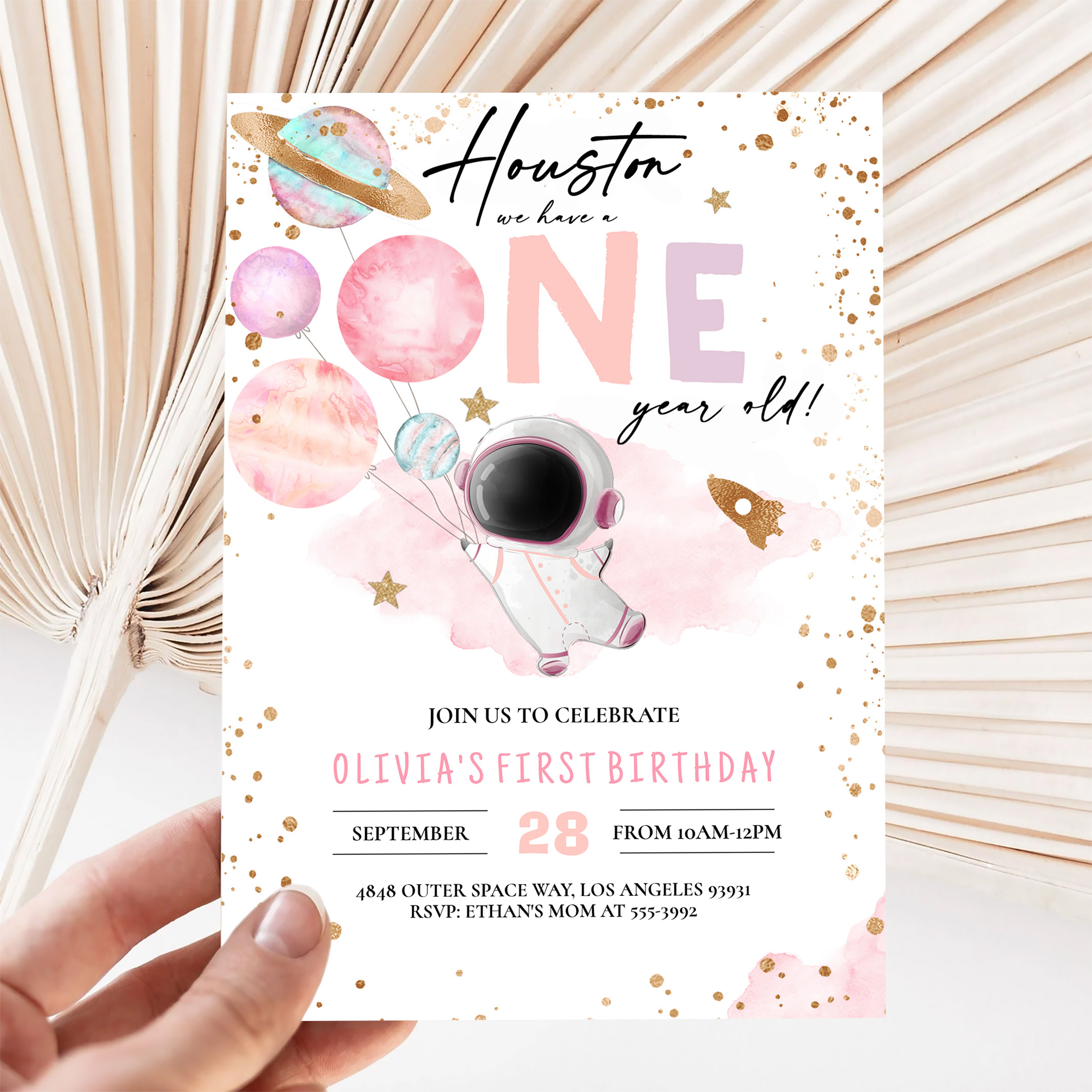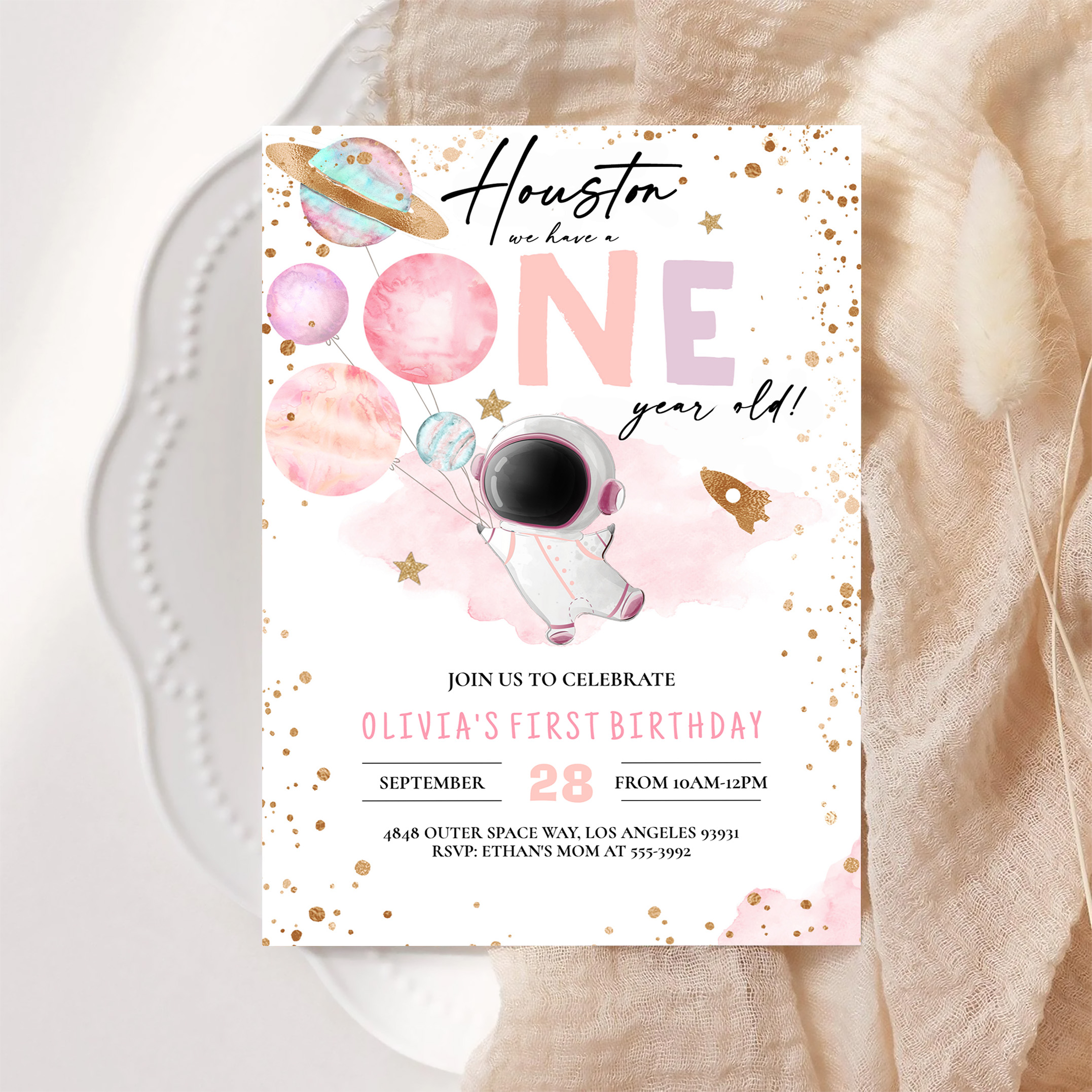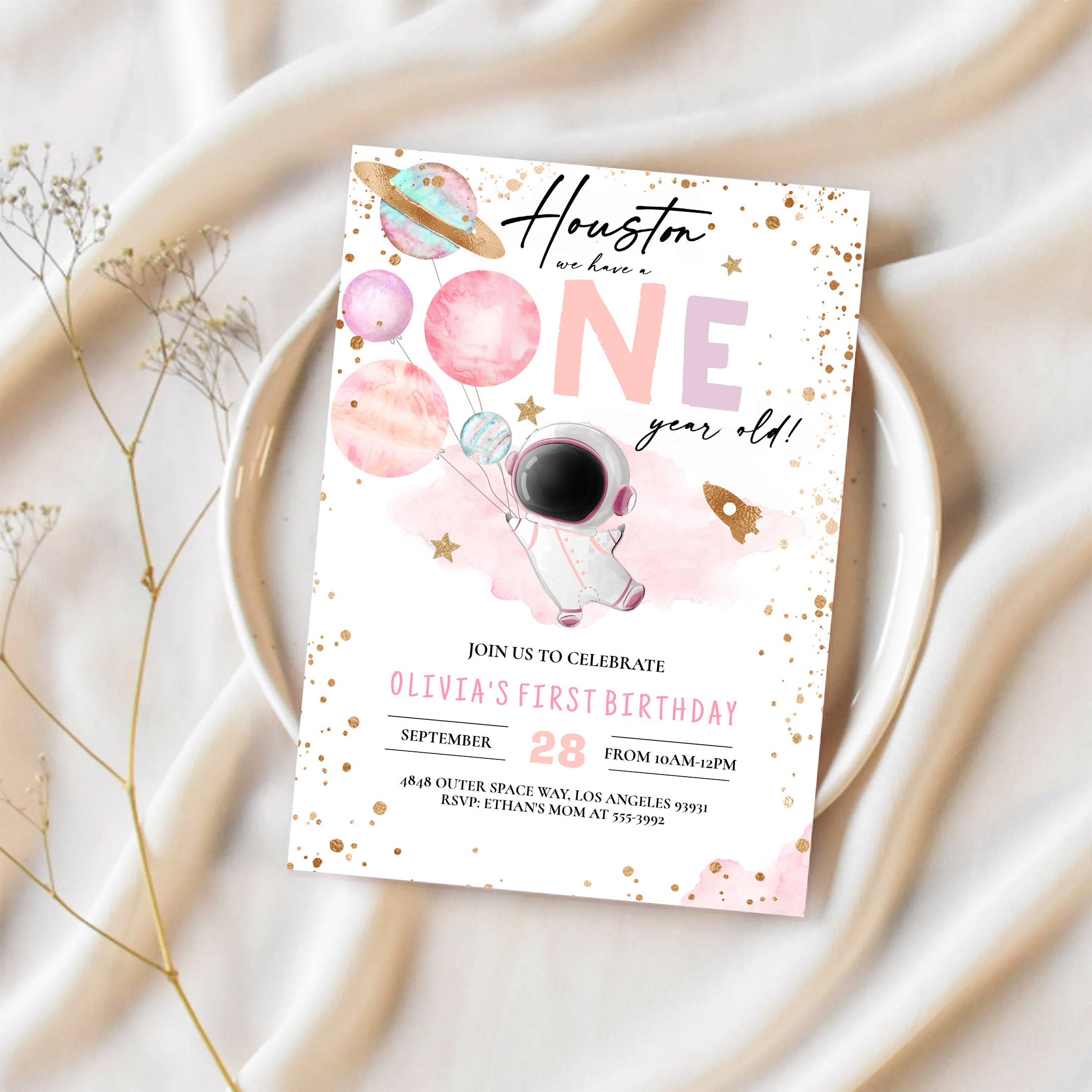 First Trip Around The Sun Girl Space Birthday Invitation - Related products