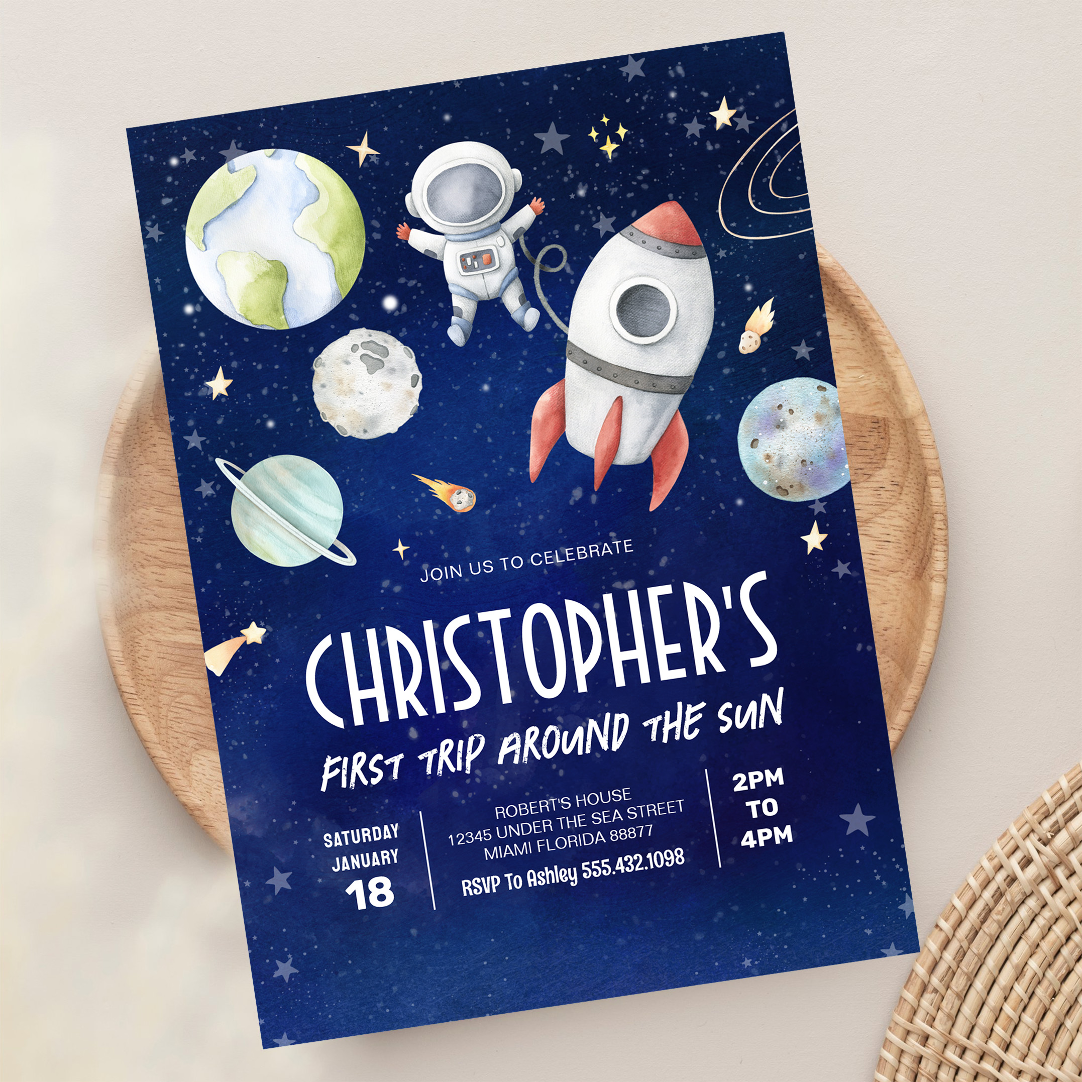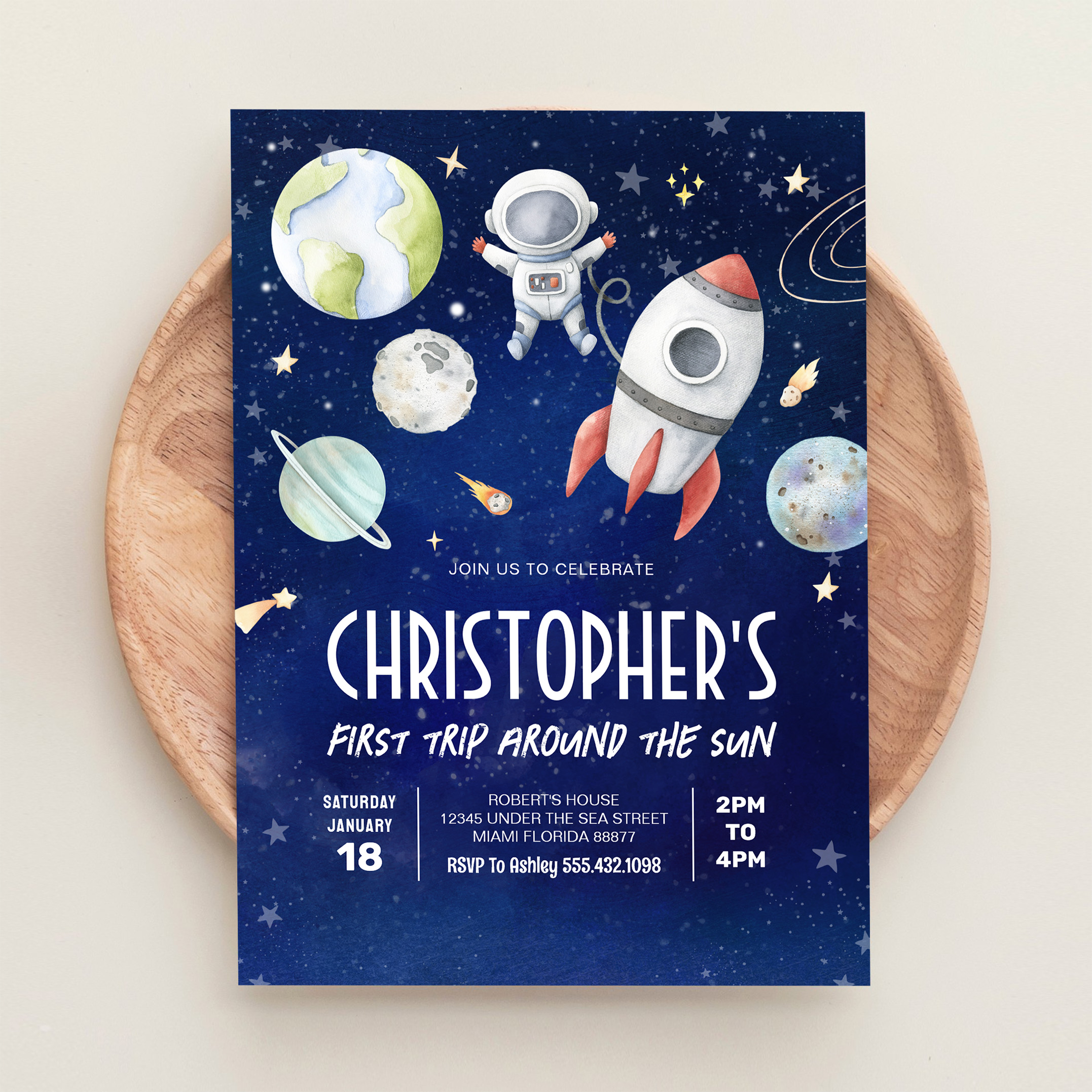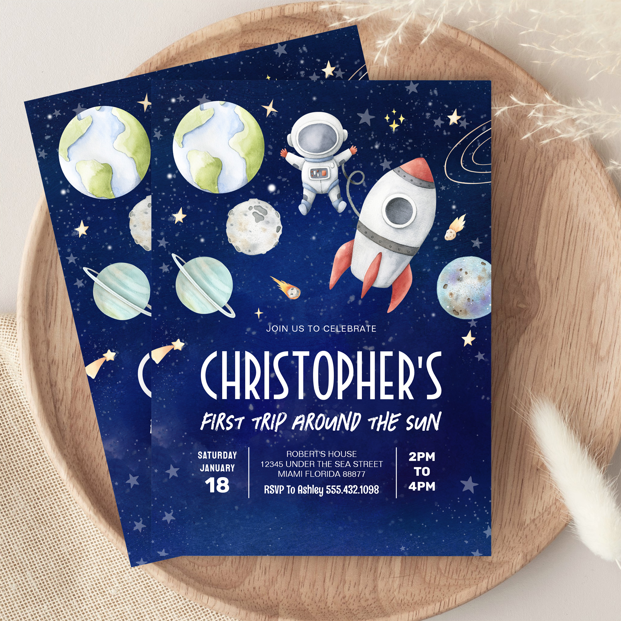First Trip Around The Sun Outer Space Birthday Invitation - Related products