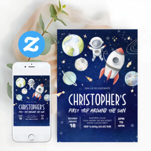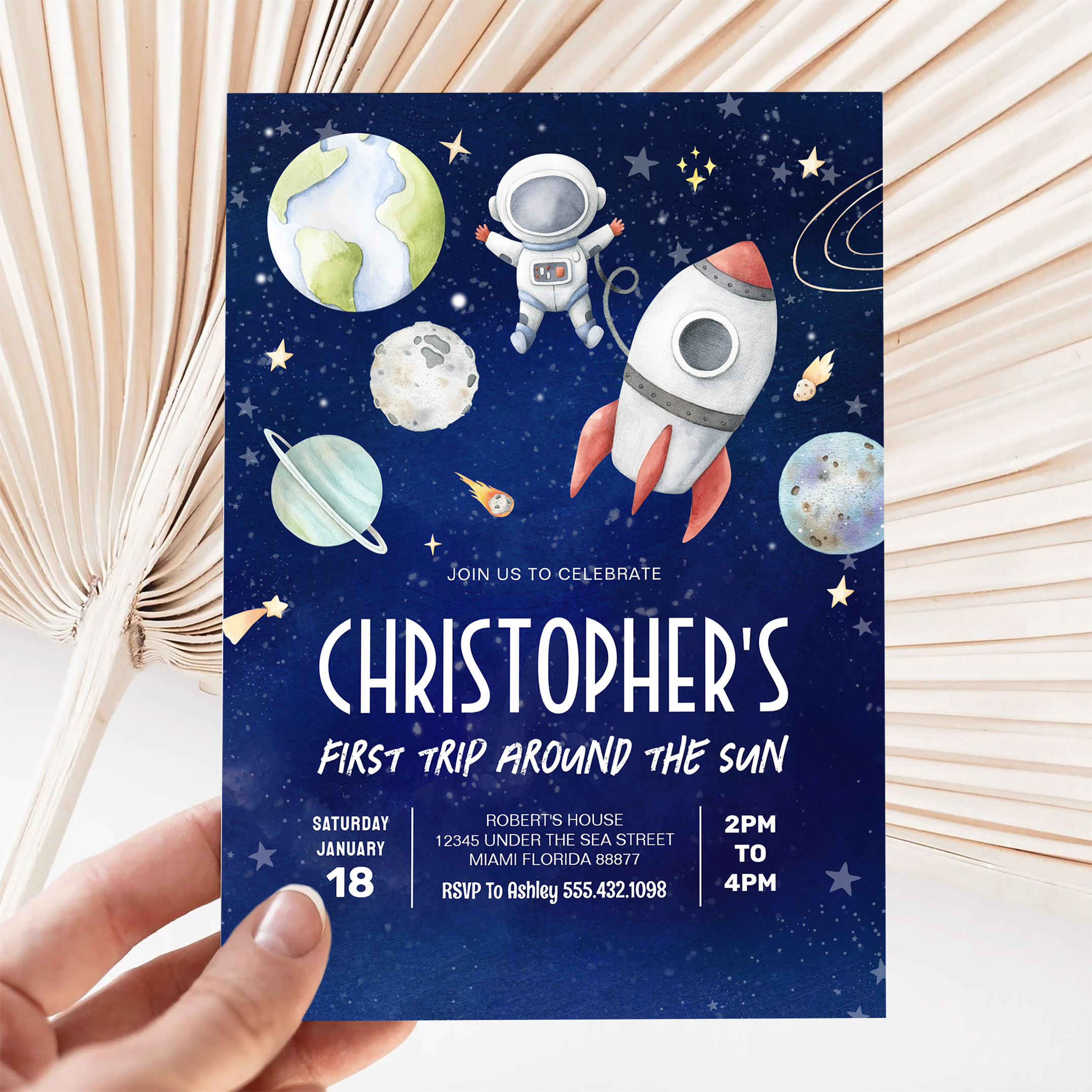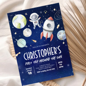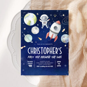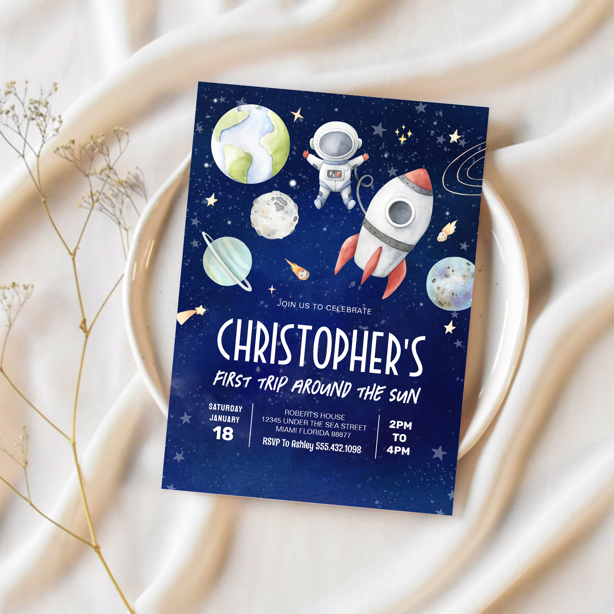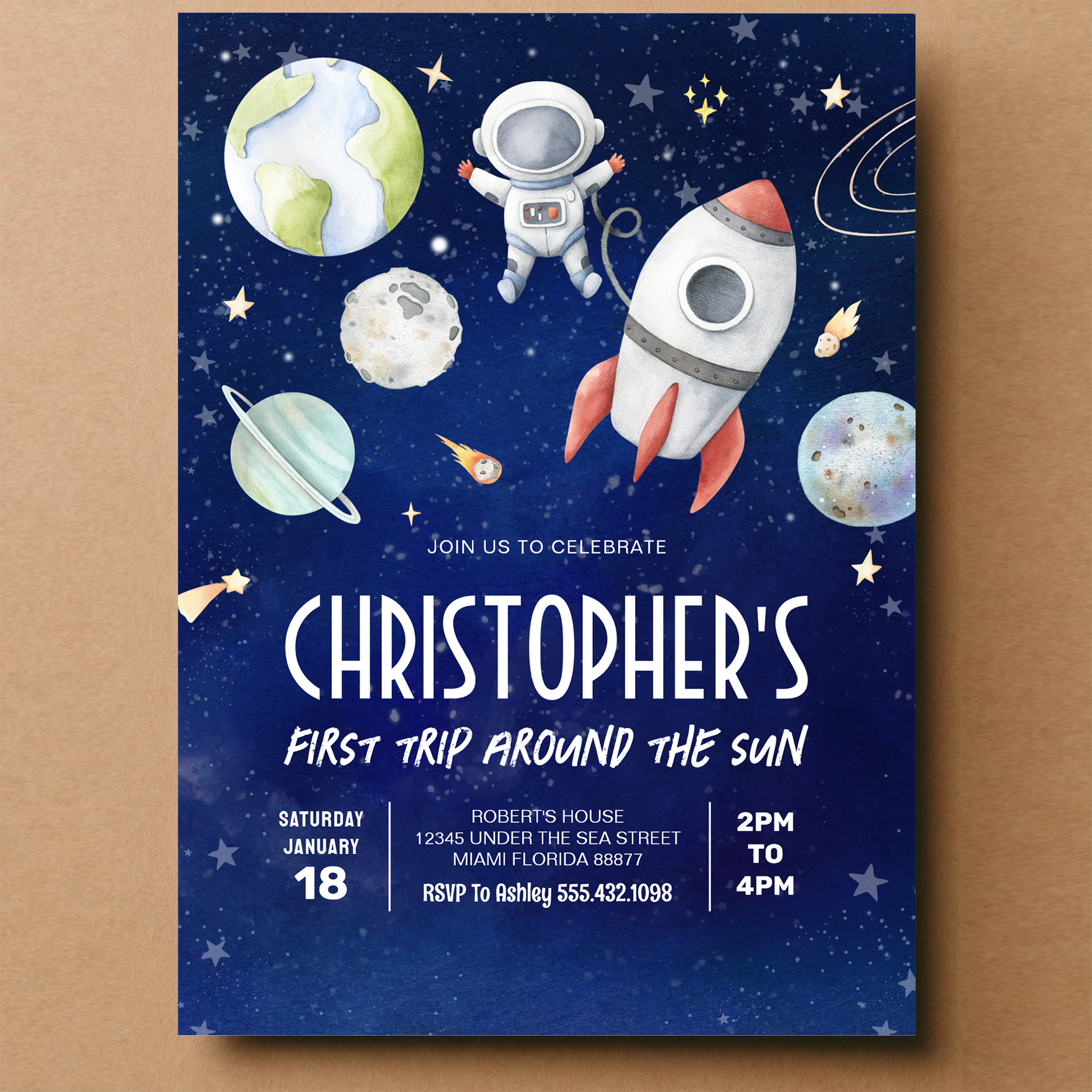 First Trip Around The Sun Outer Space Birthday Invitation - Related products