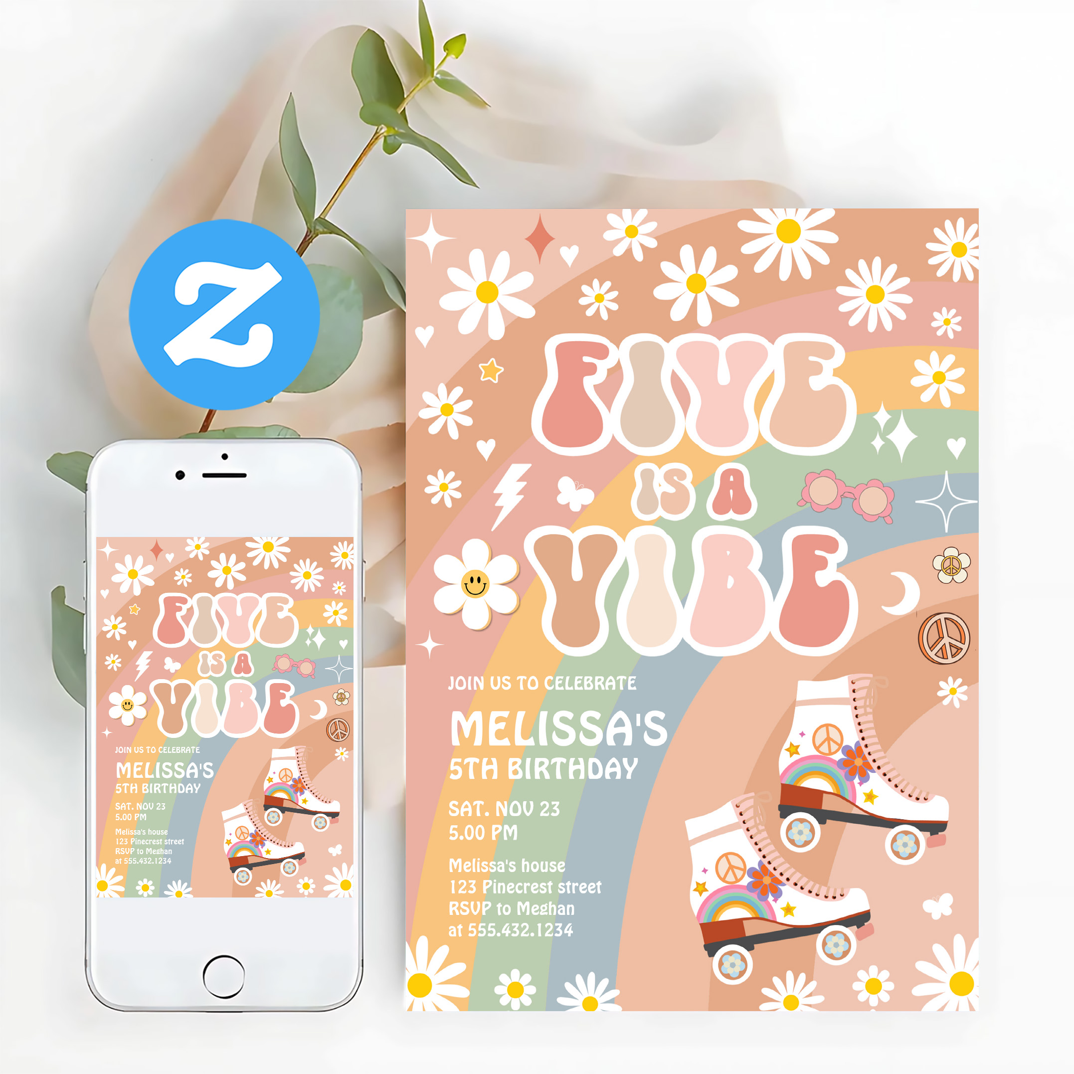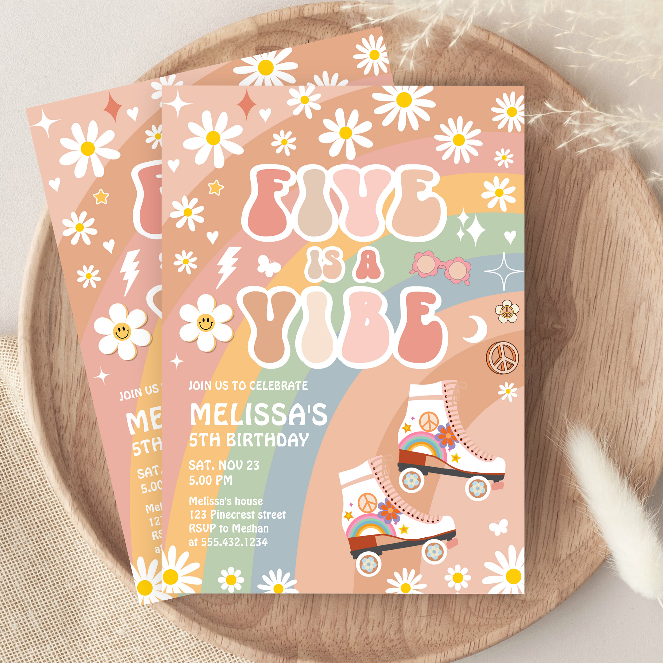 Five Is A Vibe Groovy Roller Skate 5th Birthday Invitation - Related products