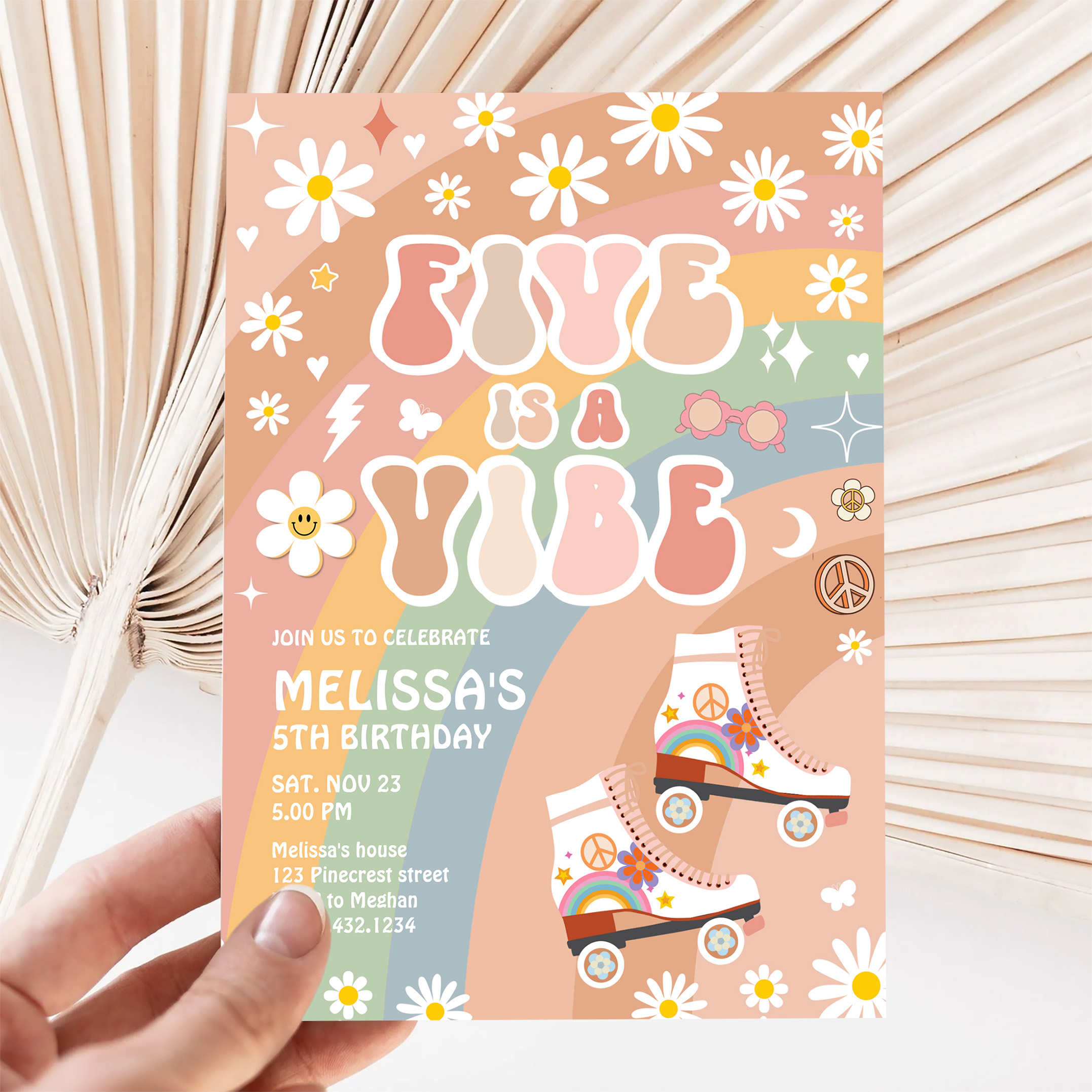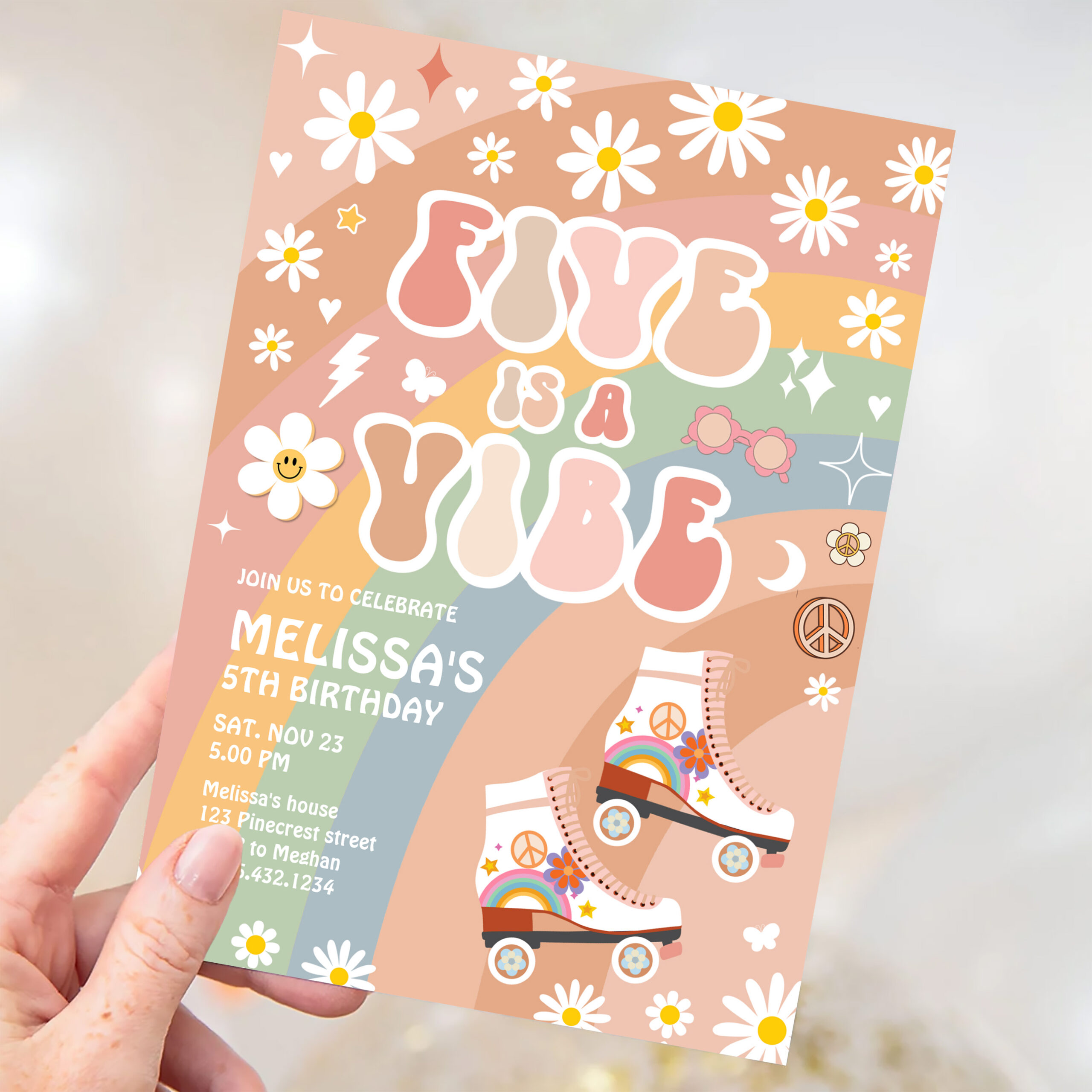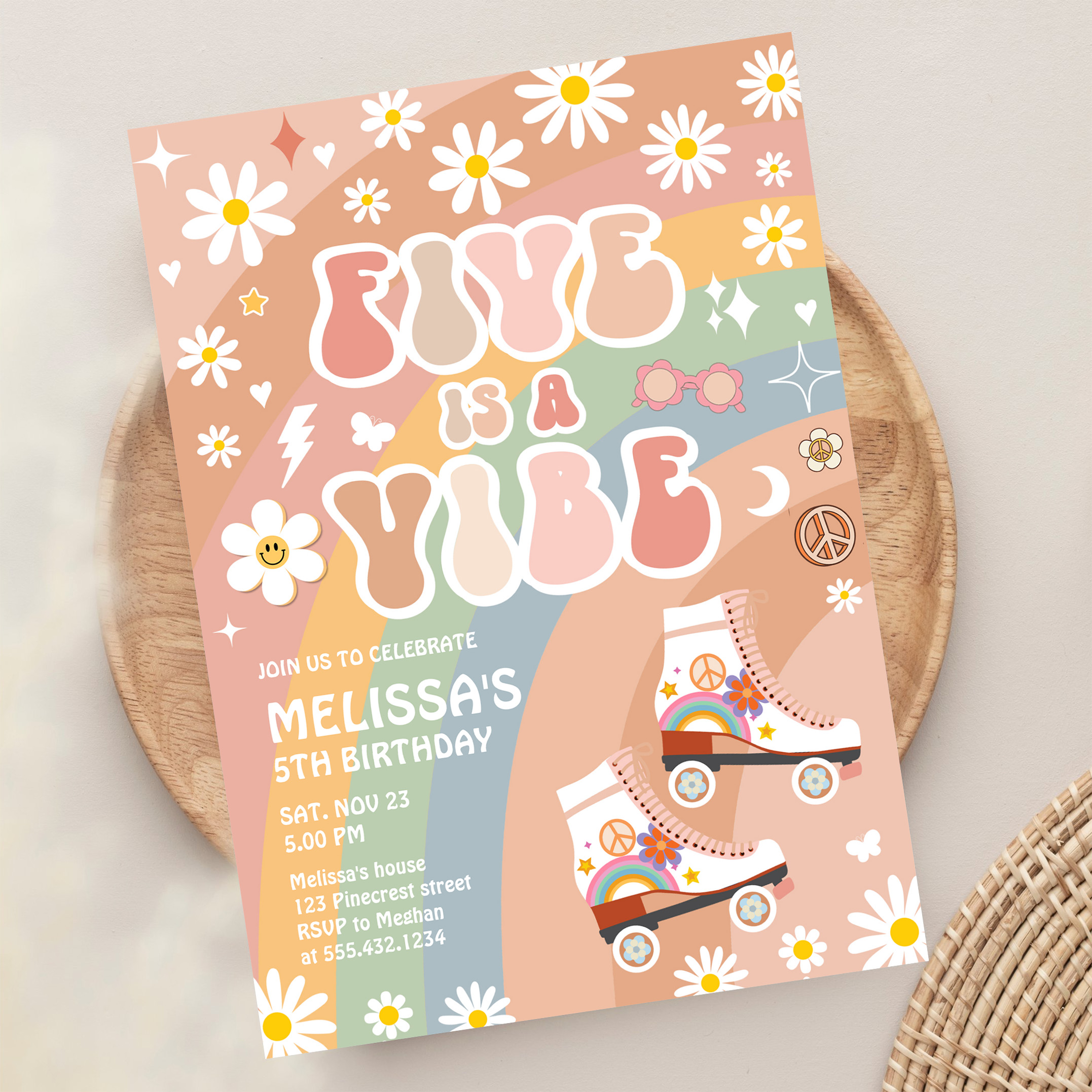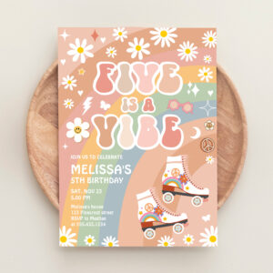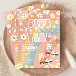 Five Is A Vibe Groovy Roller Skate 5th Birthday Invitation