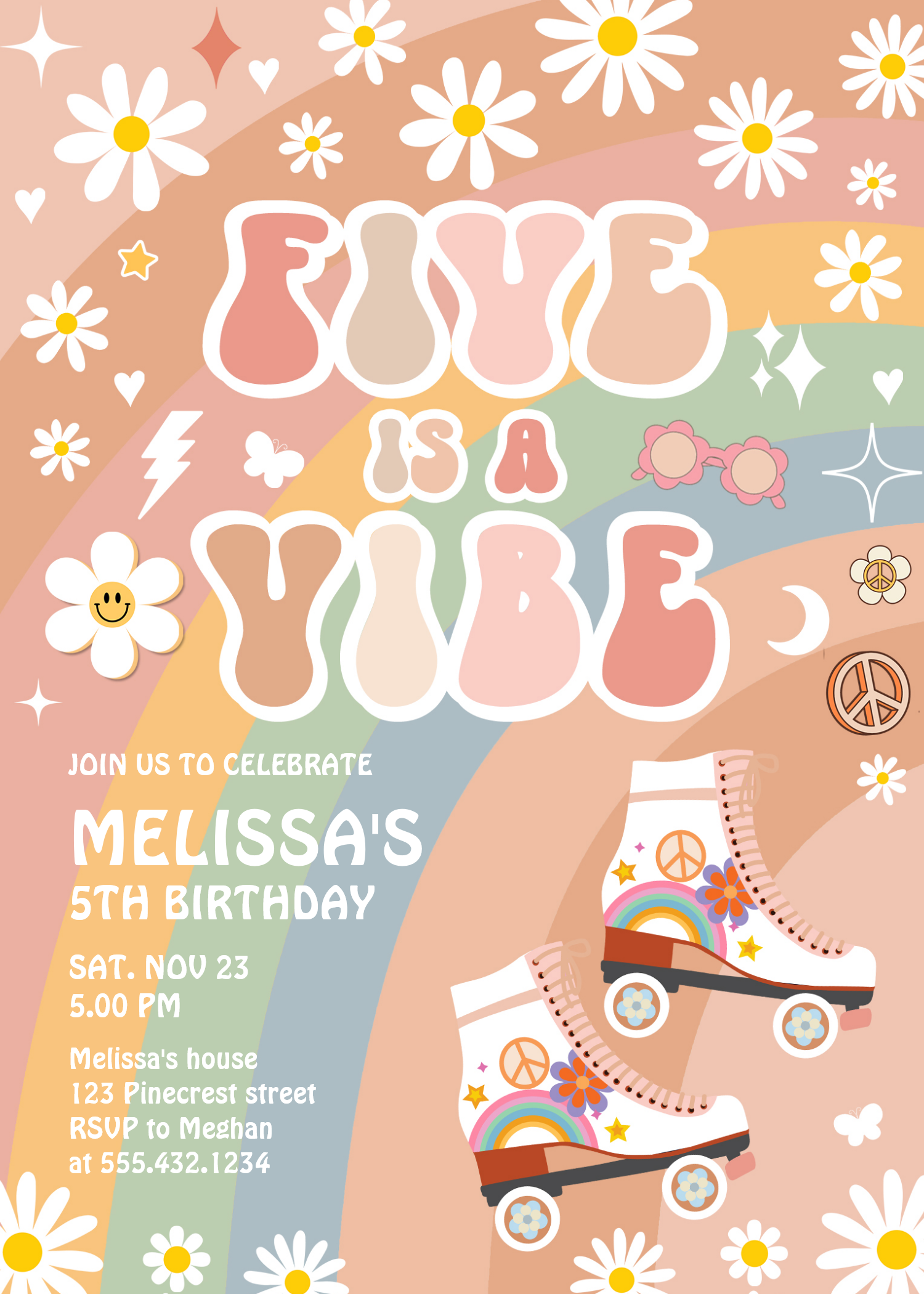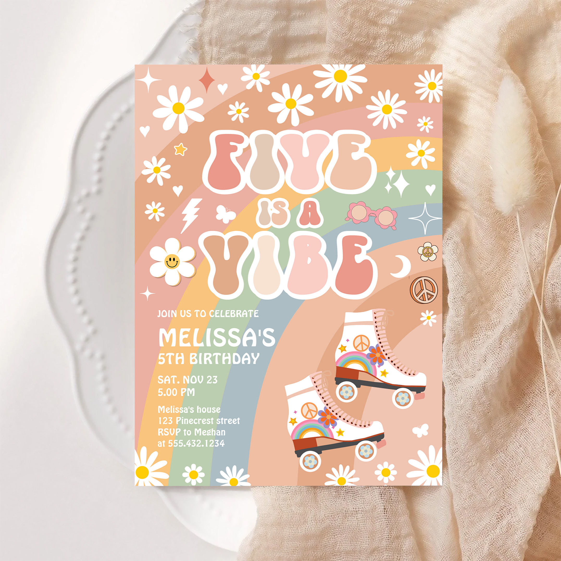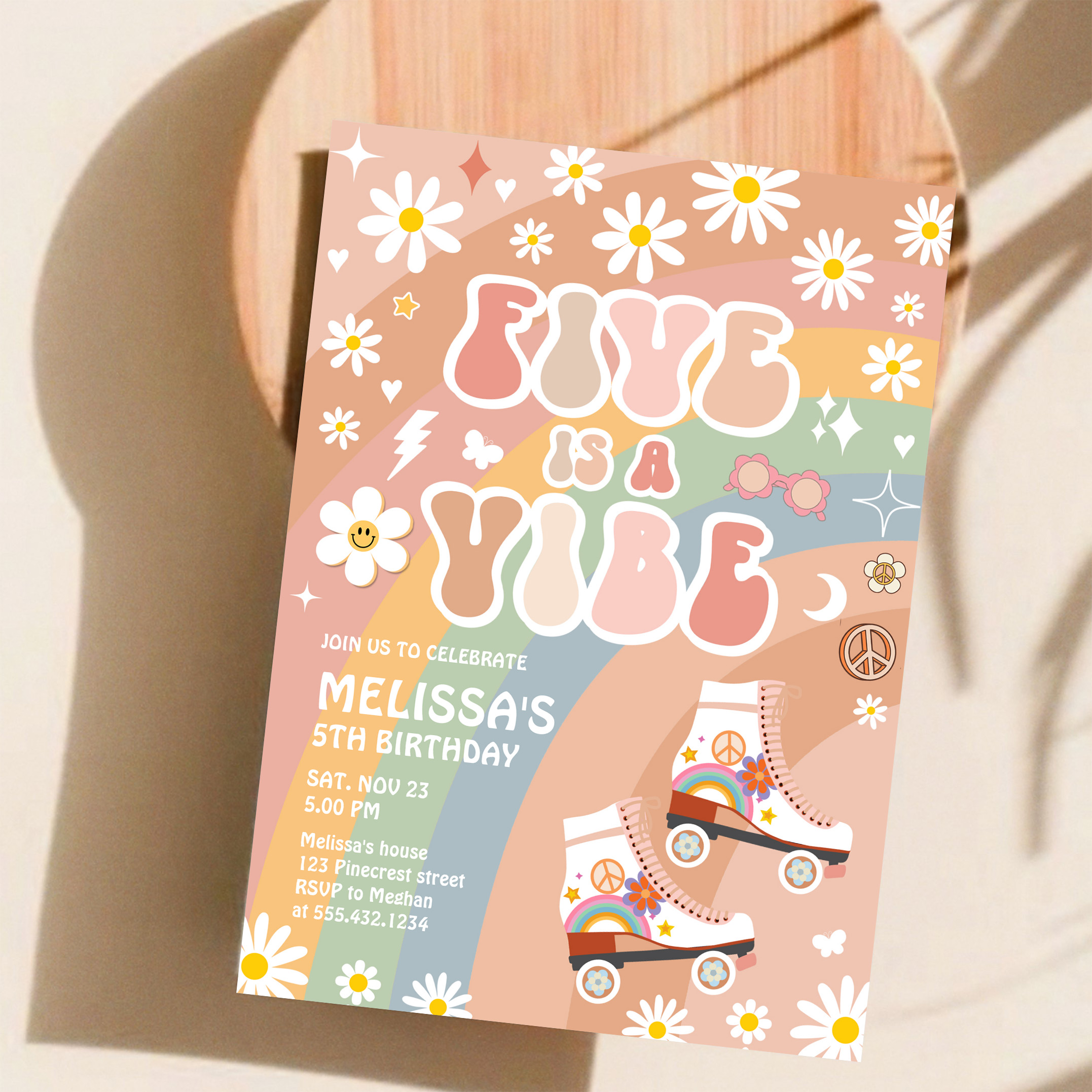 Five Is A Vibe Groovy Roller Skate 5th Birthday Invitation