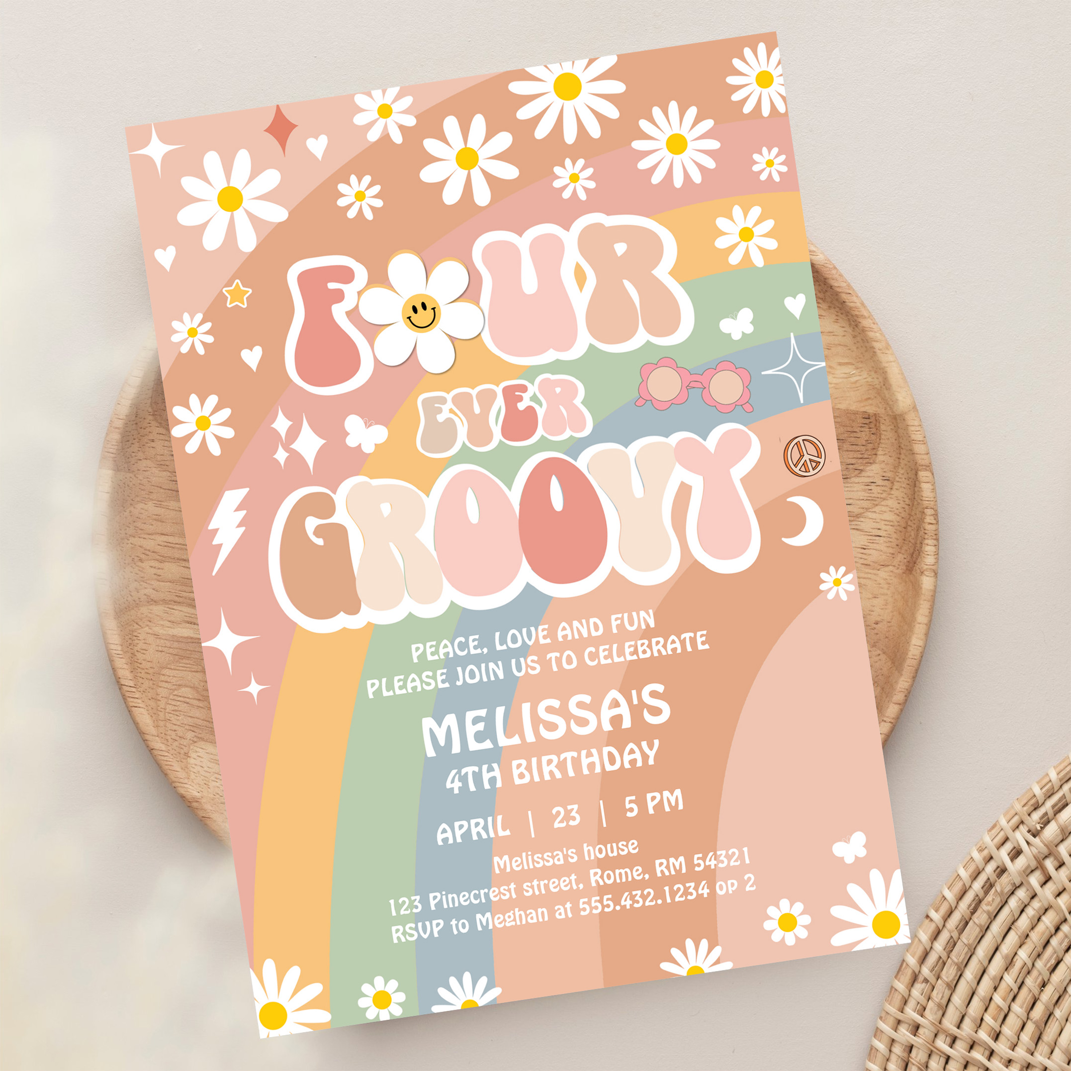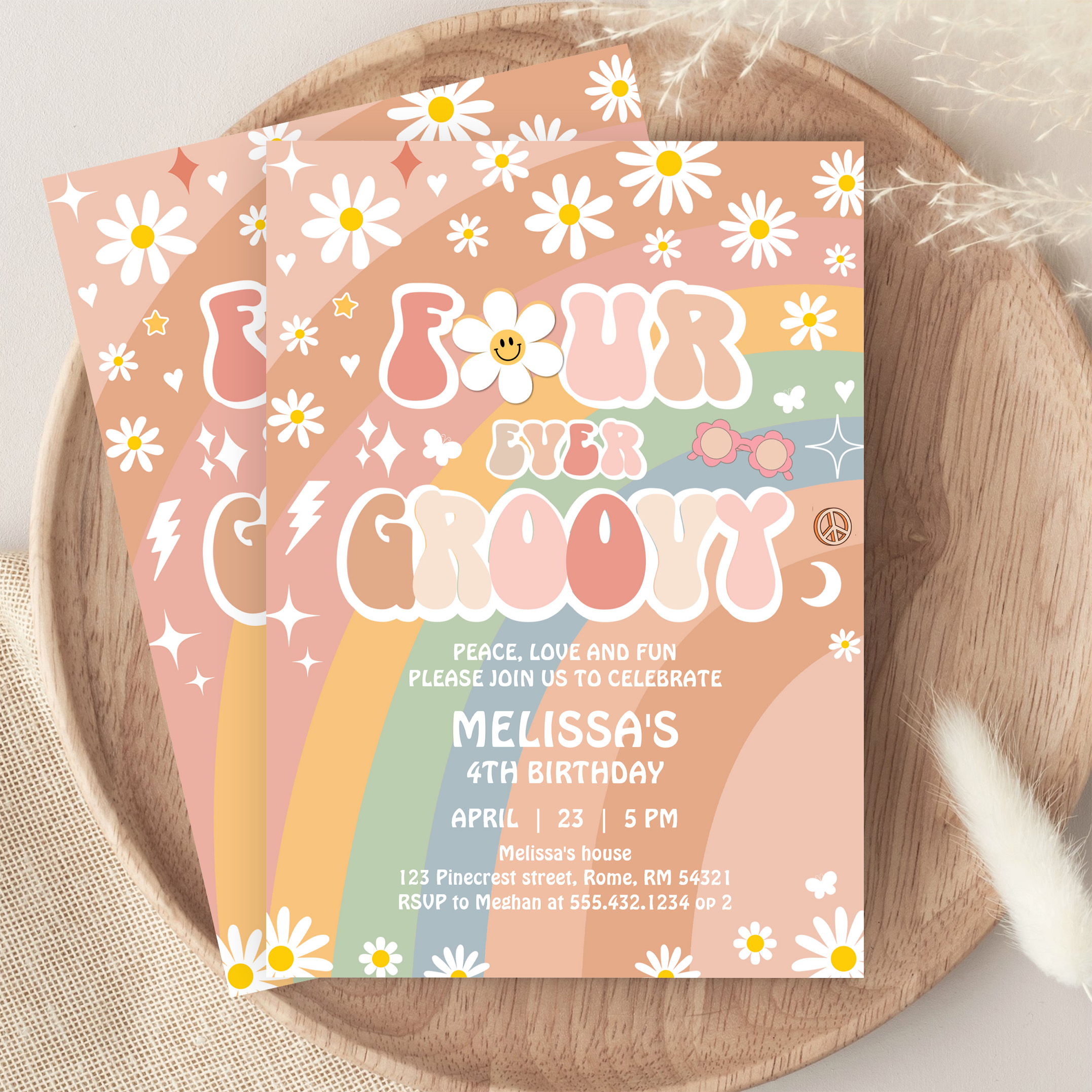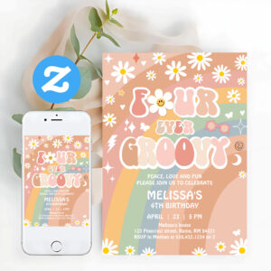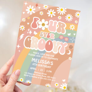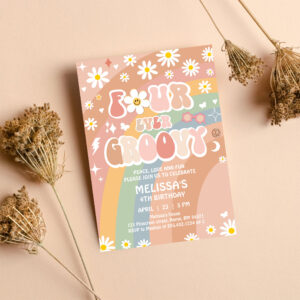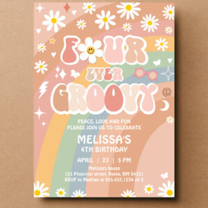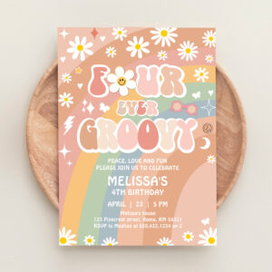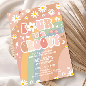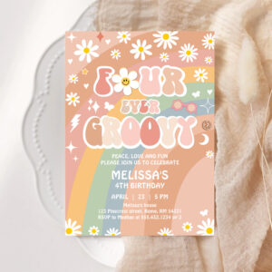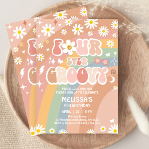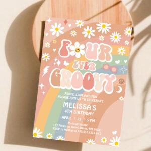 Four Ever Groovy Daisy Groovy Rainbow 4th Birthday Invitation - Related products