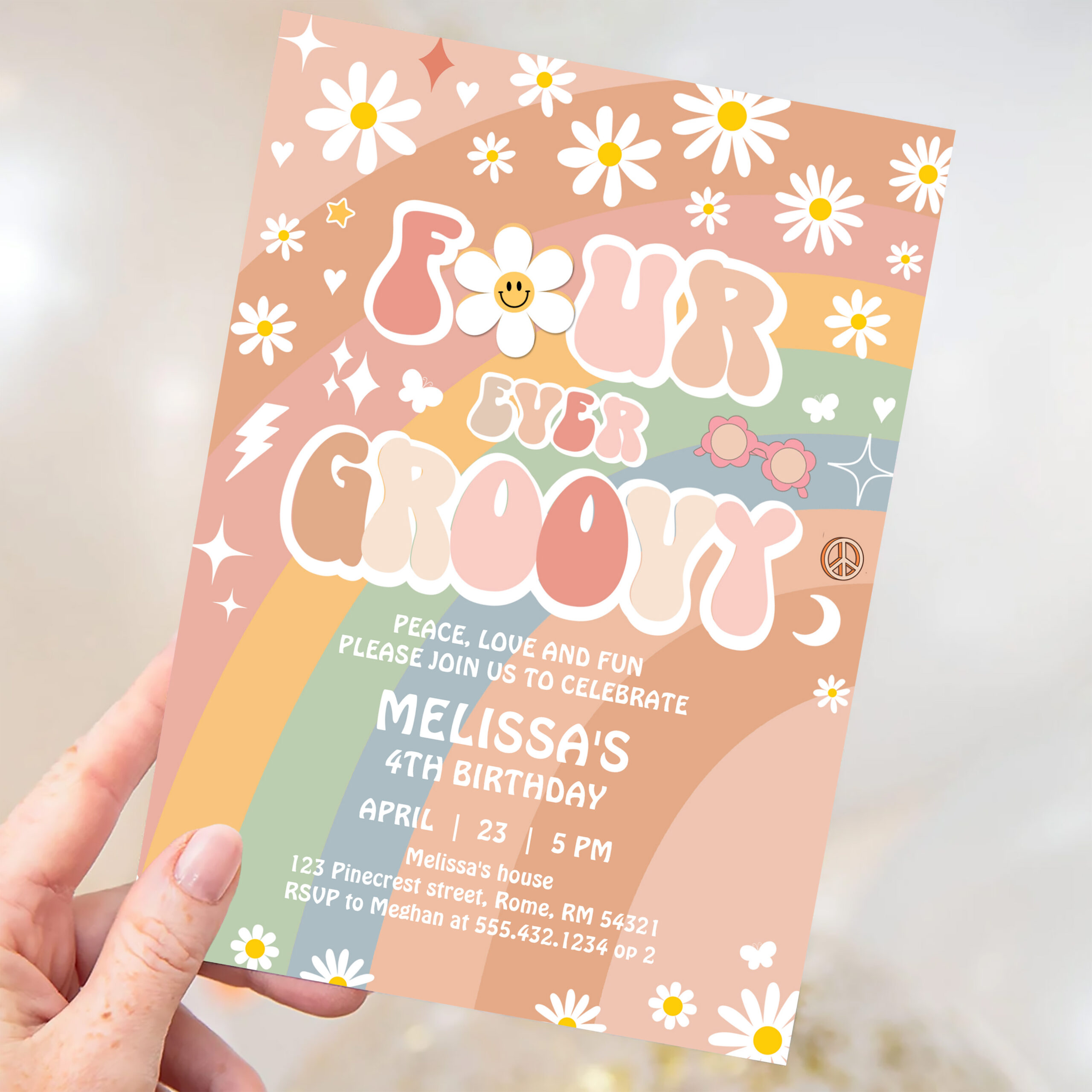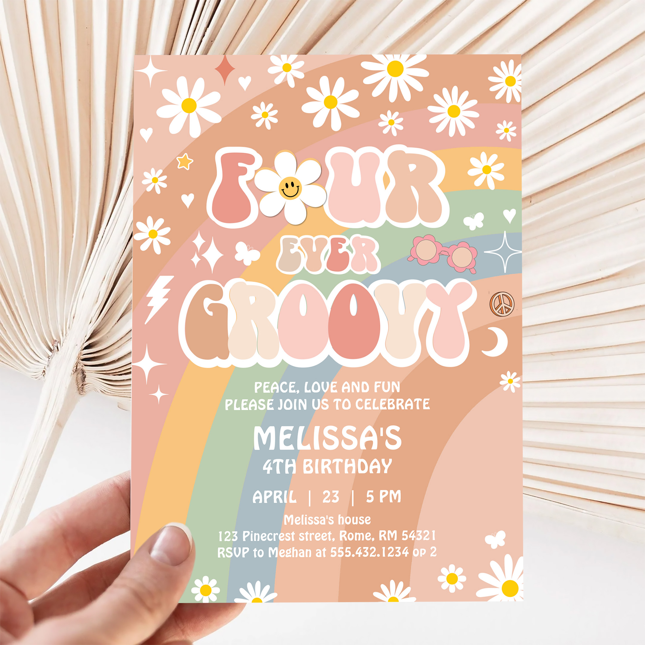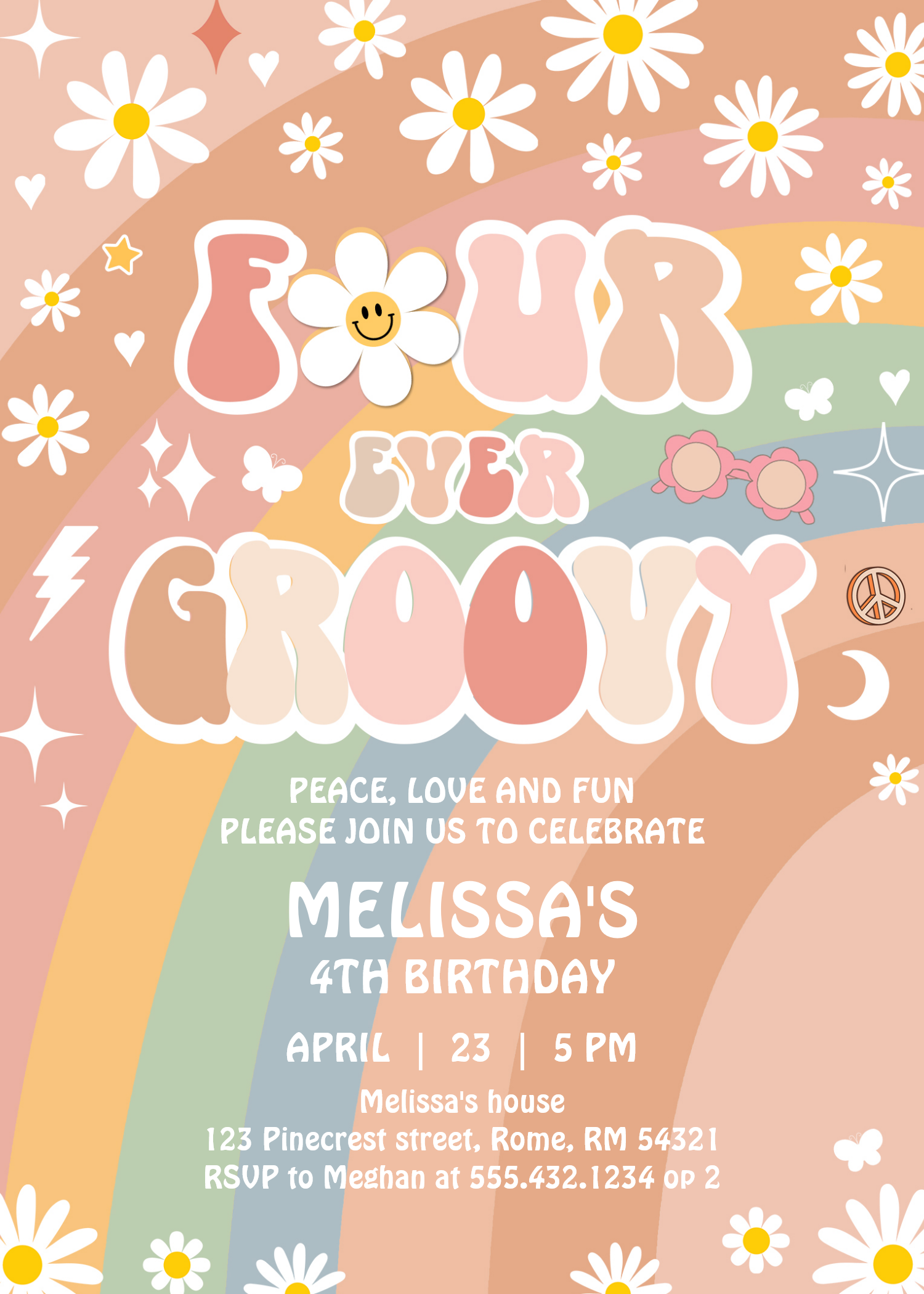 Four Ever Groovy Daisy Groovy Rainbow 4th Birthday Invitation - Related products