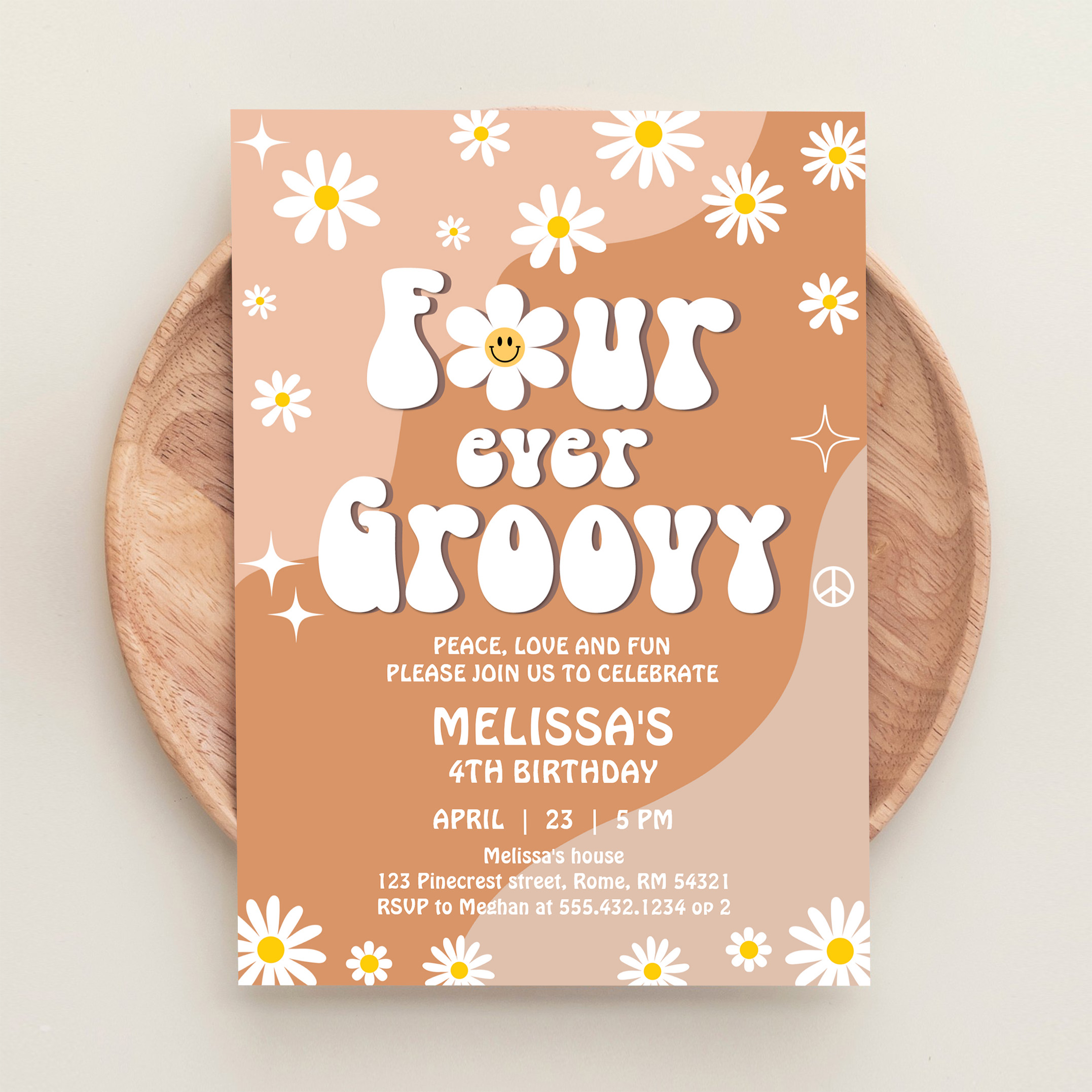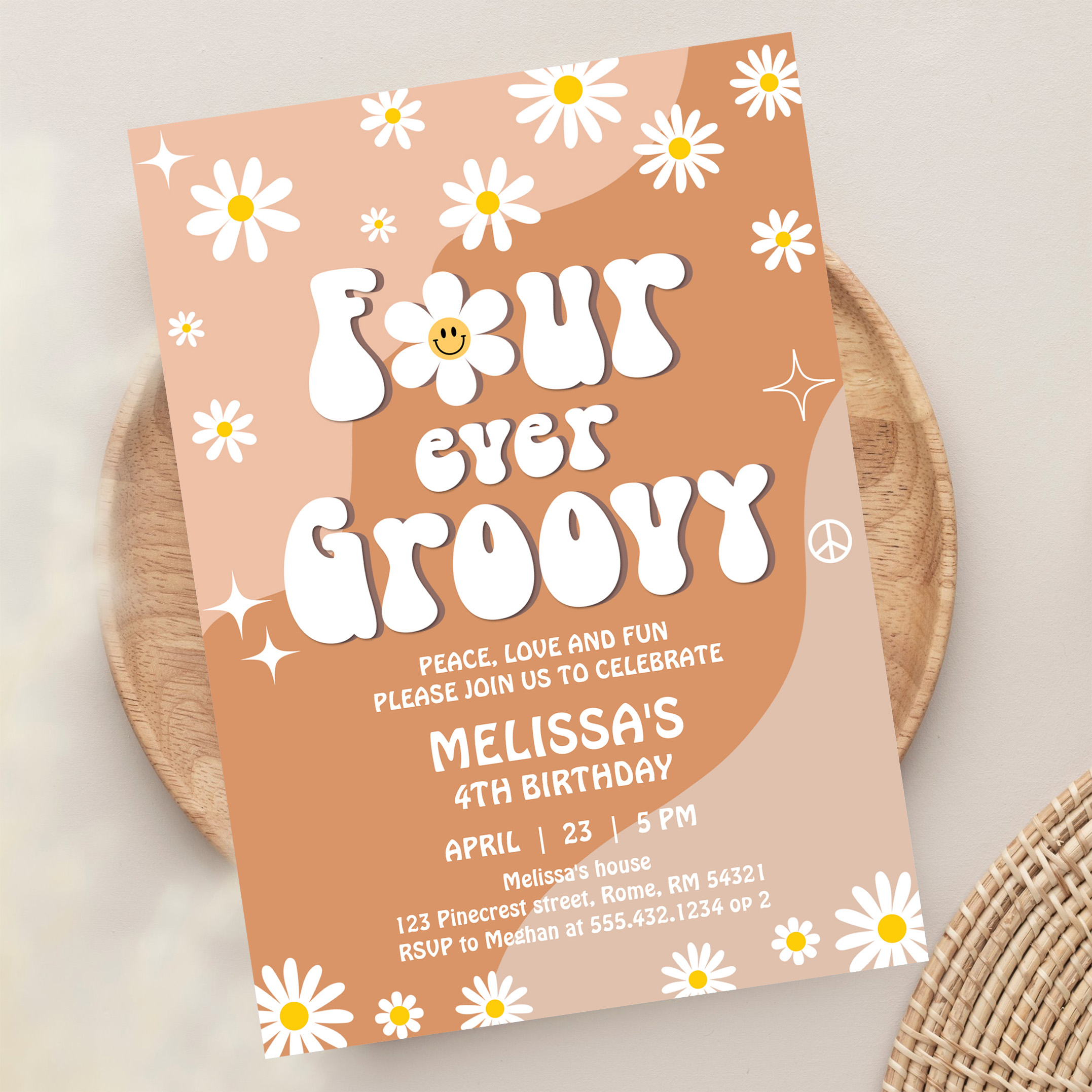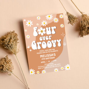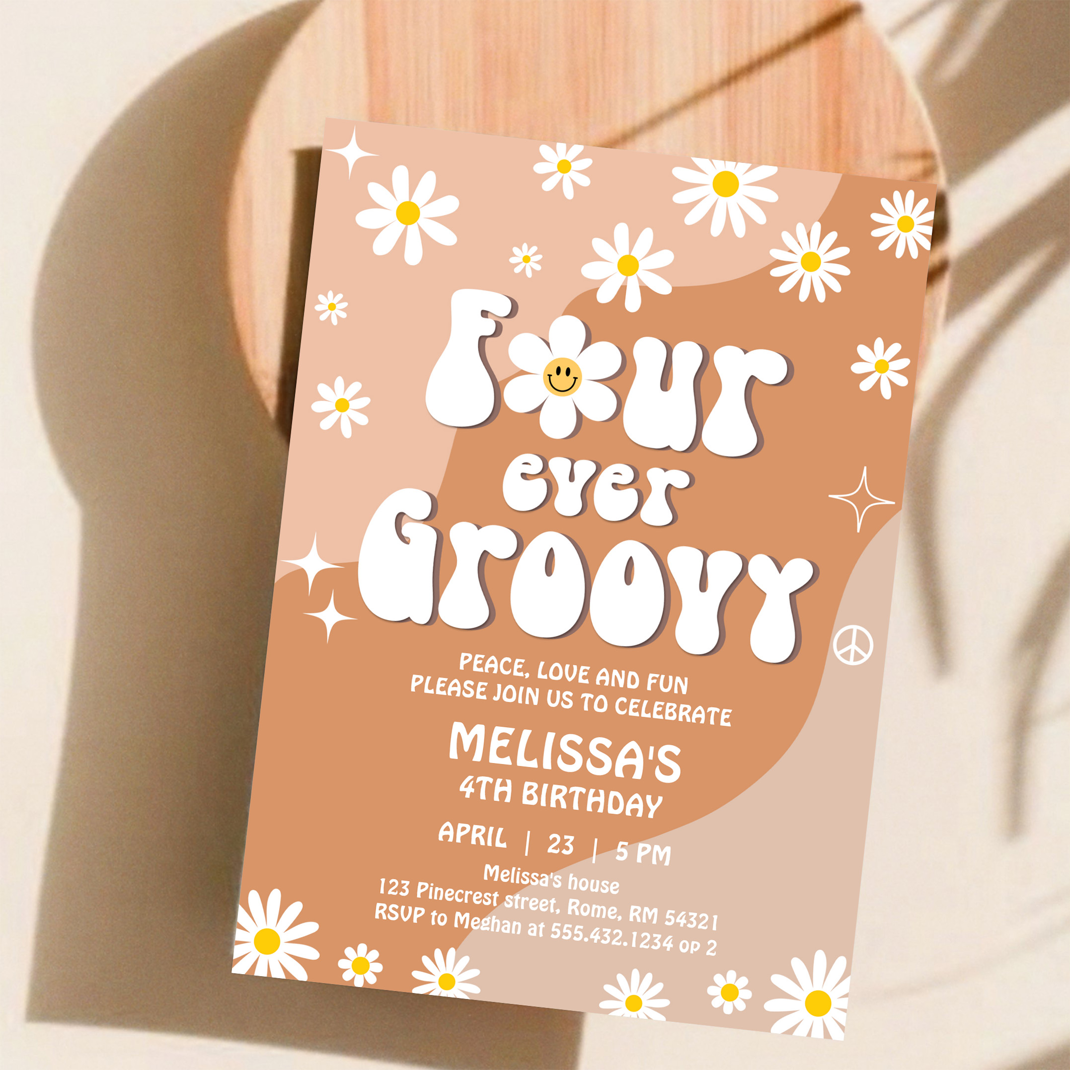 Four Ever Groovy Daisy Retro 70S 4th Birthday Invitation - Related products