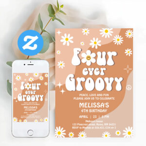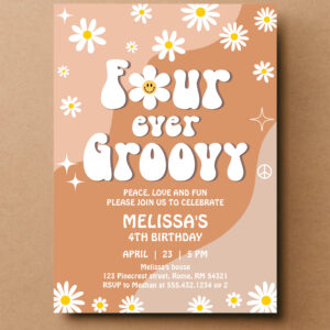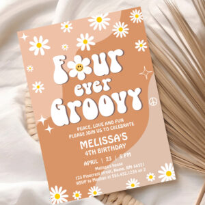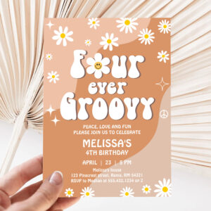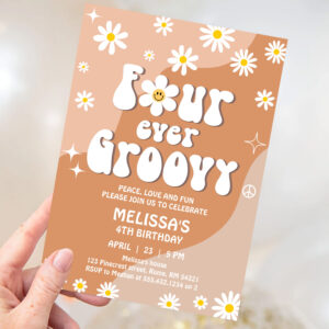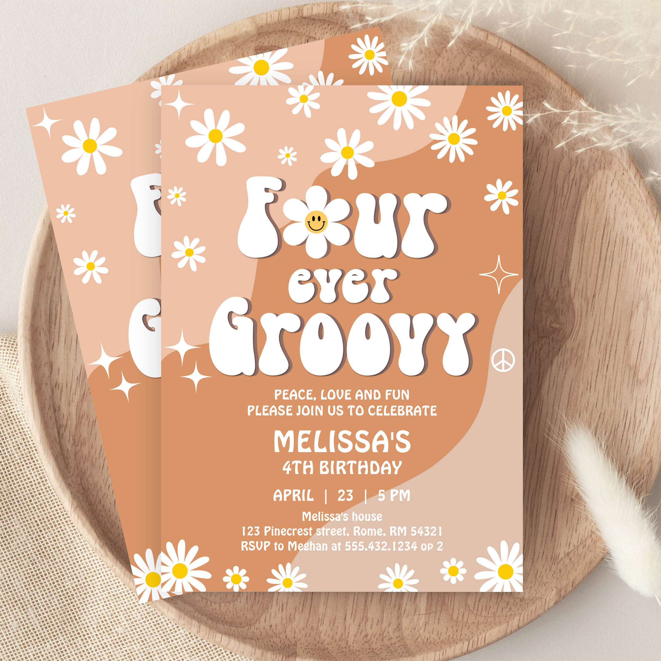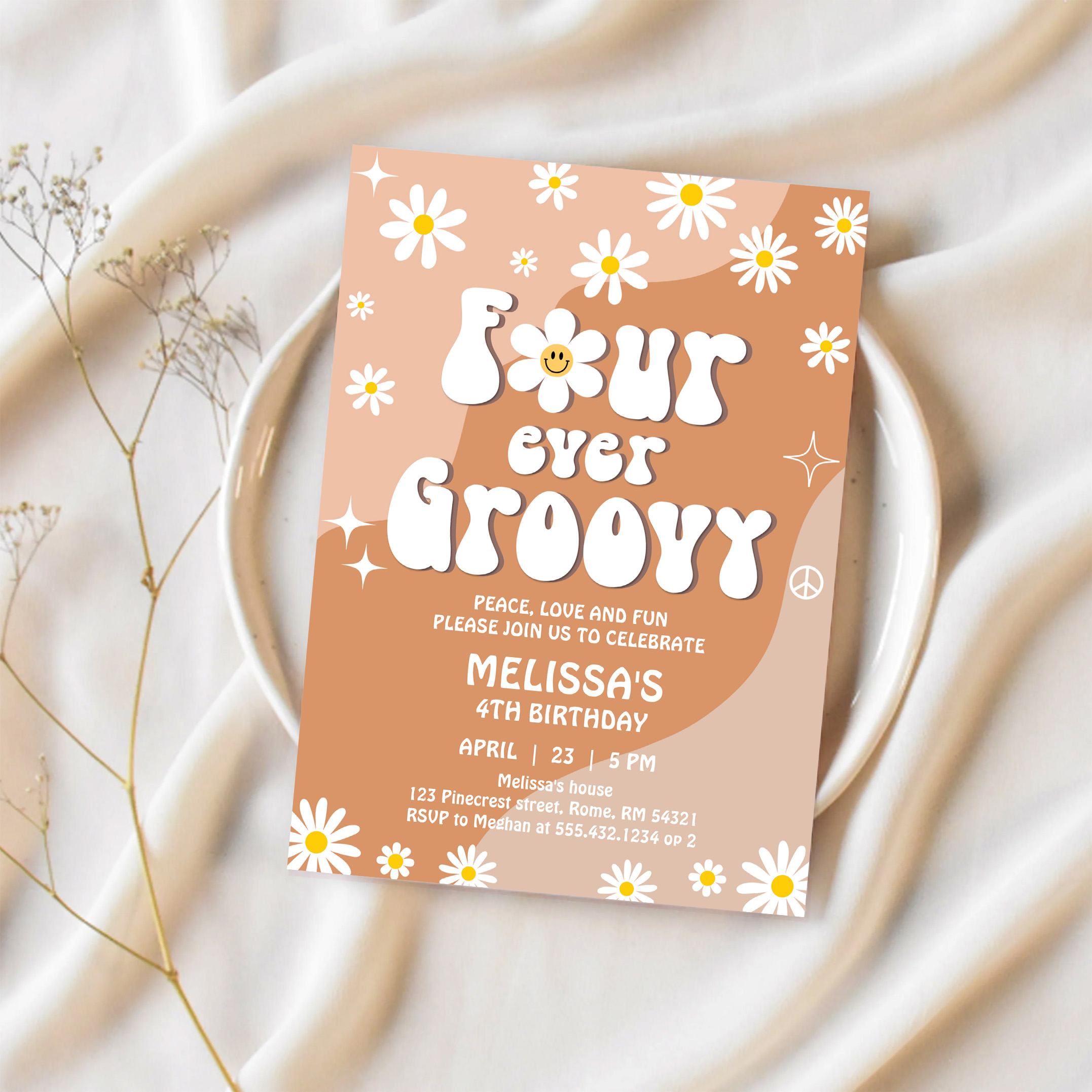 Four Ever Groovy Daisy Retro 70S 4th Birthday Invitation - Related products