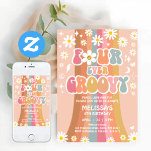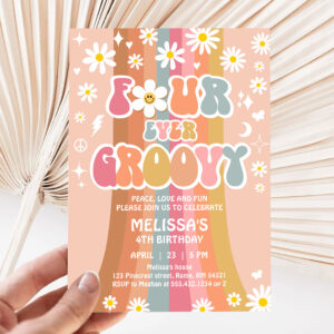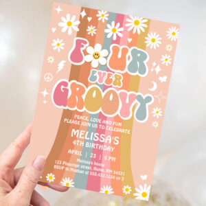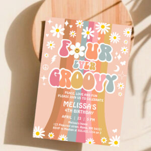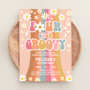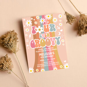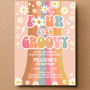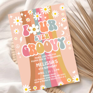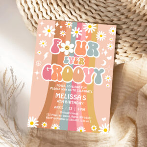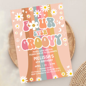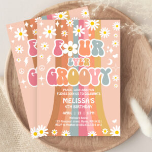 Four Ever Groovy Rainbow Groovy 4th Birthday Invitation - Related products