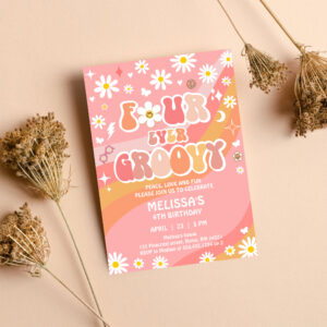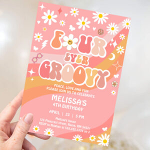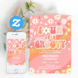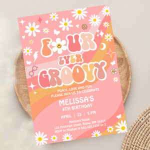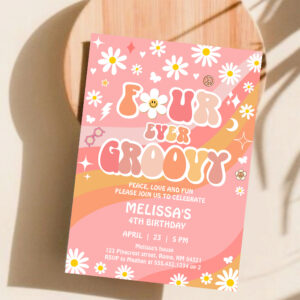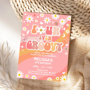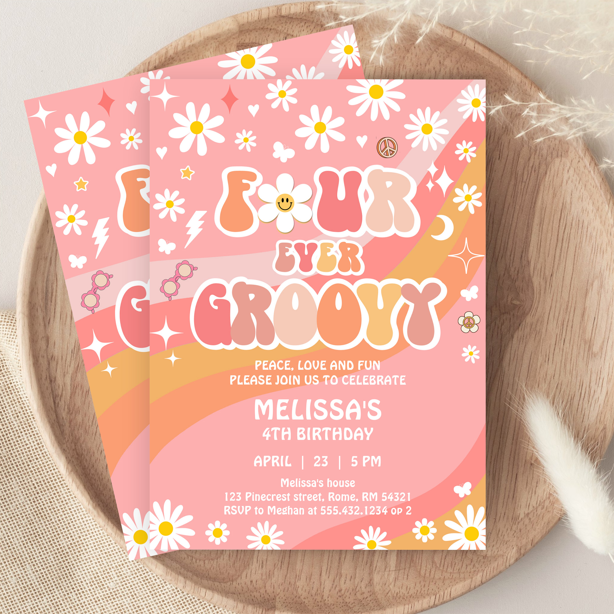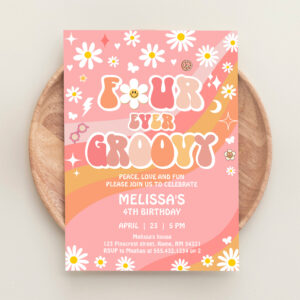 Four Ever Groovy Rainbow Hippie 70S 4th Birthday Invitation - Related products