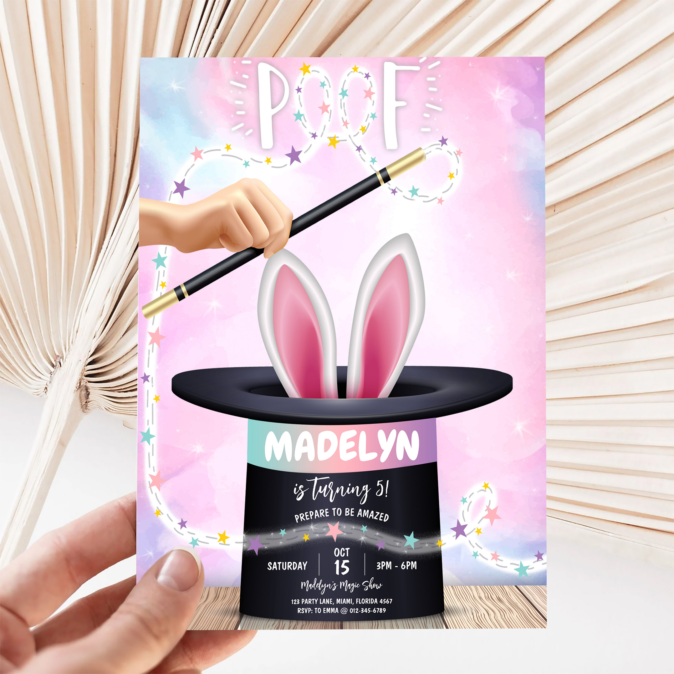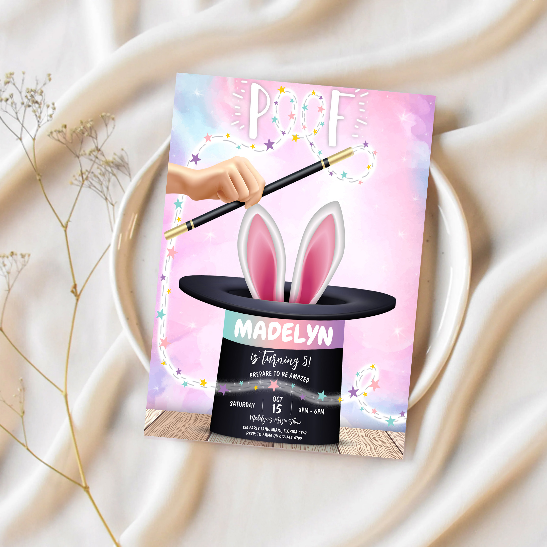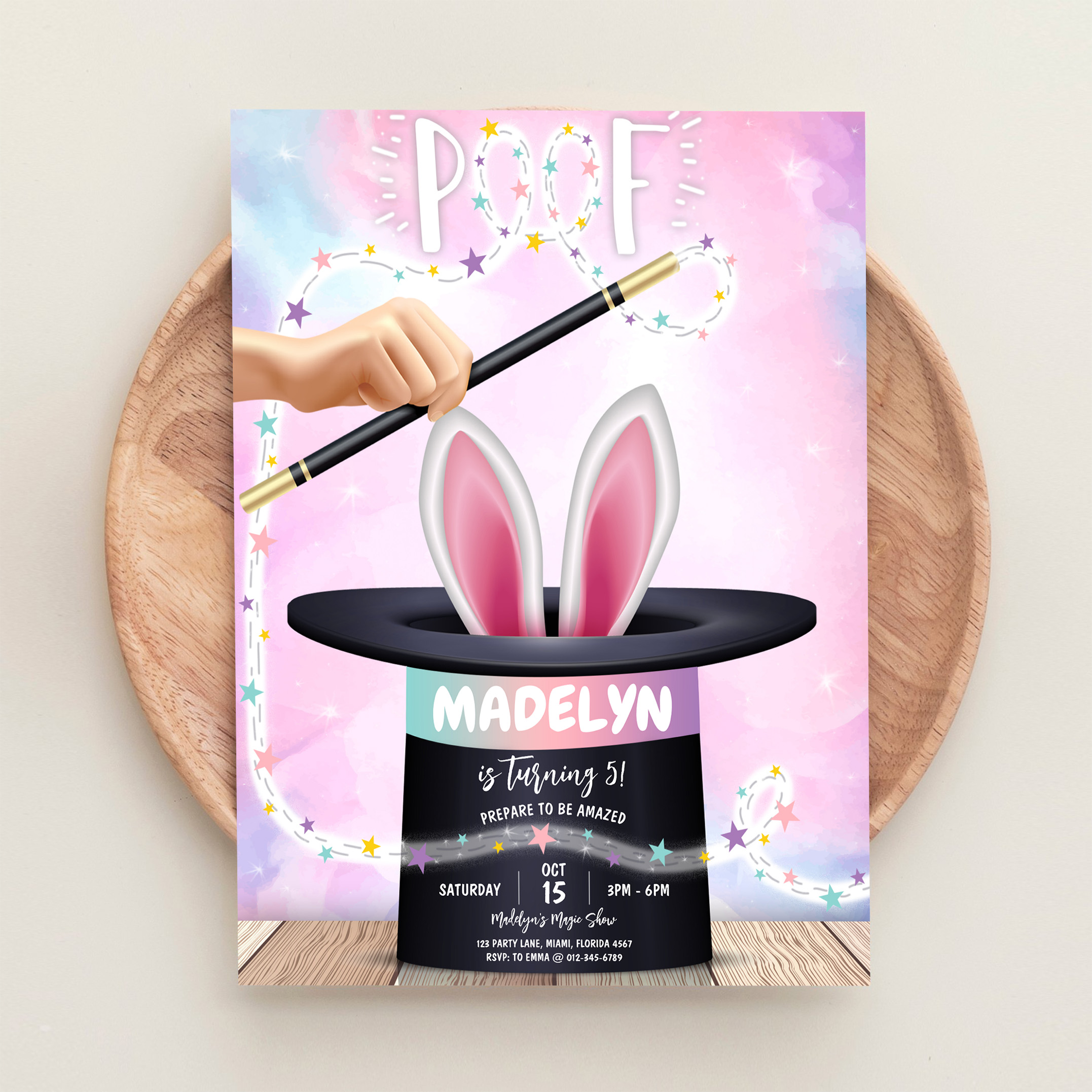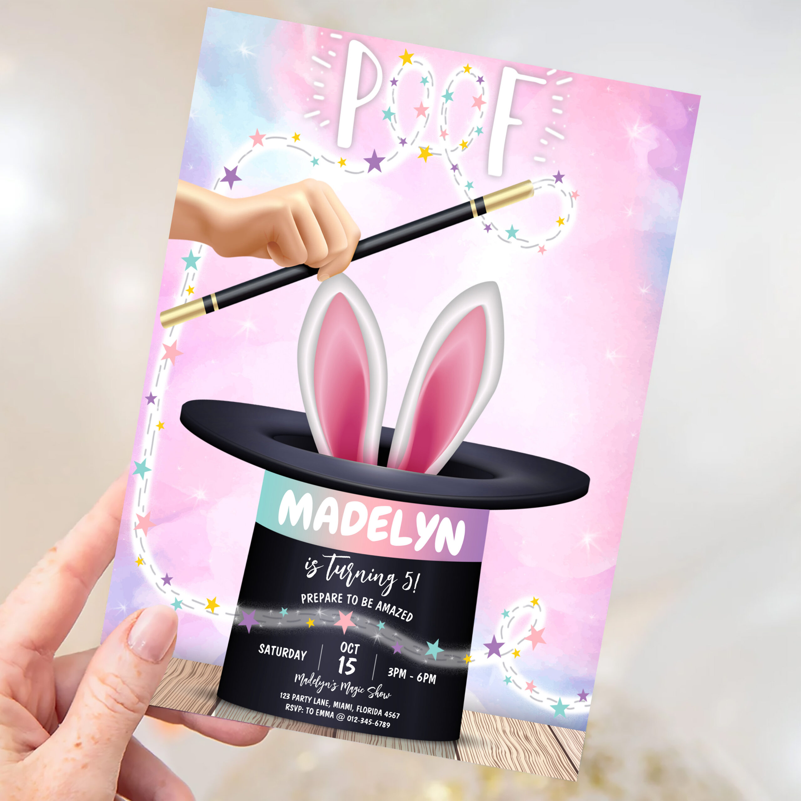 Girl Magician Show Birthday Invitation
