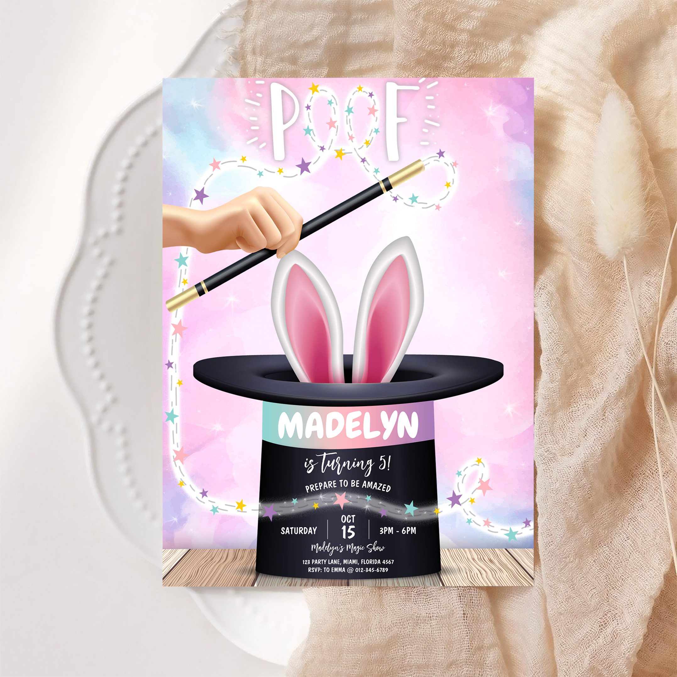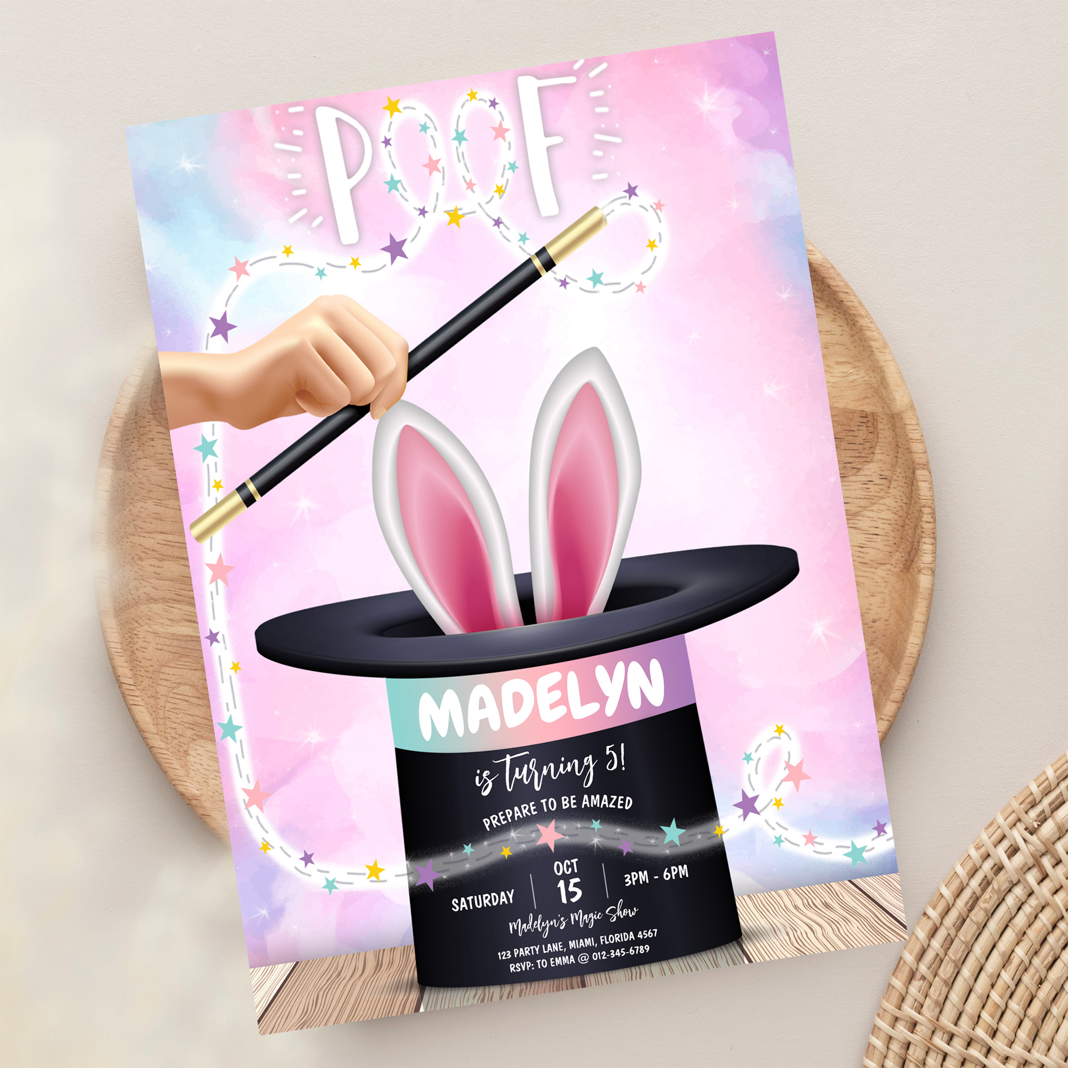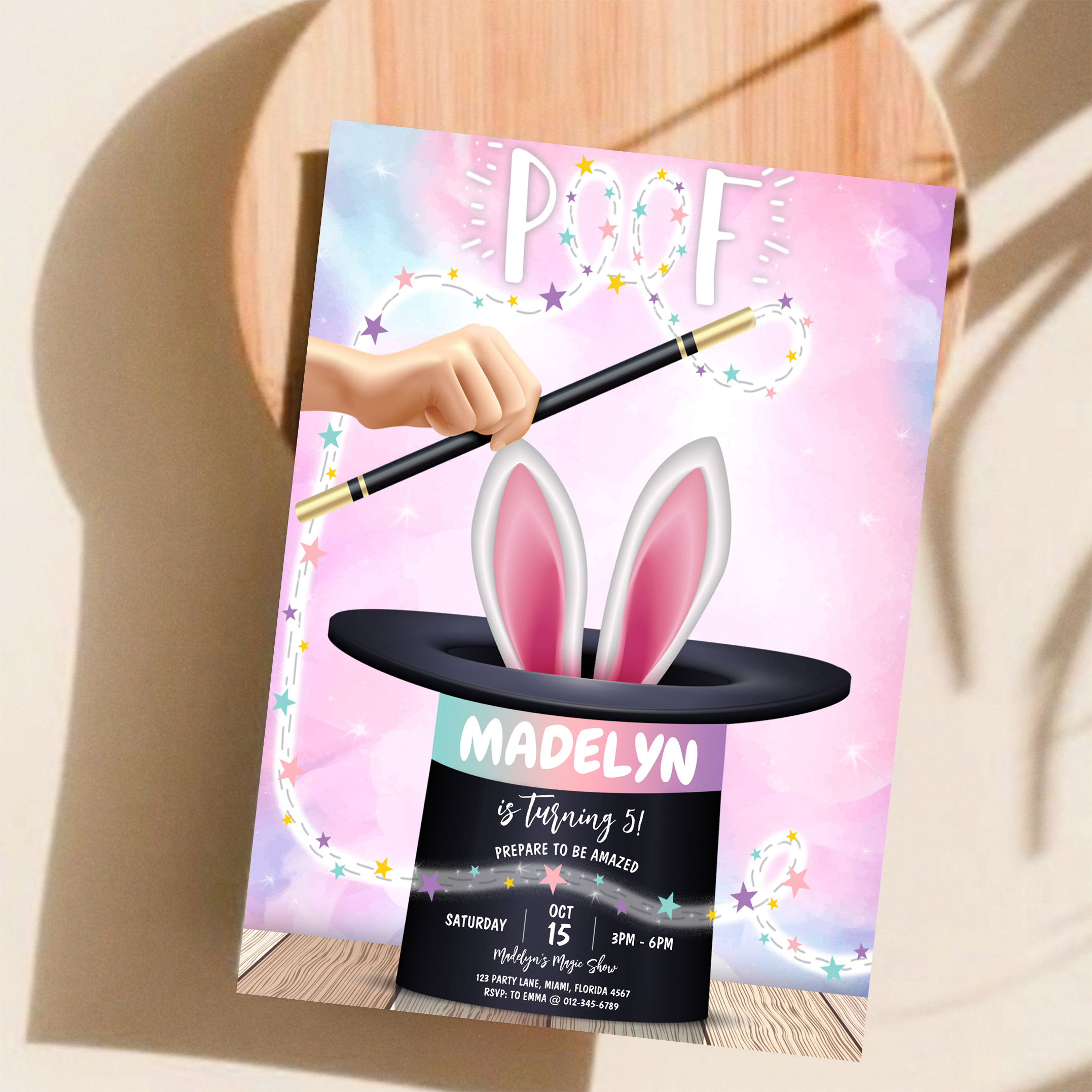 Girl Magician Show Birthday Invitation