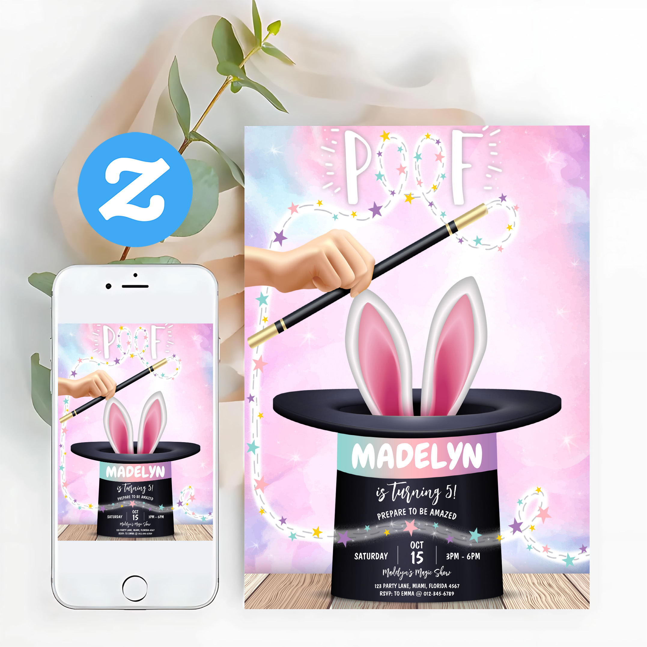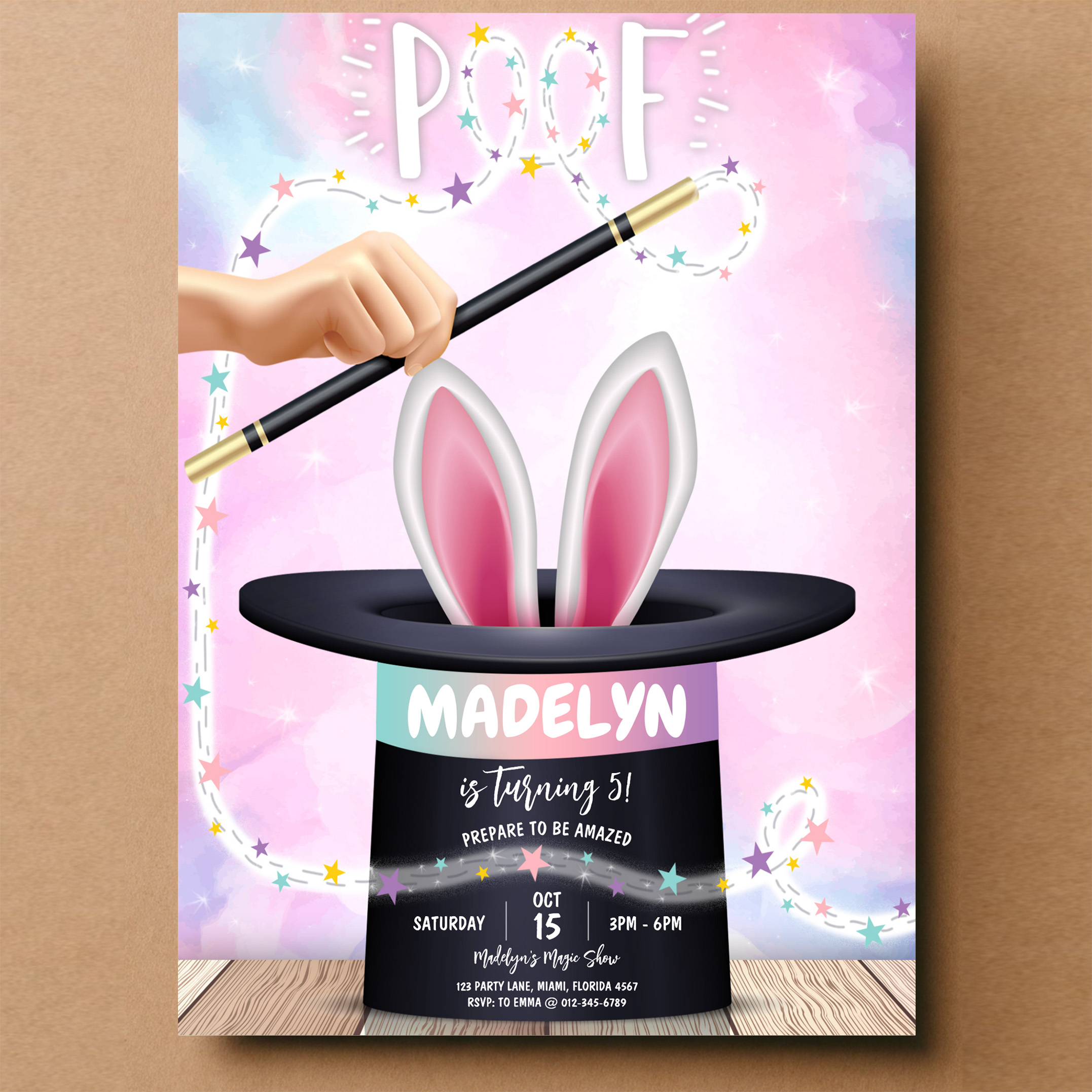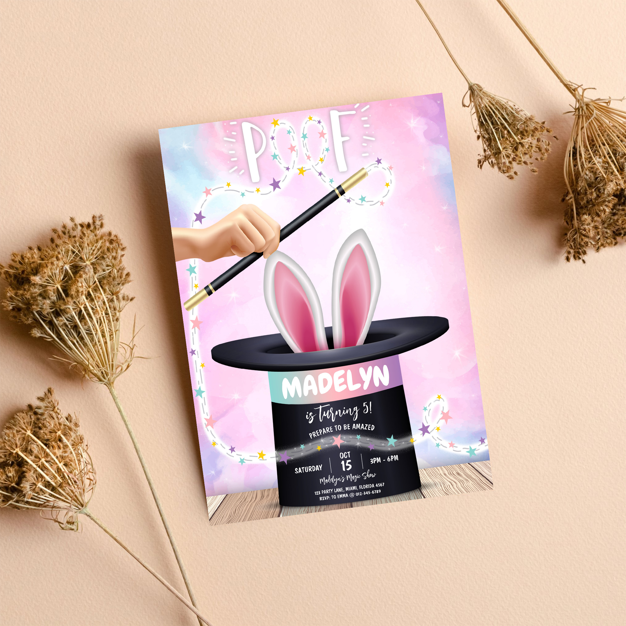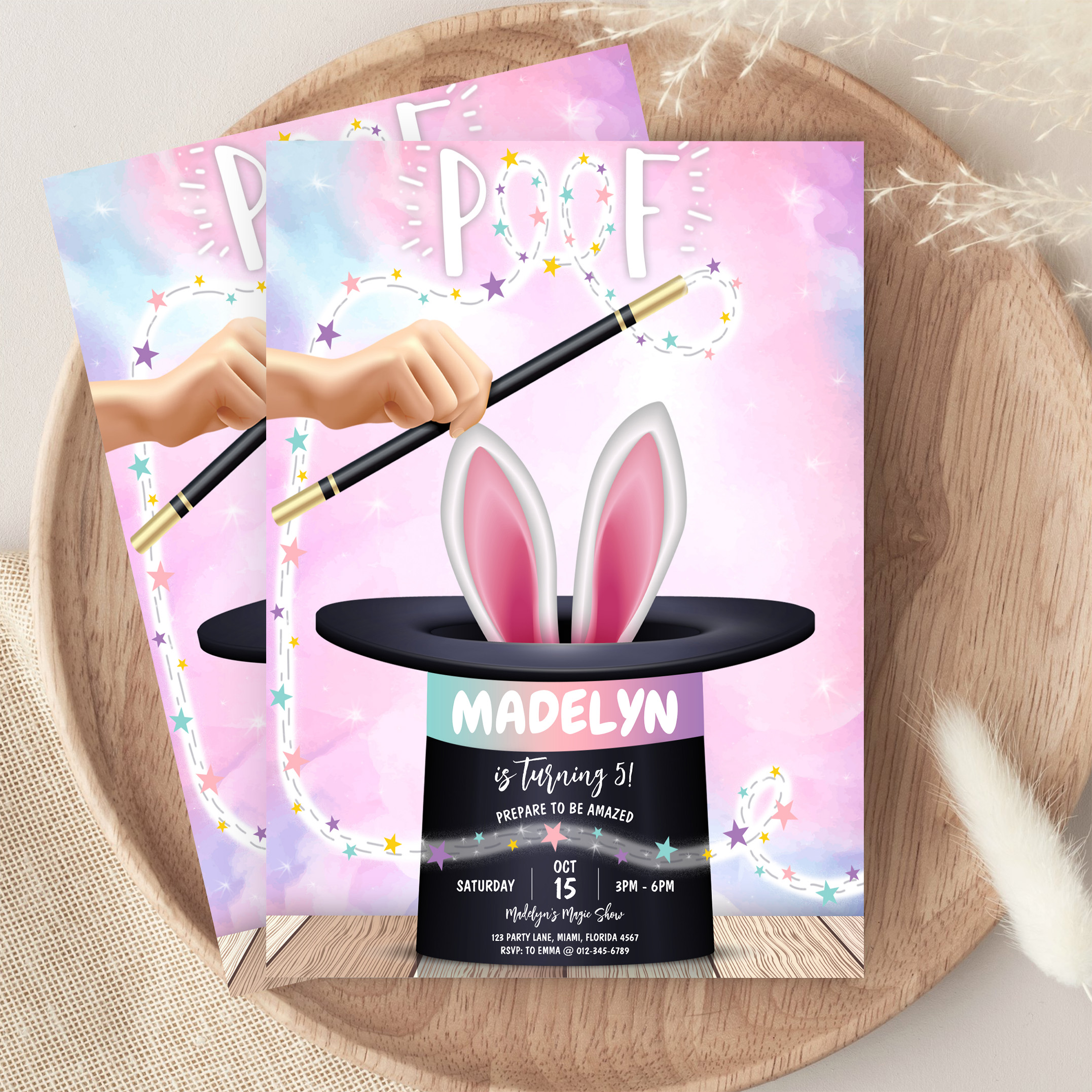Girl Magician Show Birthday Invitation