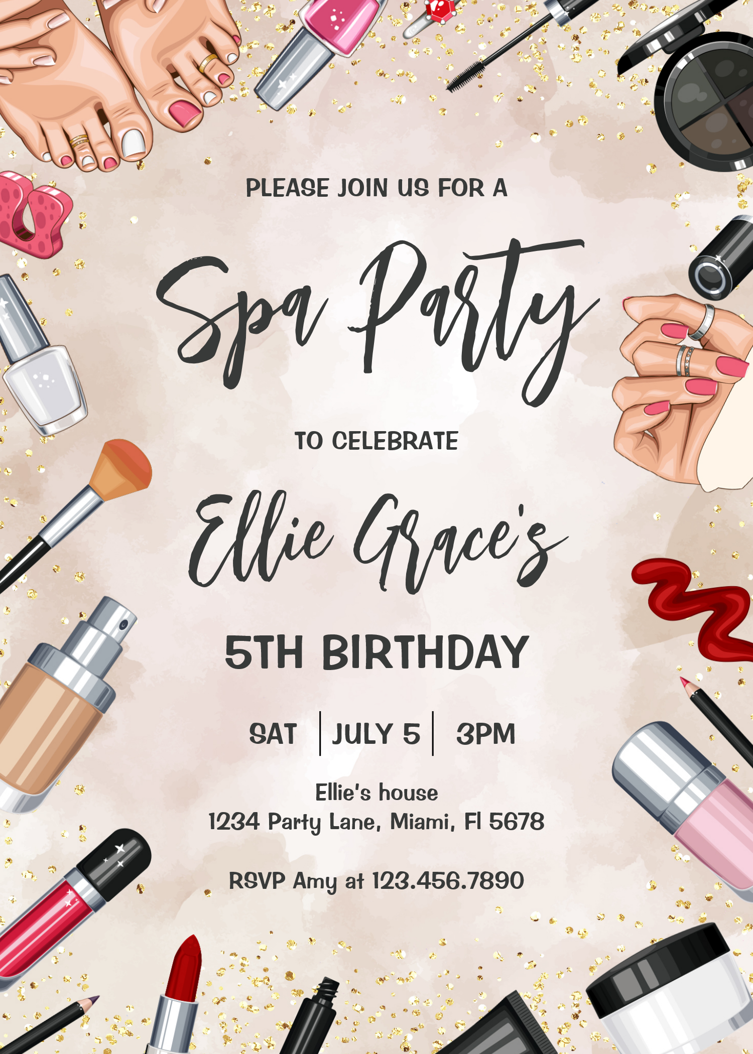 Glam Spa Makeup Blush Pink Gold Birthday Party Invitation - Related products