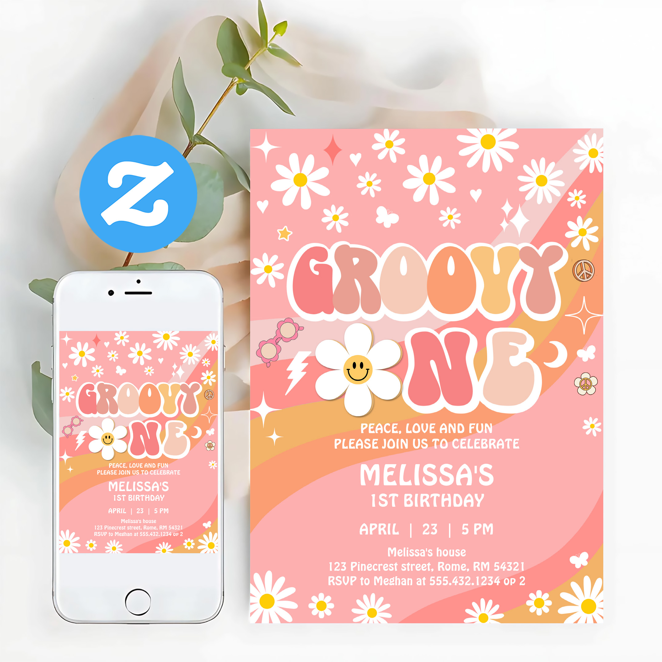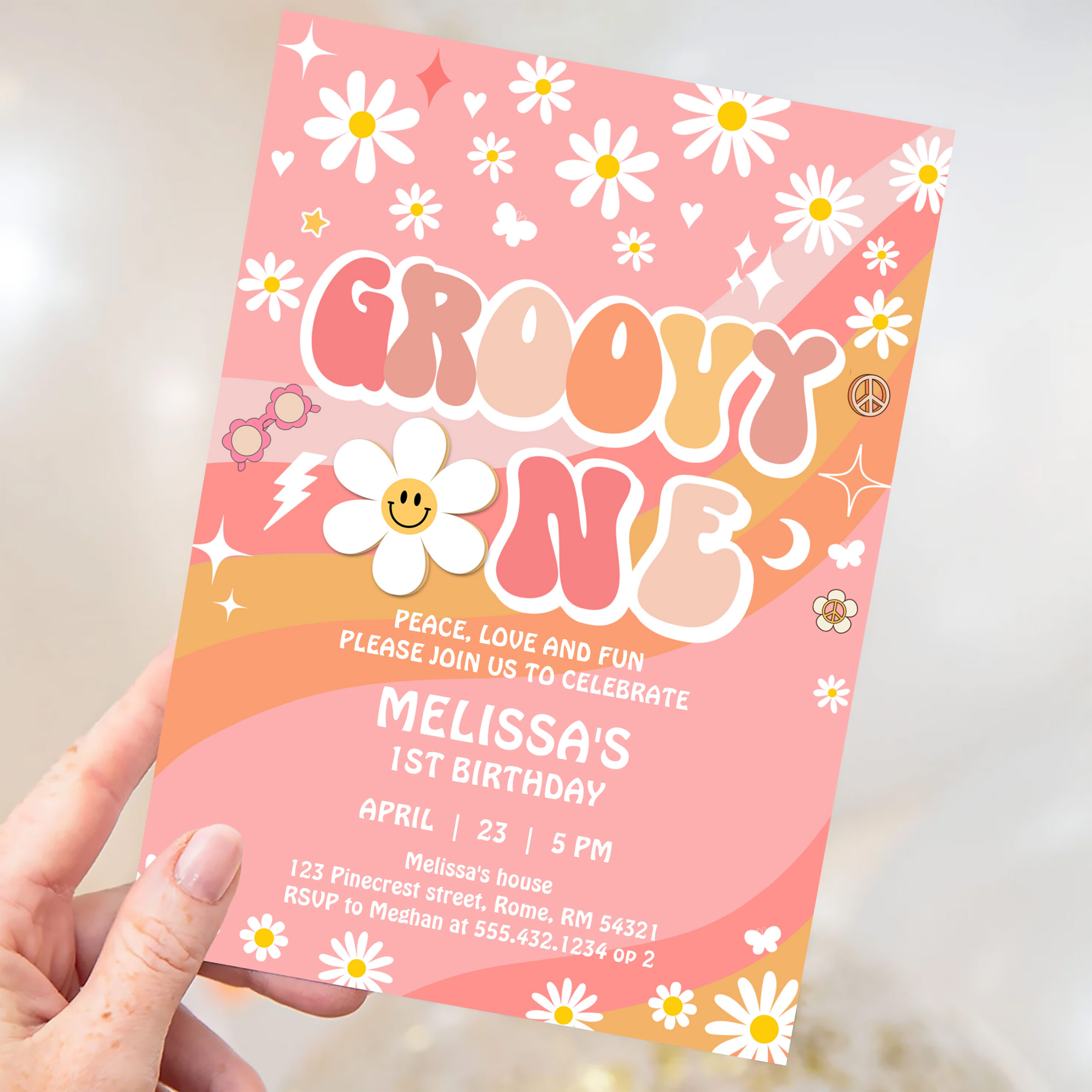 Groovy One 1st Birthday Daisy Smile Retro Hippie Invitation