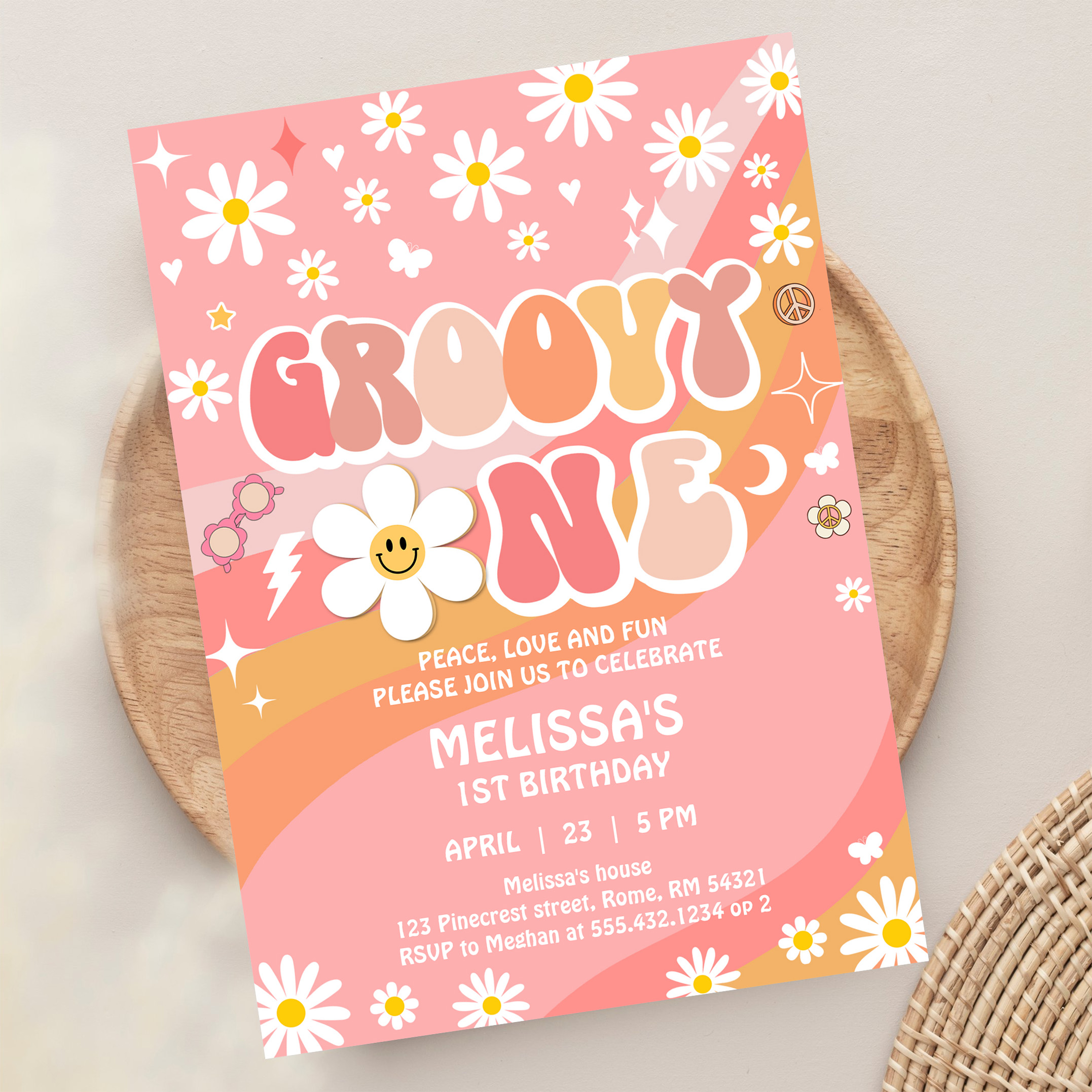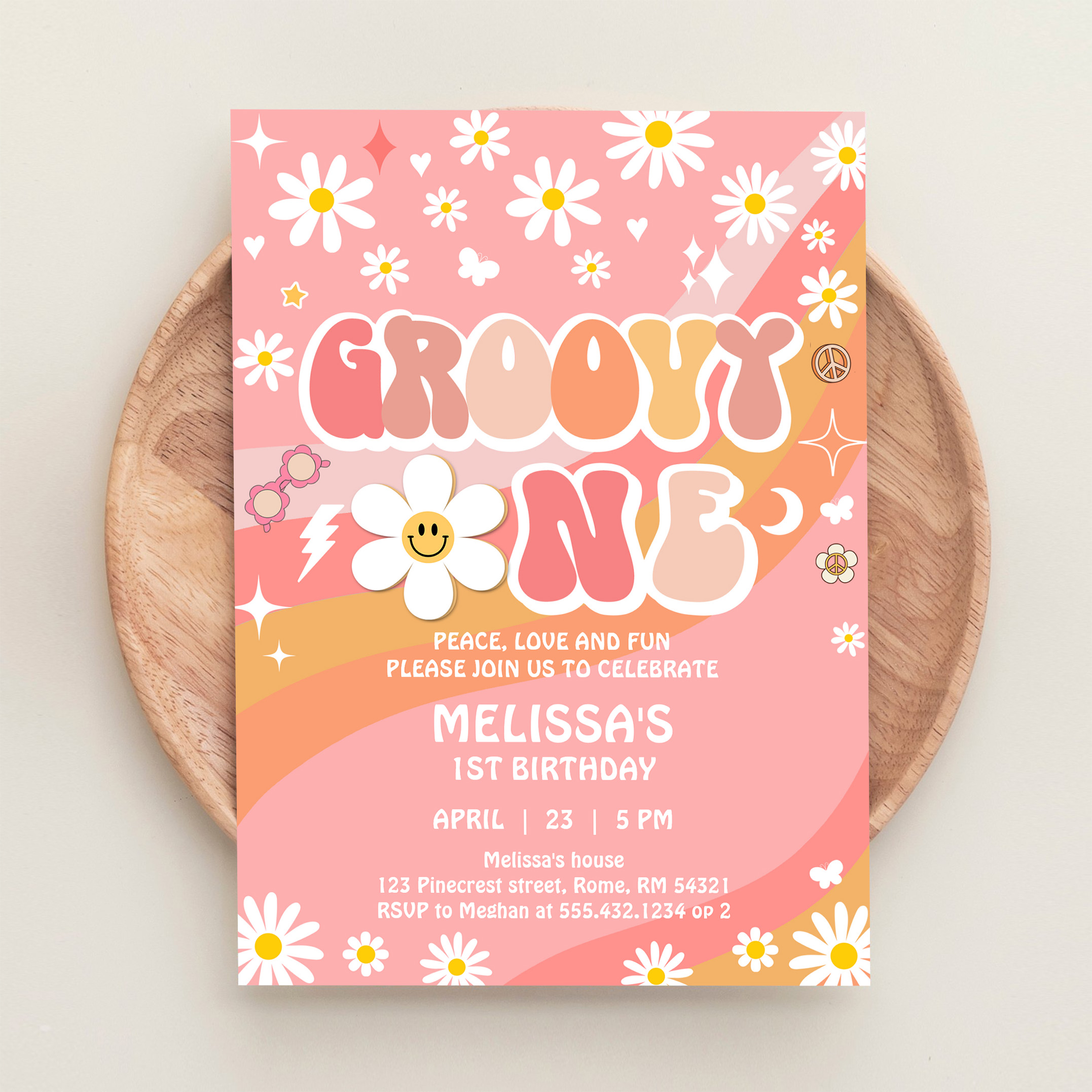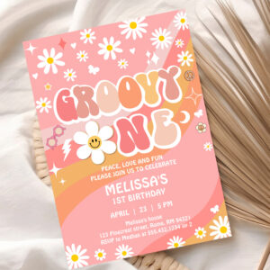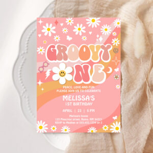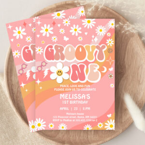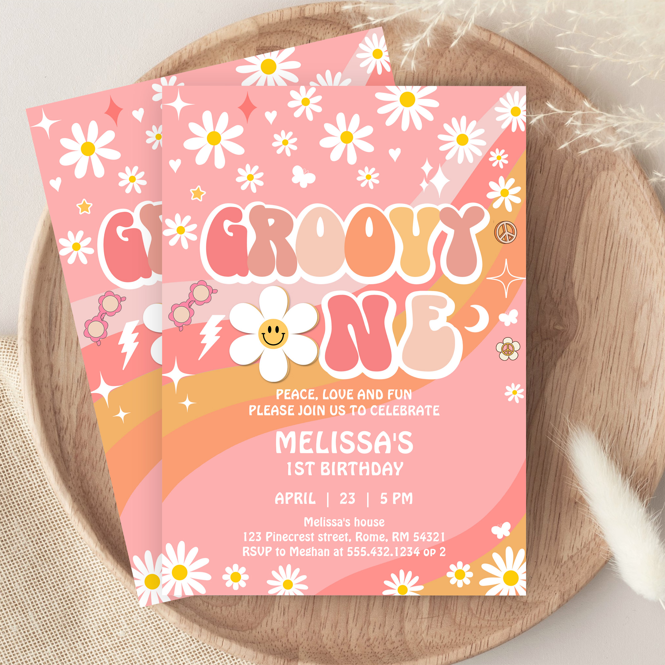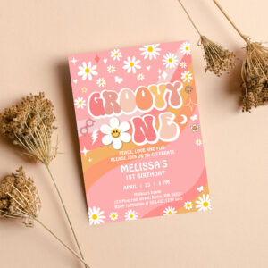 Groovy One 1st Birthday Daisy Smile Retro Hippie Invitation - Related products
