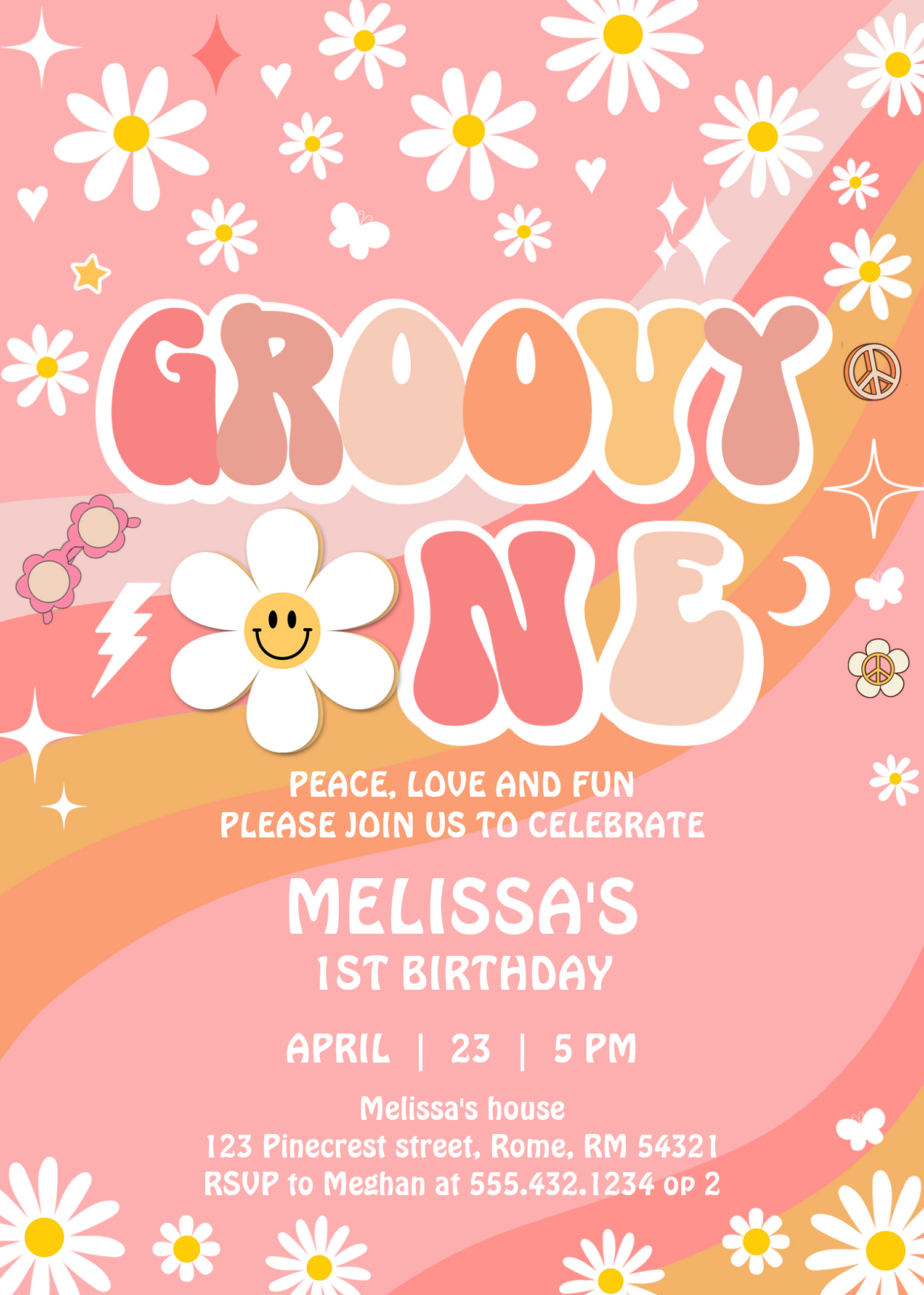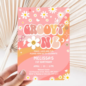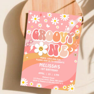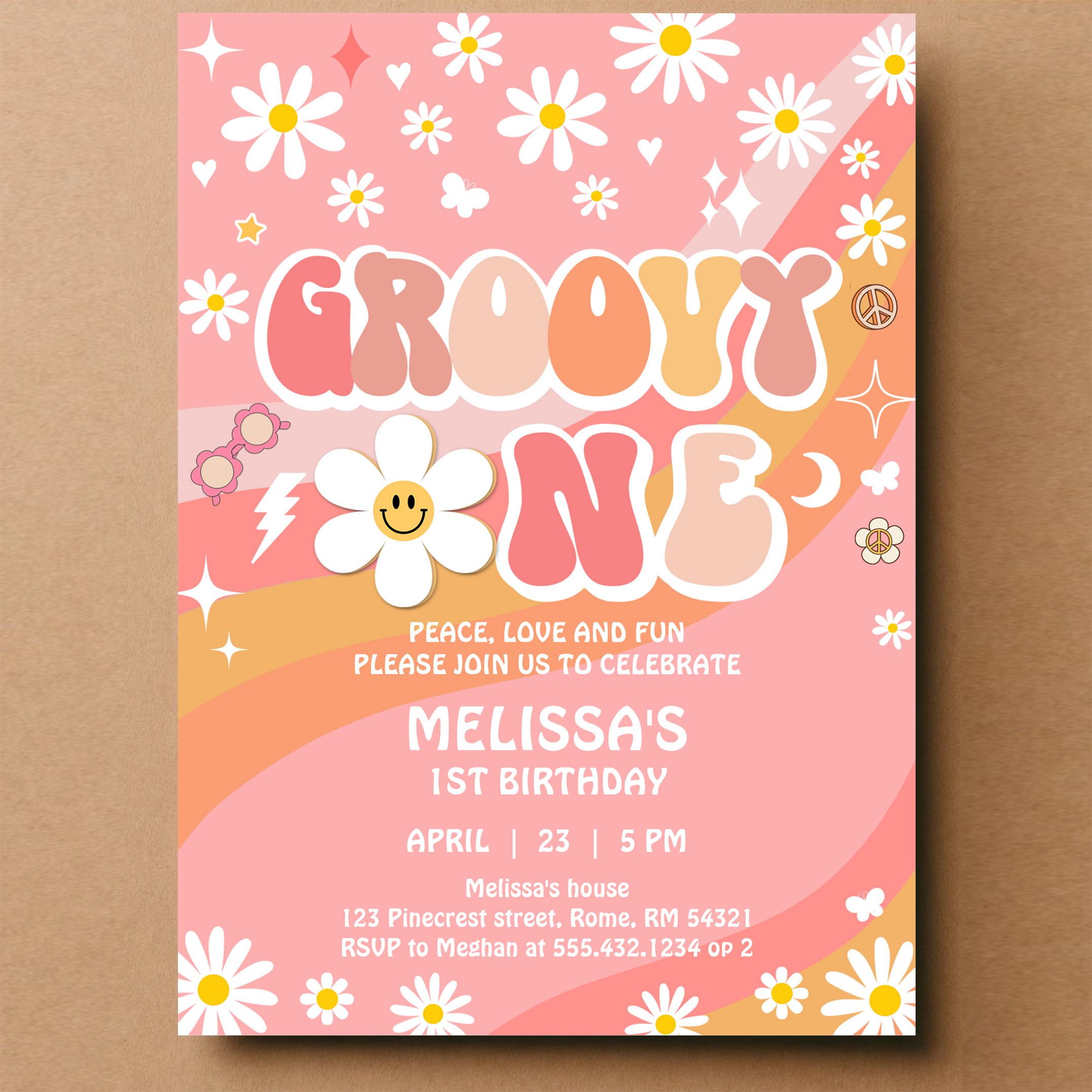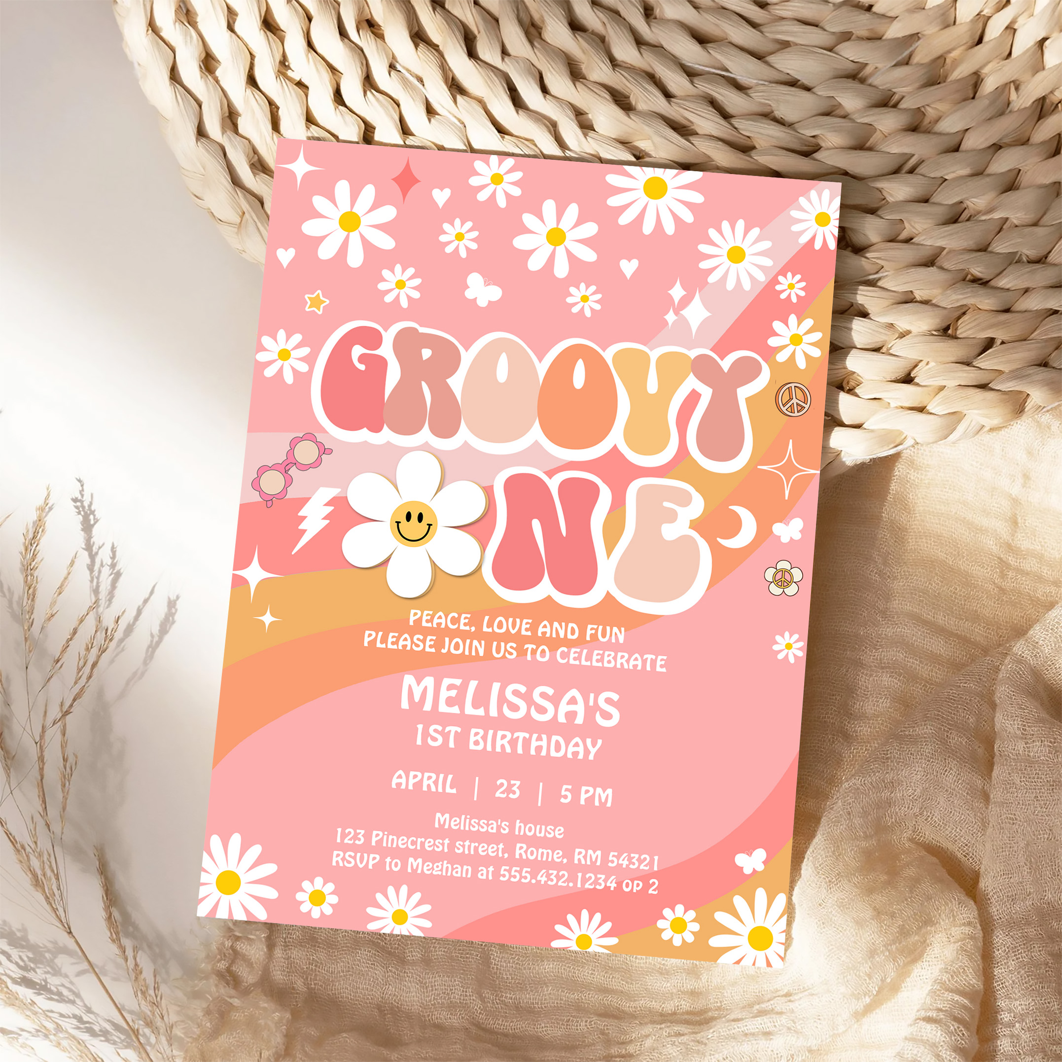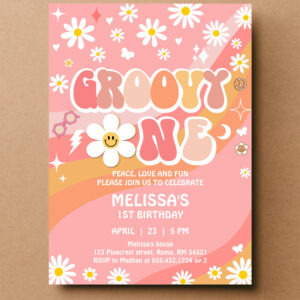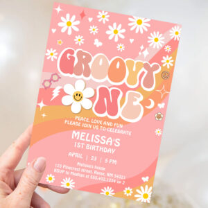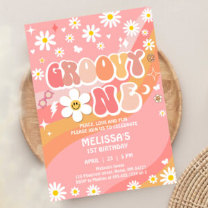 Groovy One 1st Birthday Daisy Smile Retro Hippie Invitation - Related products