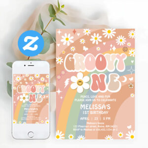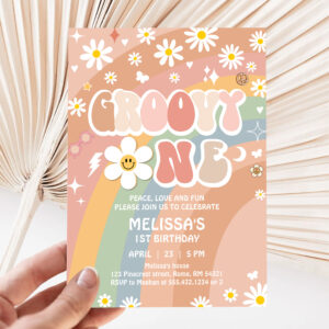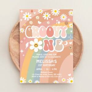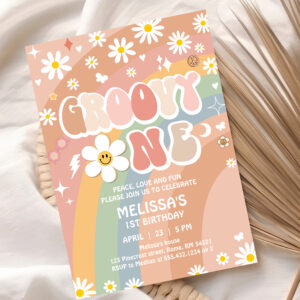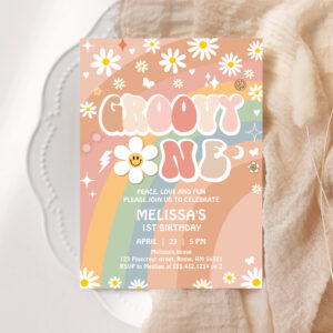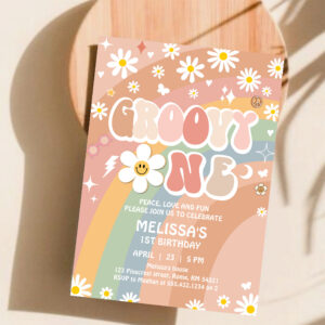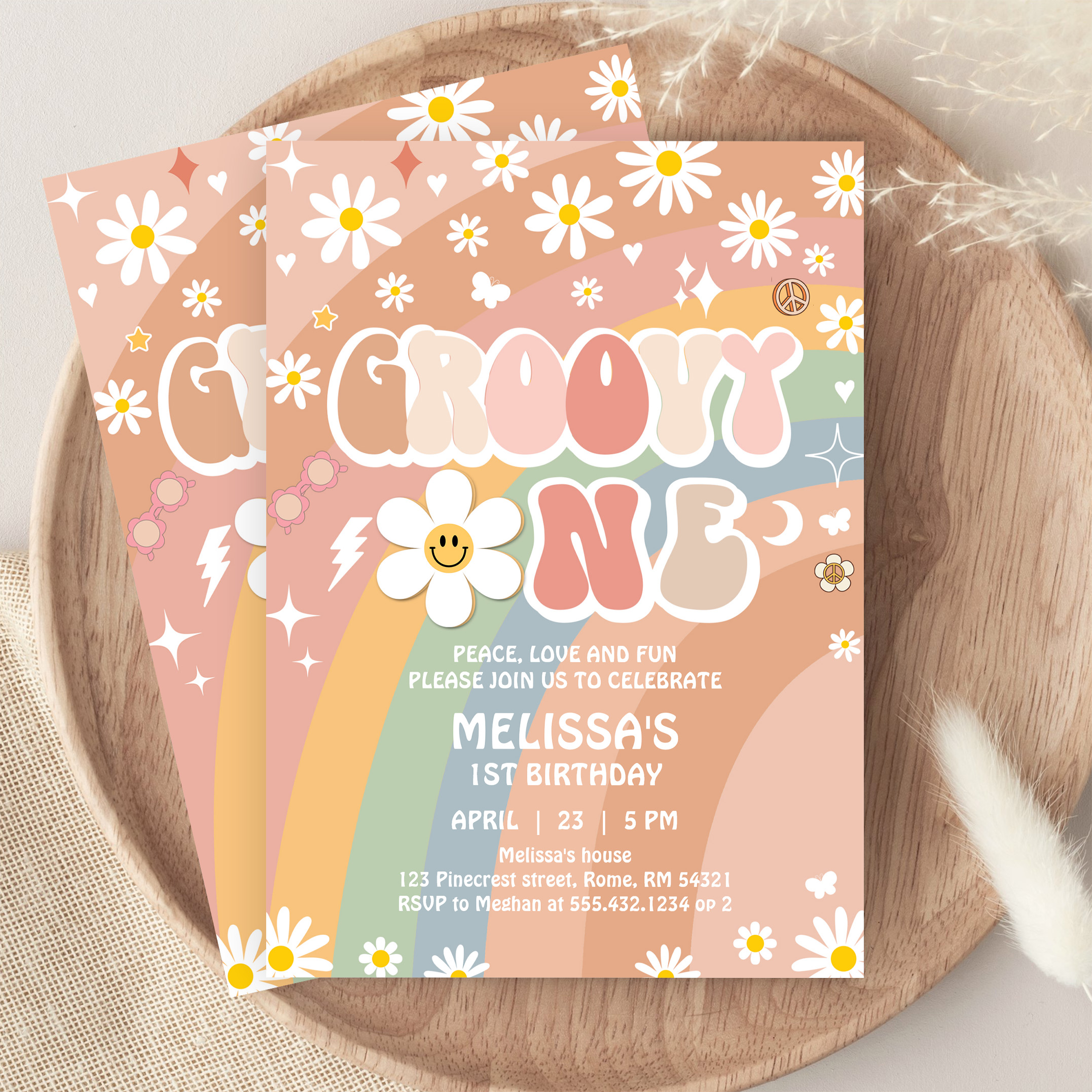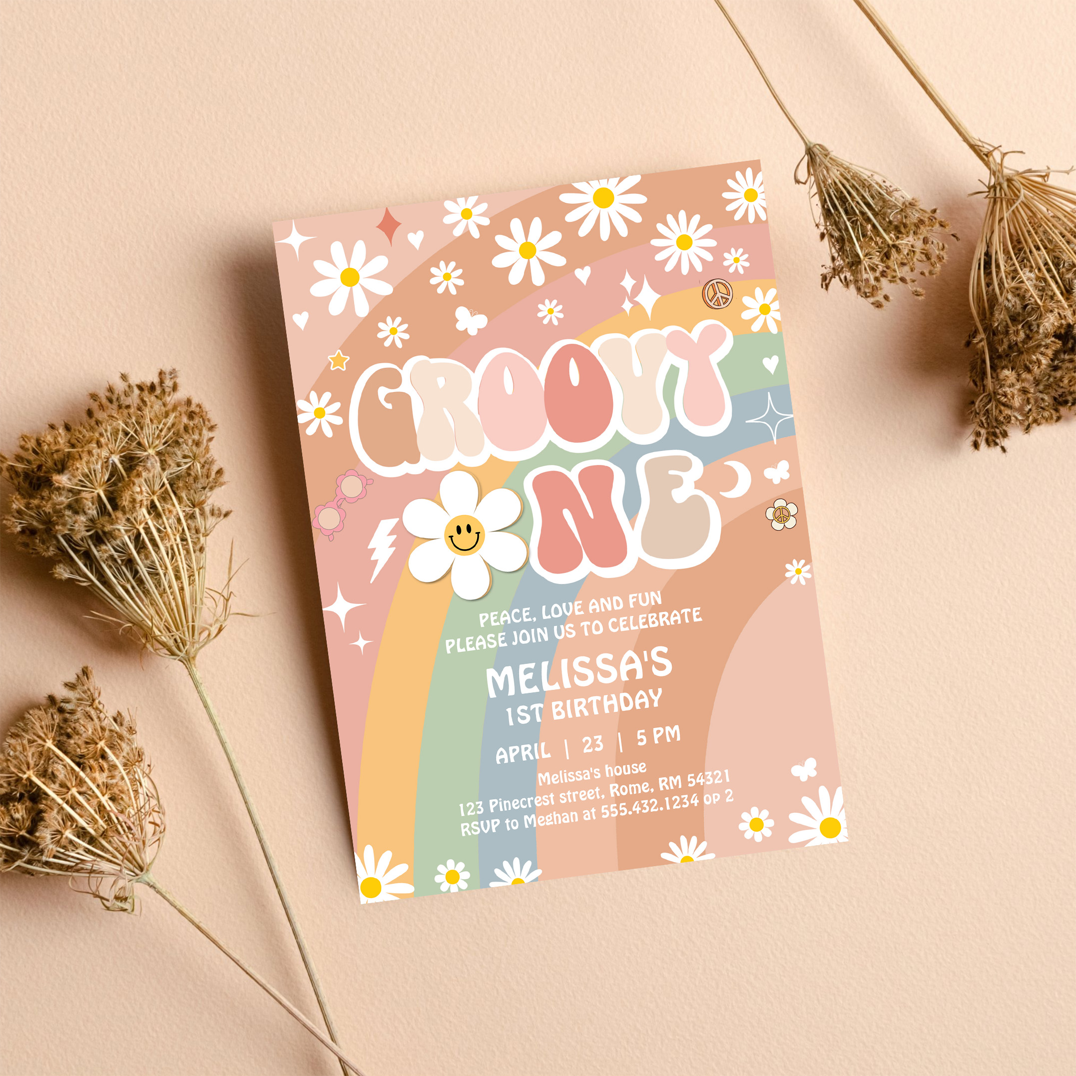 Groovy One Daisy Groovy Rainbow 1st Birthday Invitation - Related products